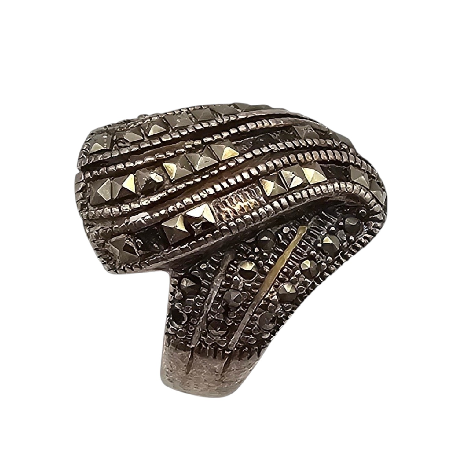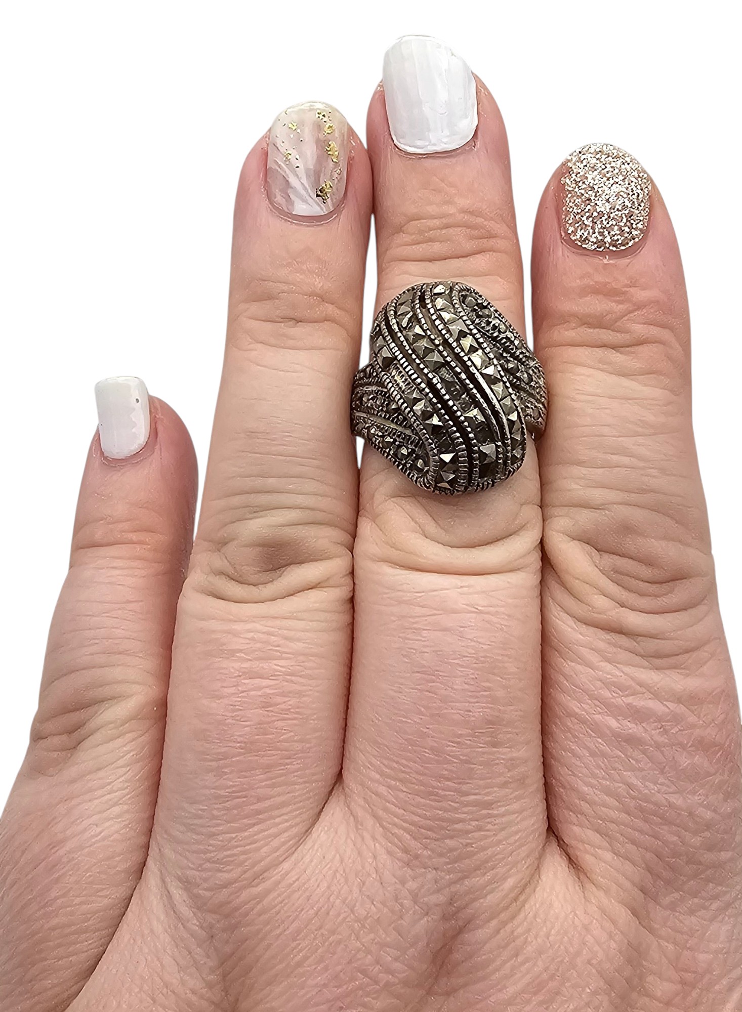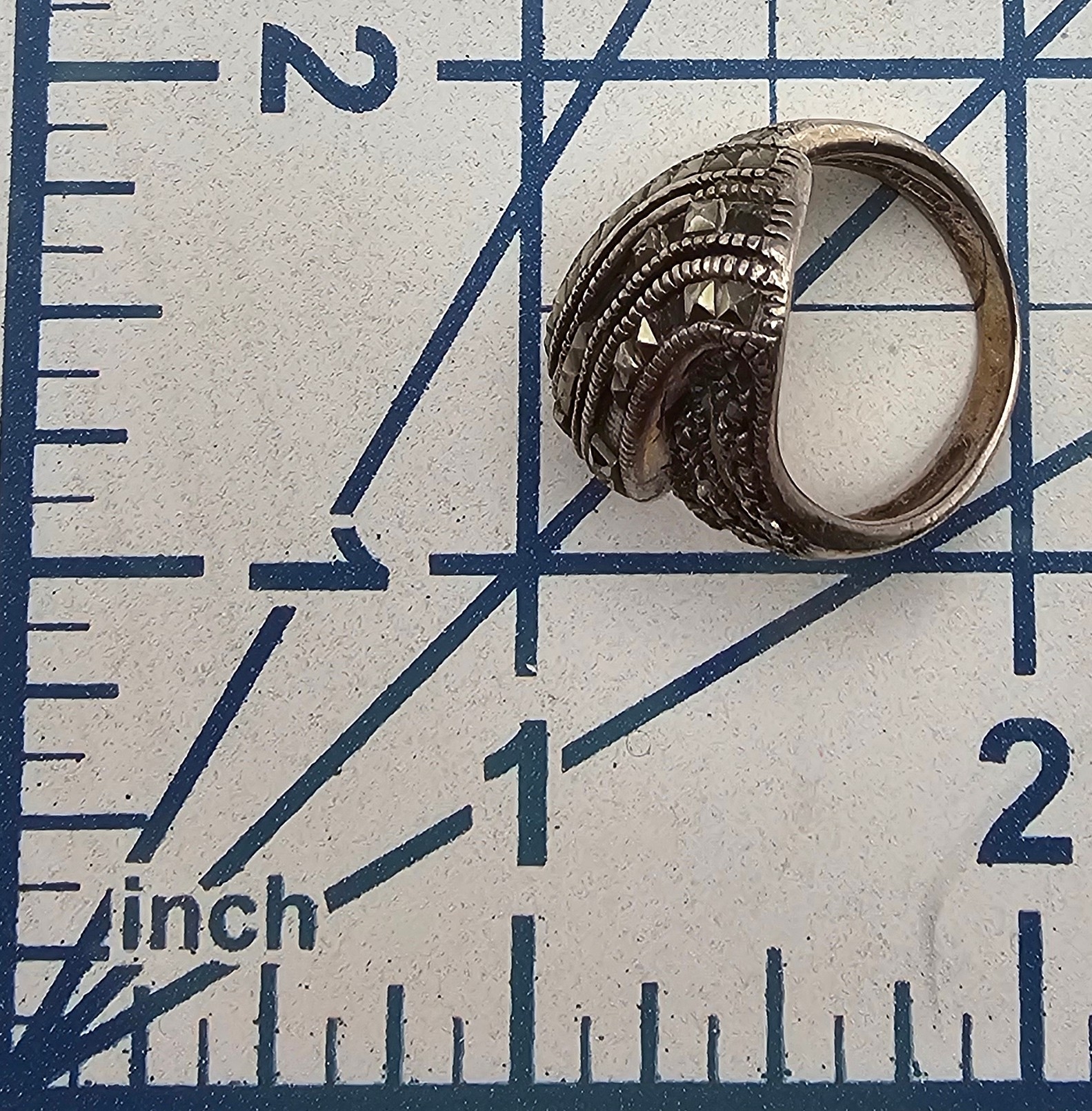 Marcasite Sterling Silver cocktail Ring Size 6.5 7.8 g as is