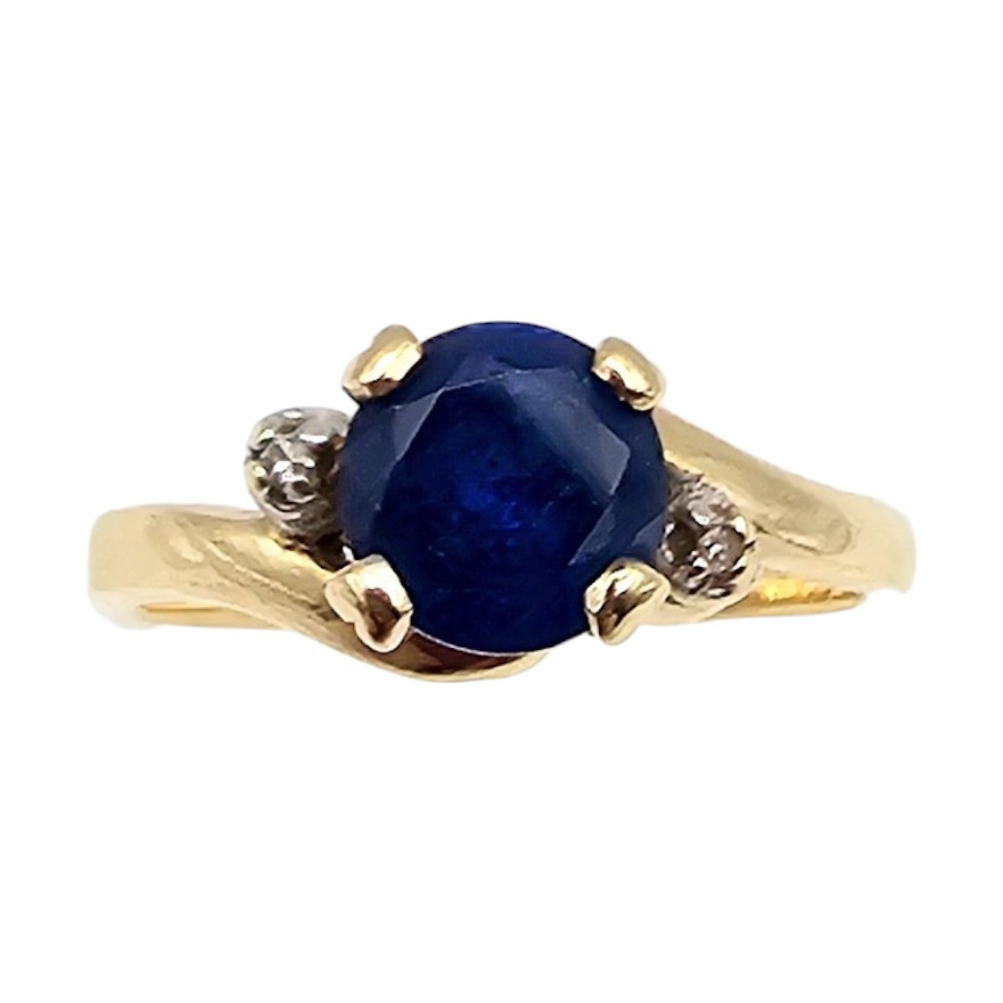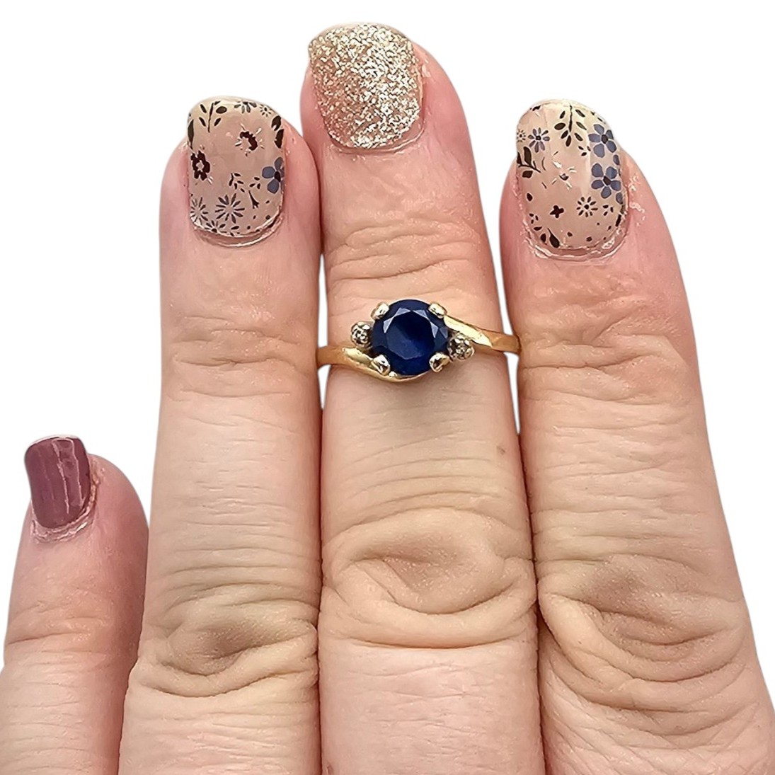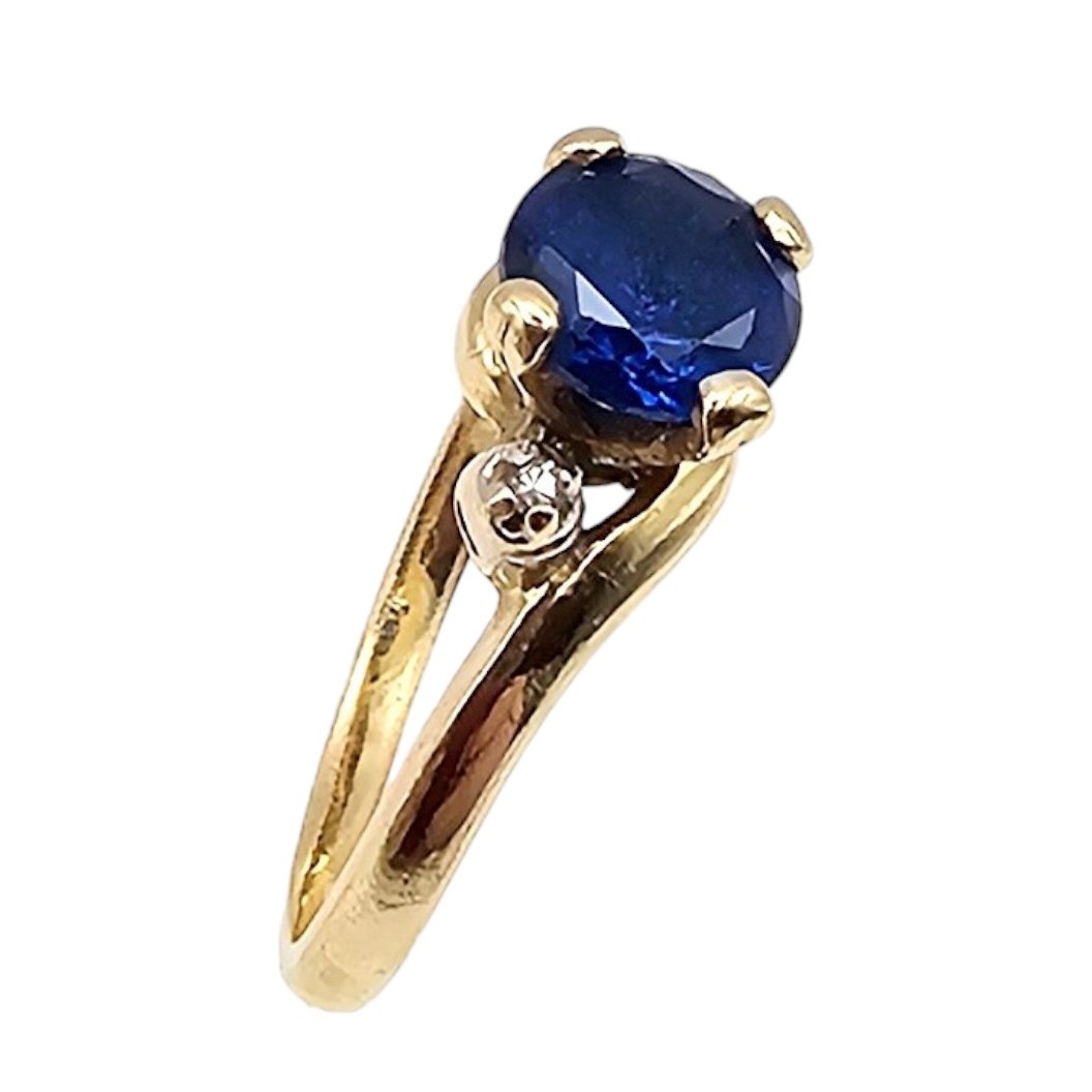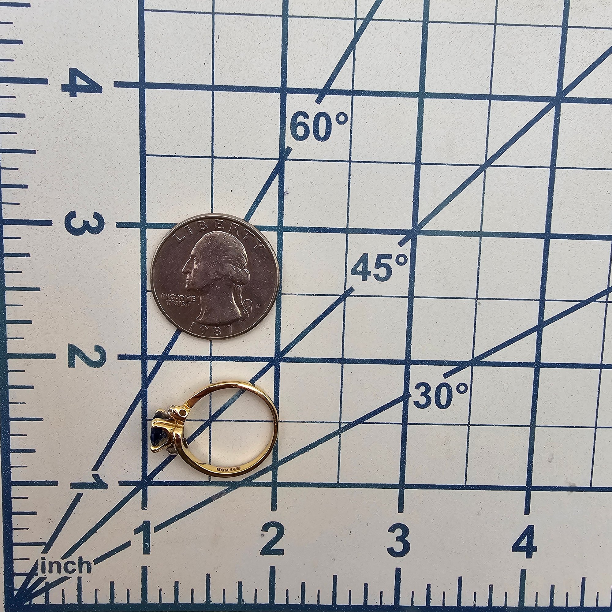 KSK 14K Gold Diamond Sapphire Cocktail Ring Size 6.25 2.8g Approximately 0.85 TCW