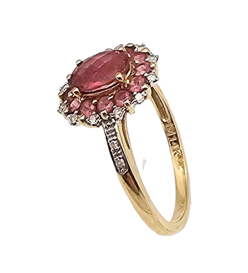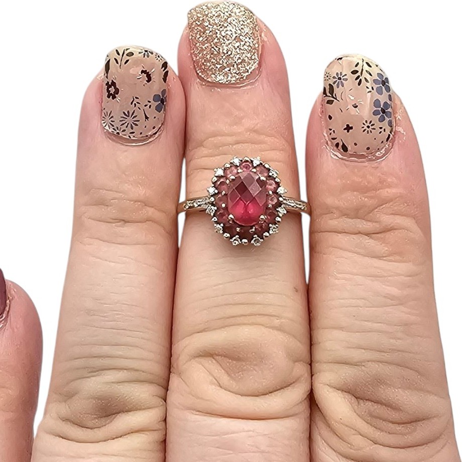 14K Gold Diamond Cushion Cut pink Spinel Cocktail Ring Size 5.75, 2.1g