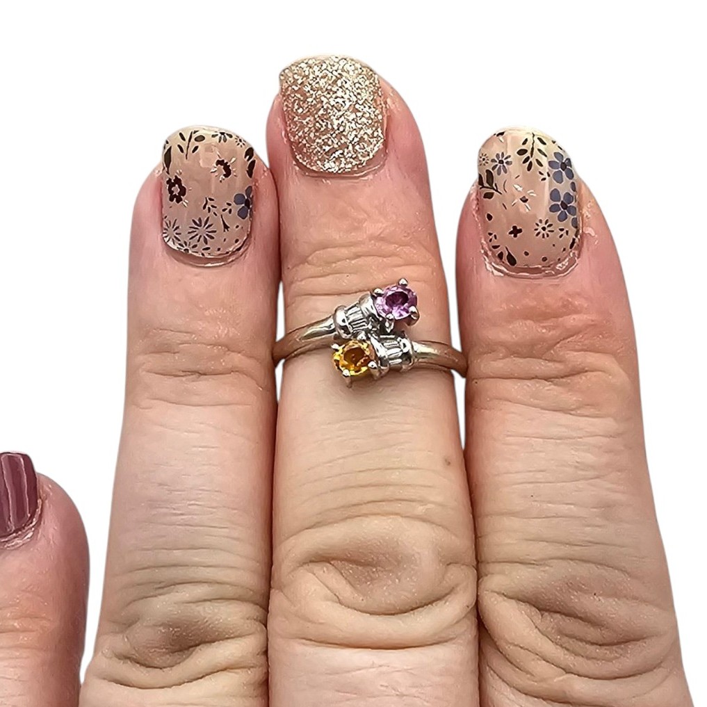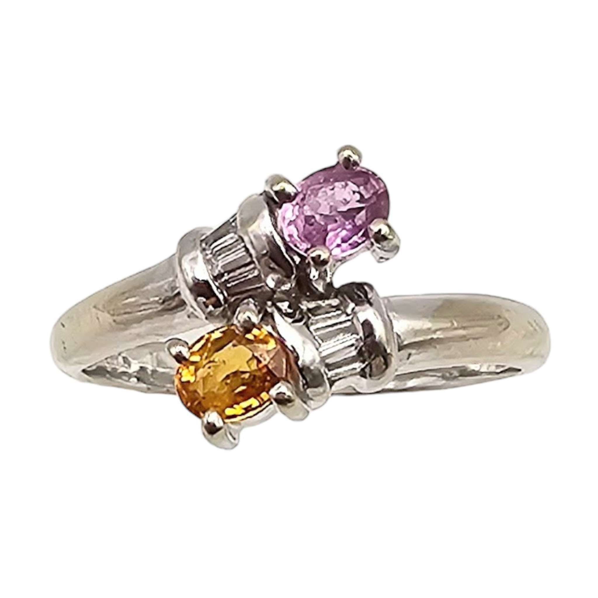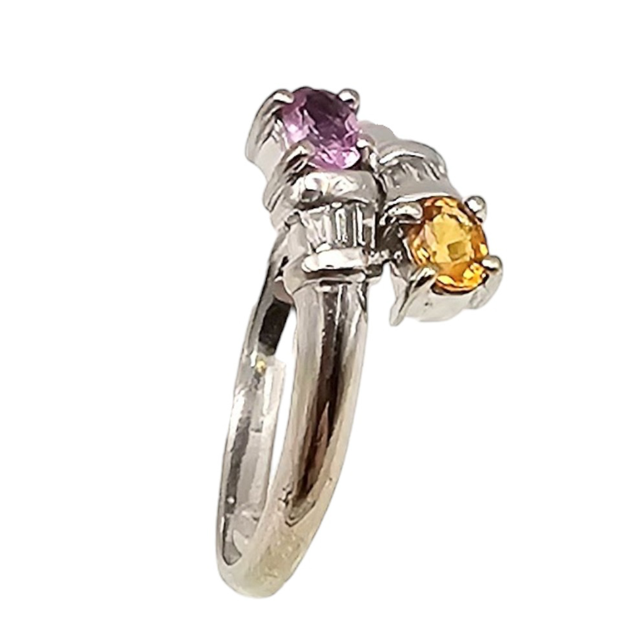 14K White Gold purple and orange Sapphires Diamond Cocktail Ring Size 6, 2.8g Approximately 0.40 TCW