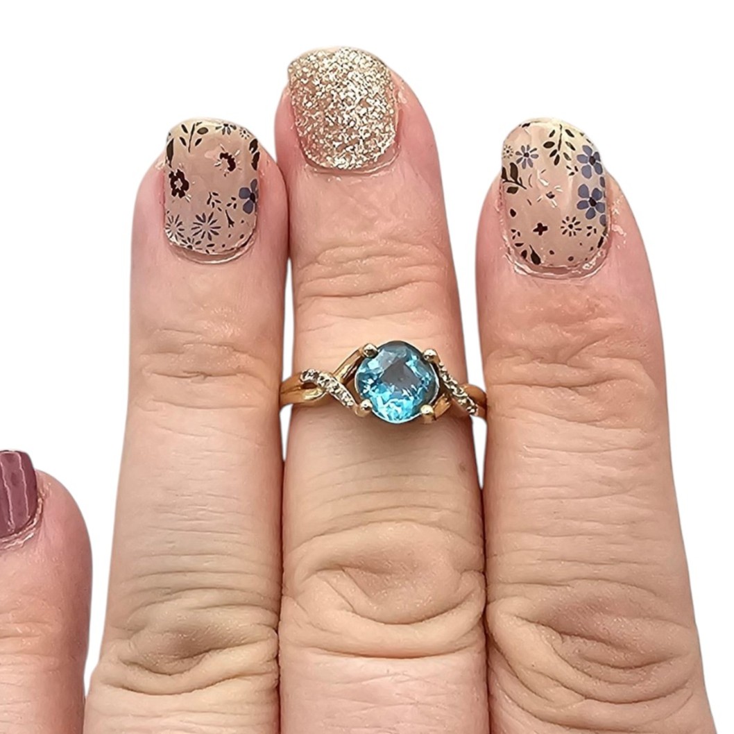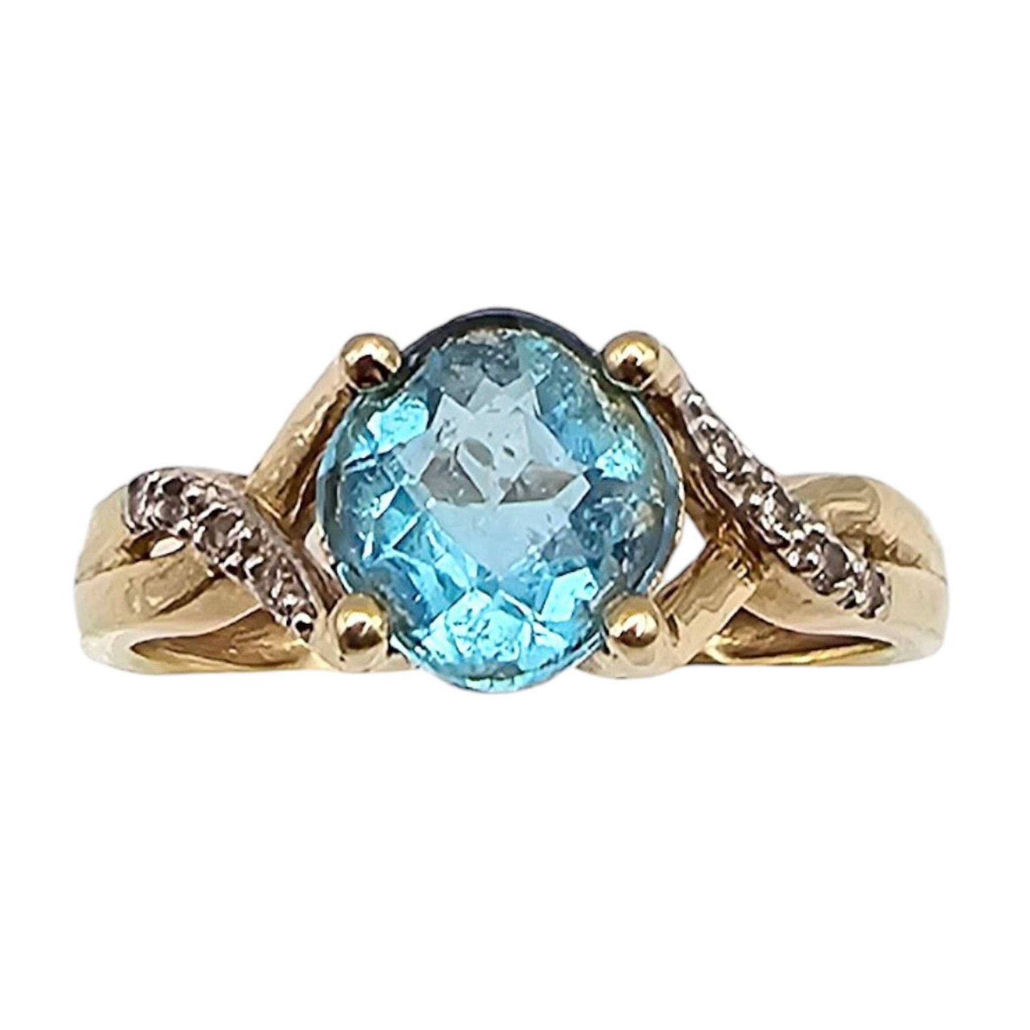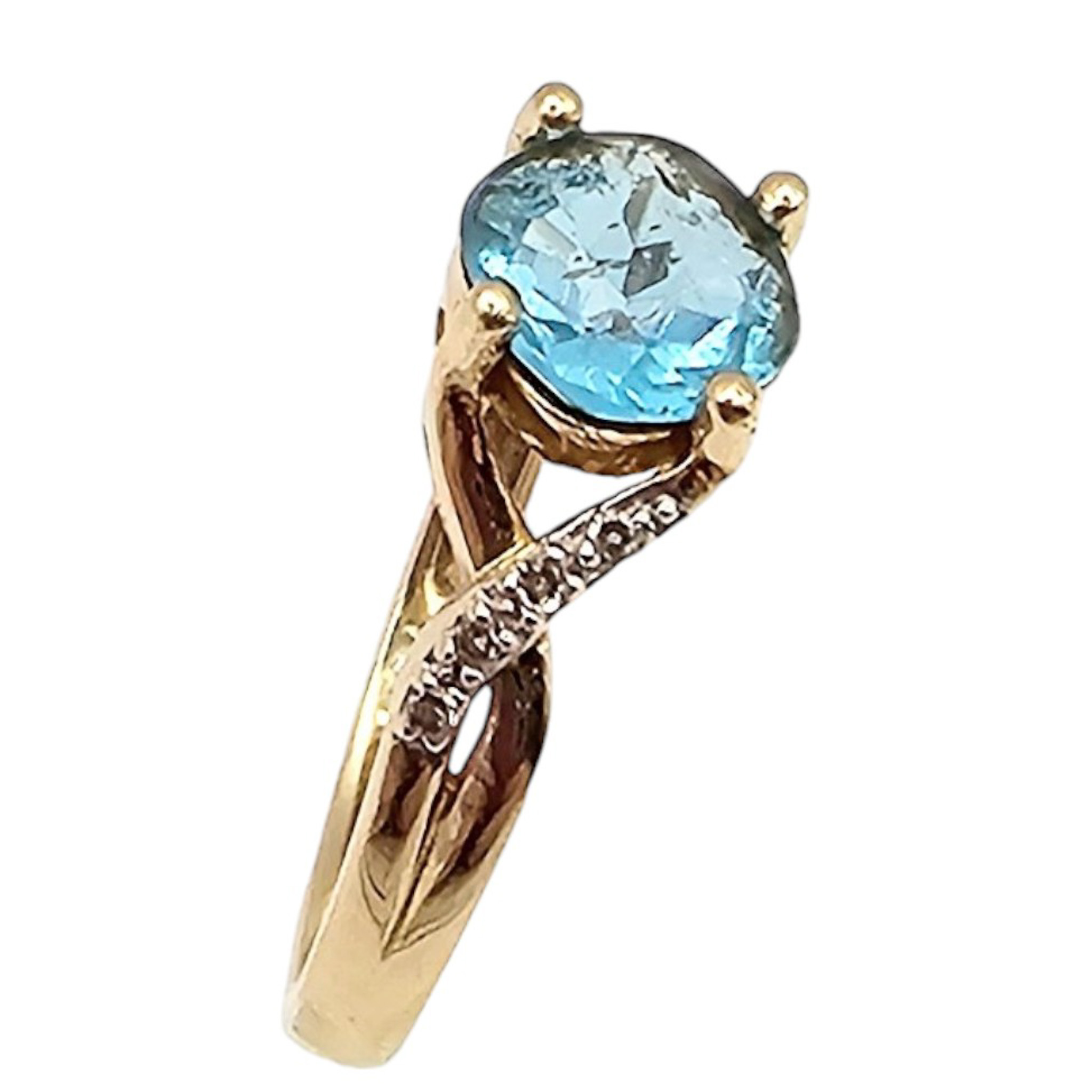 10K Gold Blue Aqua and Diamond Cocktail Ring Size 6.75 3g Approximately 1.25 TCW