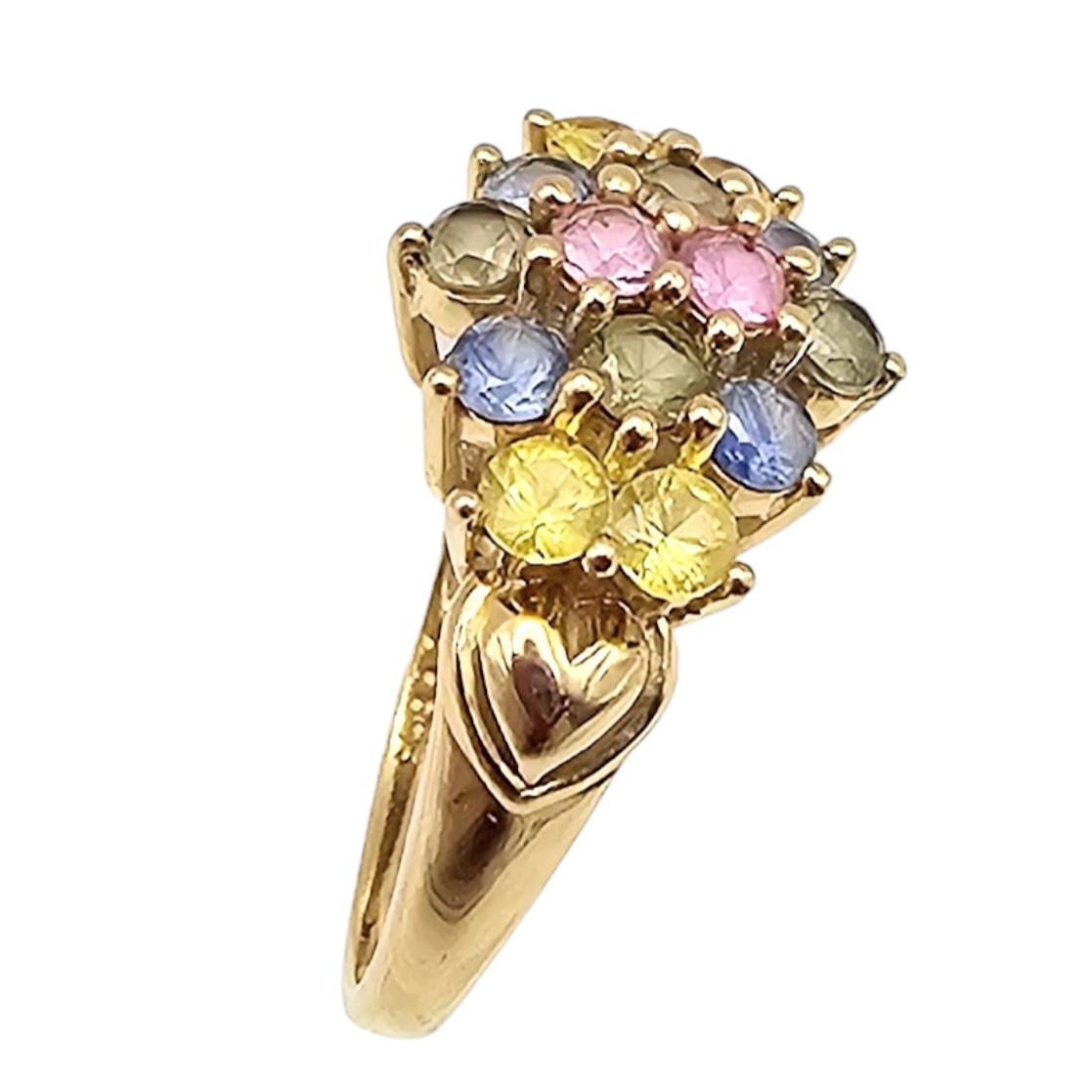 14K Gold Multi Stone Ruby,Topaz yellow and green sapphires Cocktail Ring Size 6, 3.5g Approximately 1.40 TCW
