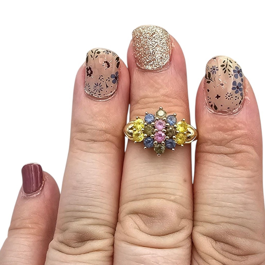 14K Gold Multi Stone Cocktail Ring Size 6, 3.5g