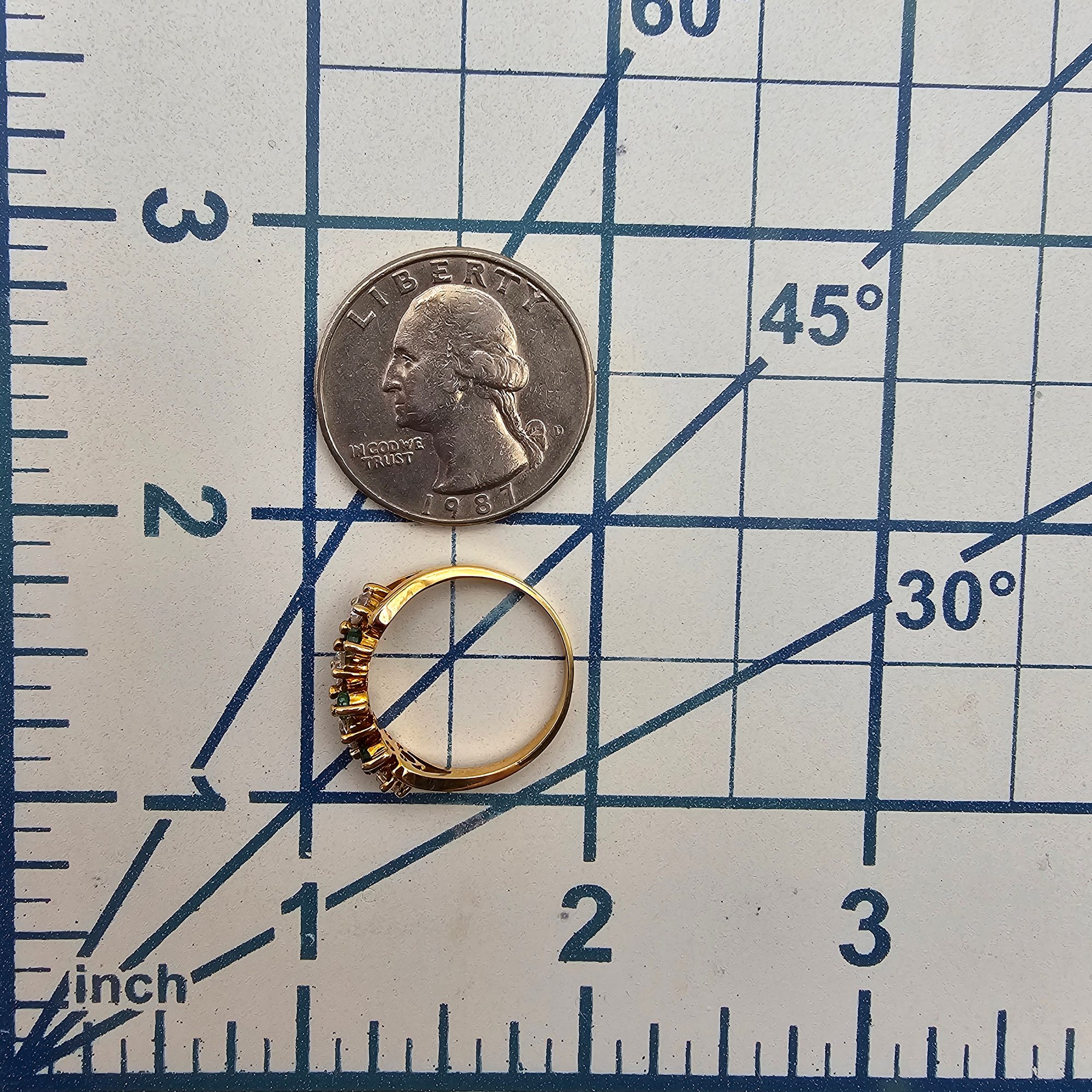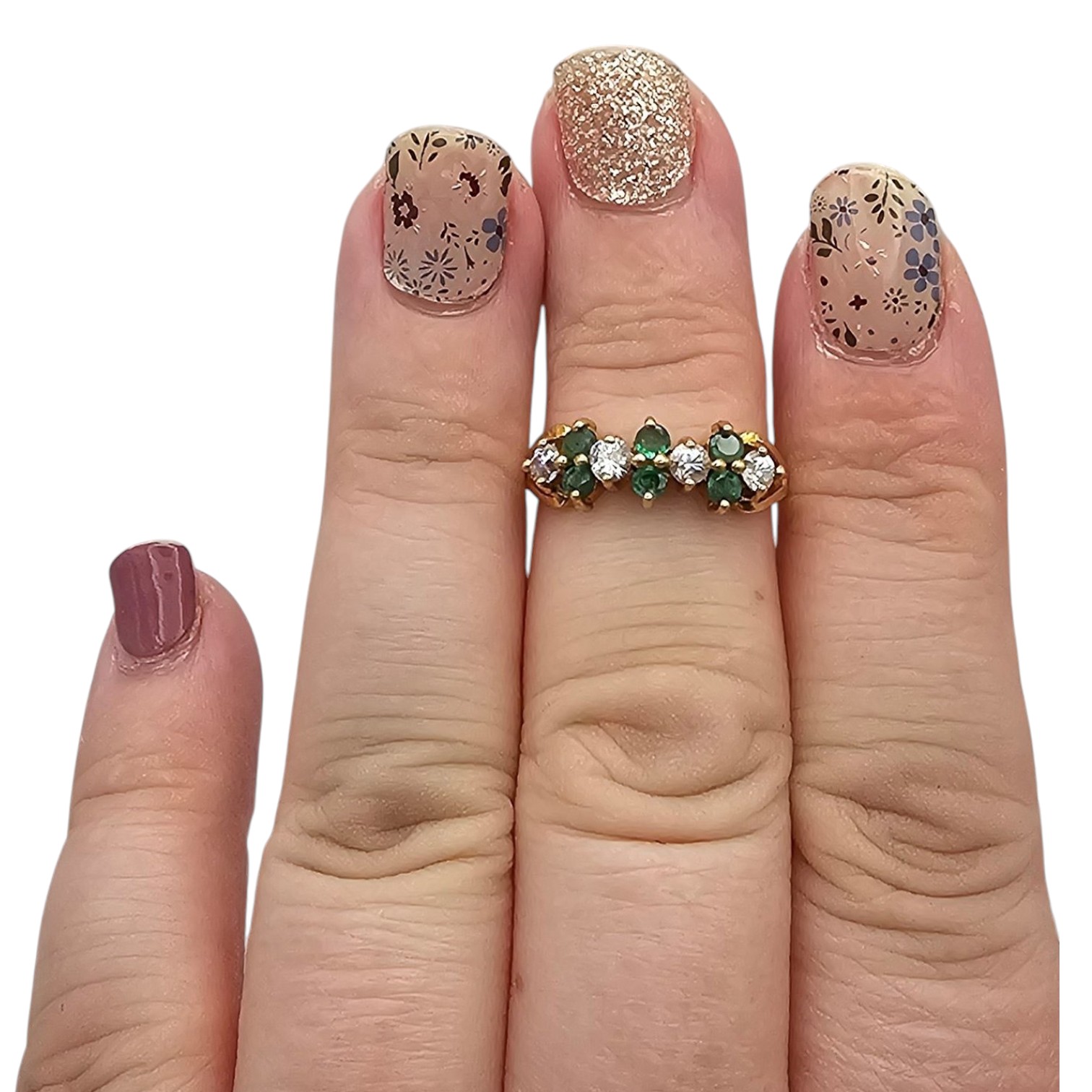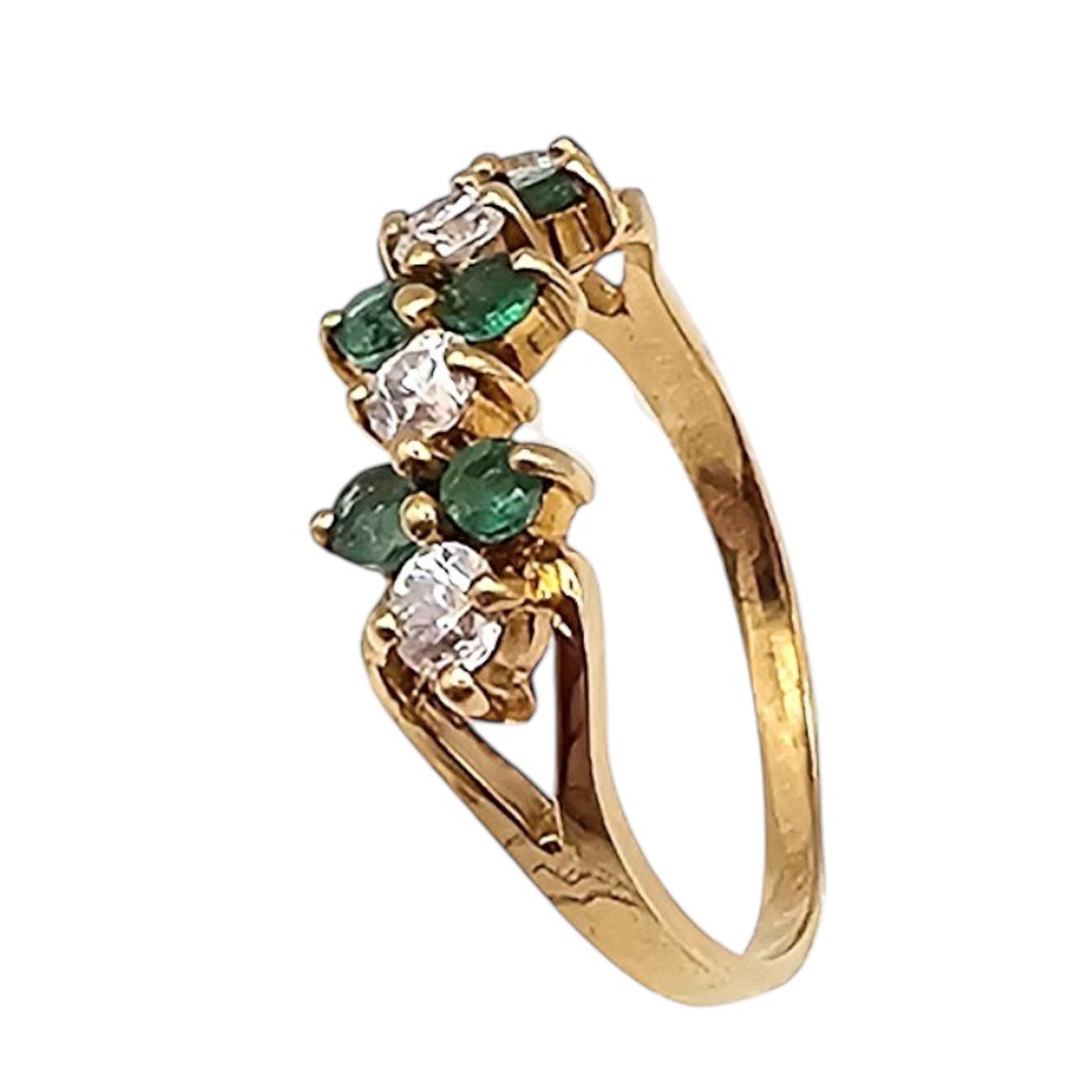 10K Gold Emerald and Clear stone Cocktail Ring Size 6.75, 2.5g Approximately 1 TCW