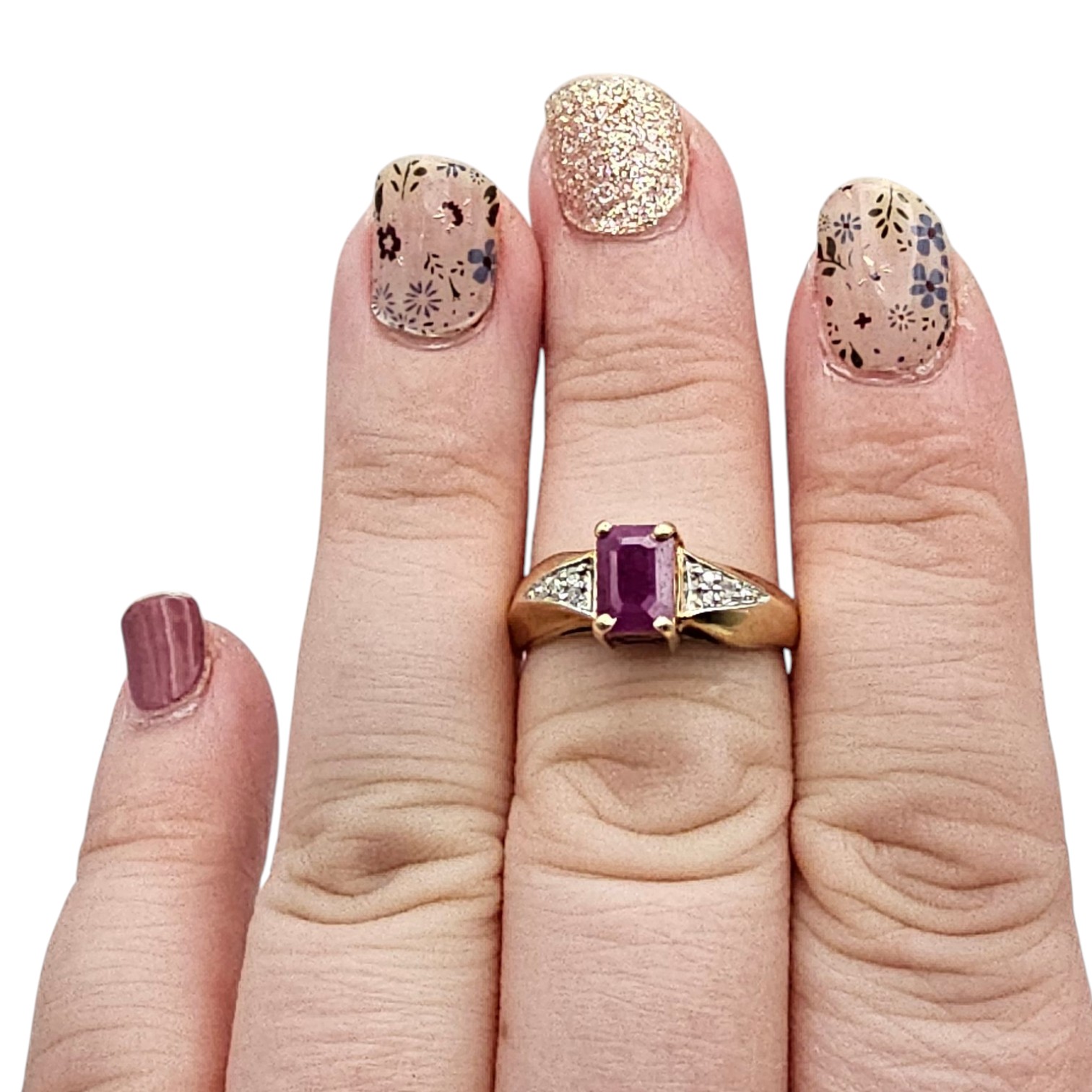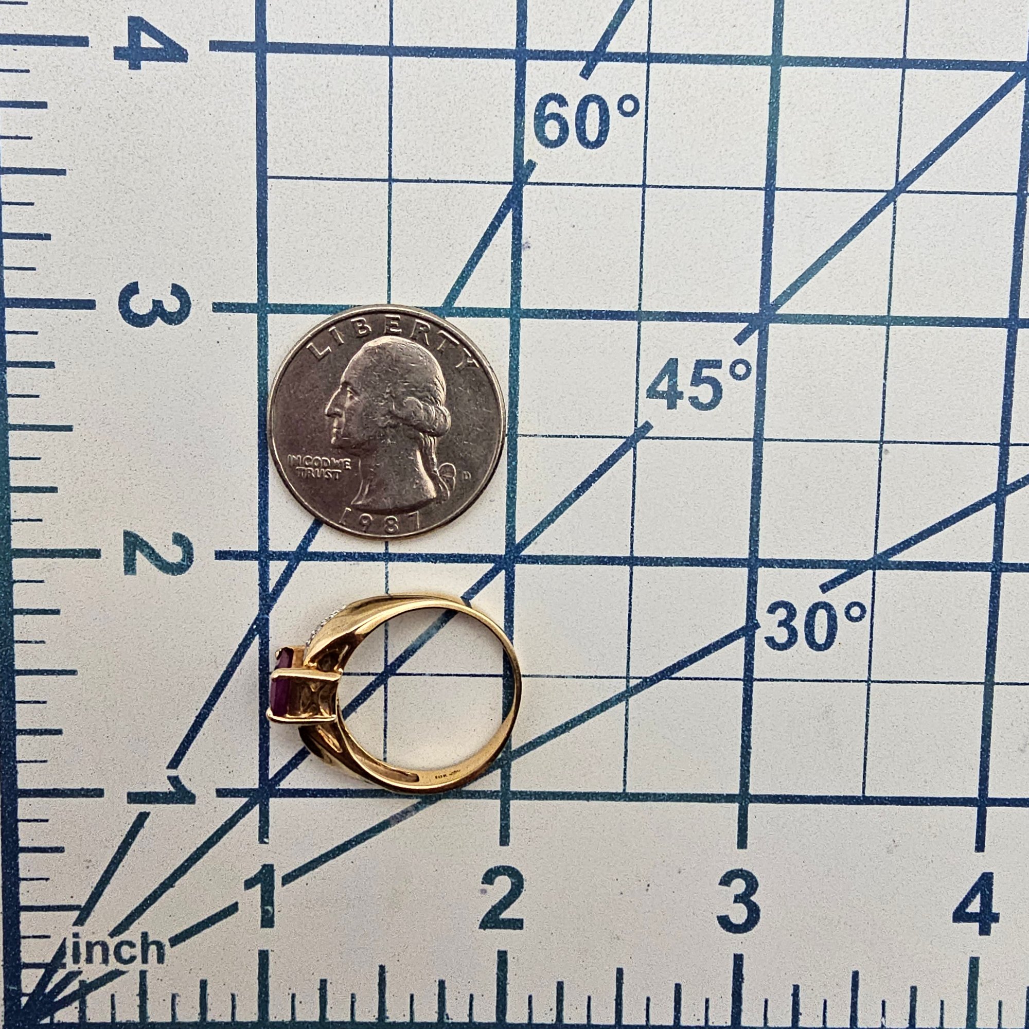 10K Gold Ruby Diamond Cocktail Ring Size 7.5, 3.2g Approximately 0.77 TCW