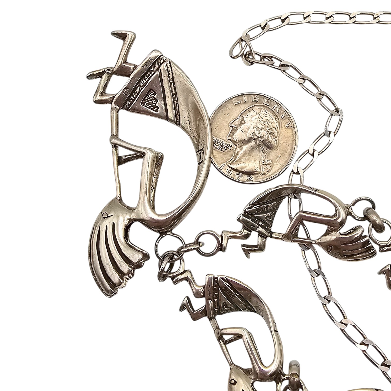 Signed Navajo Sterling silver Kokopelli necklace 60.5 g