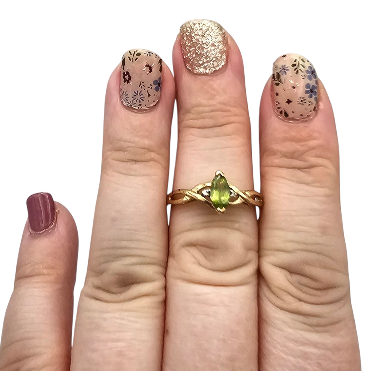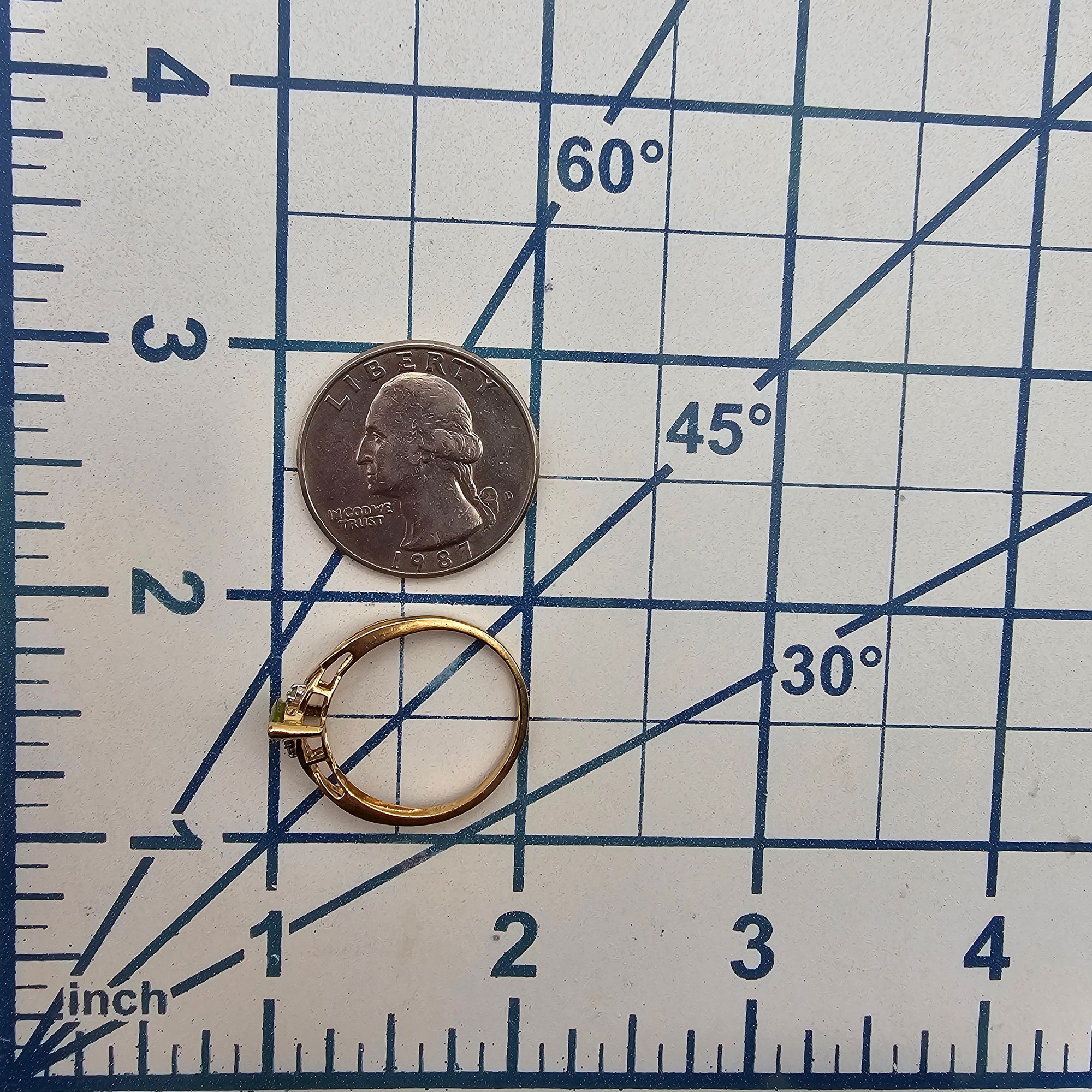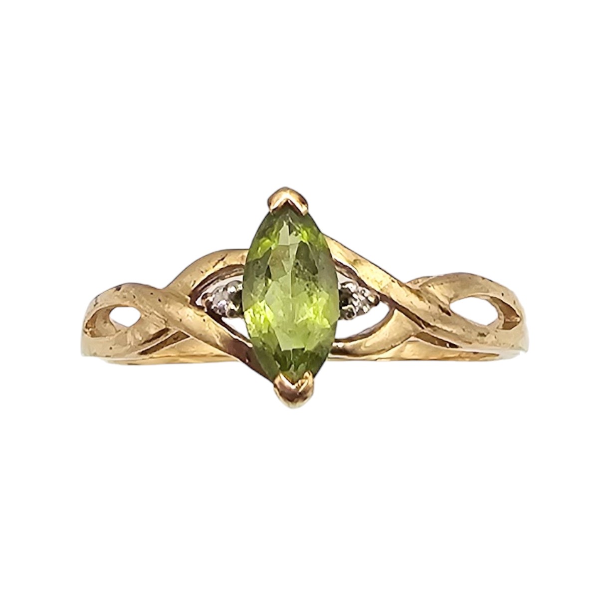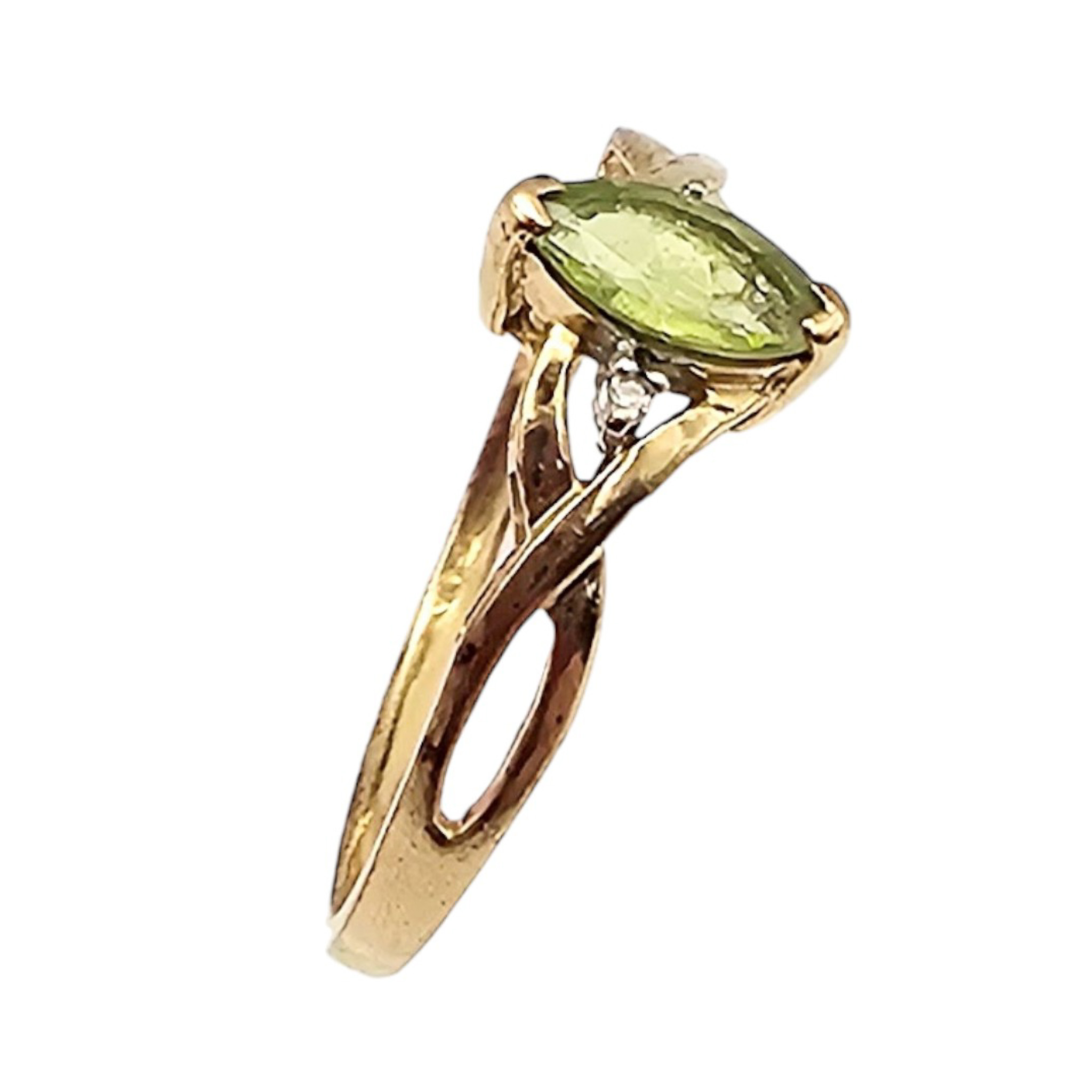 LGL 10K Gold Diamond Peridot Cocktail Ring Size 8.25, 1.8g Approximately 0.50 TCW