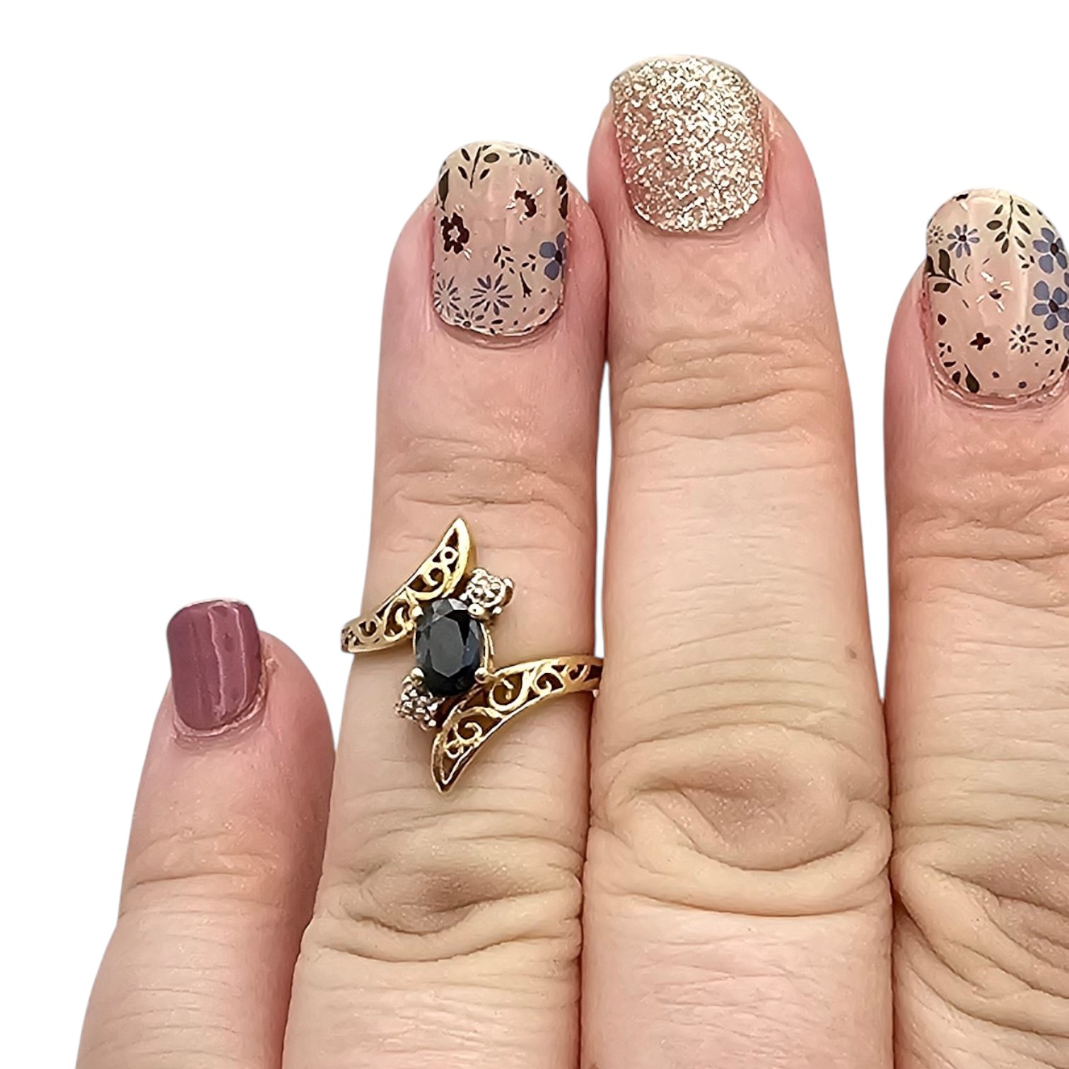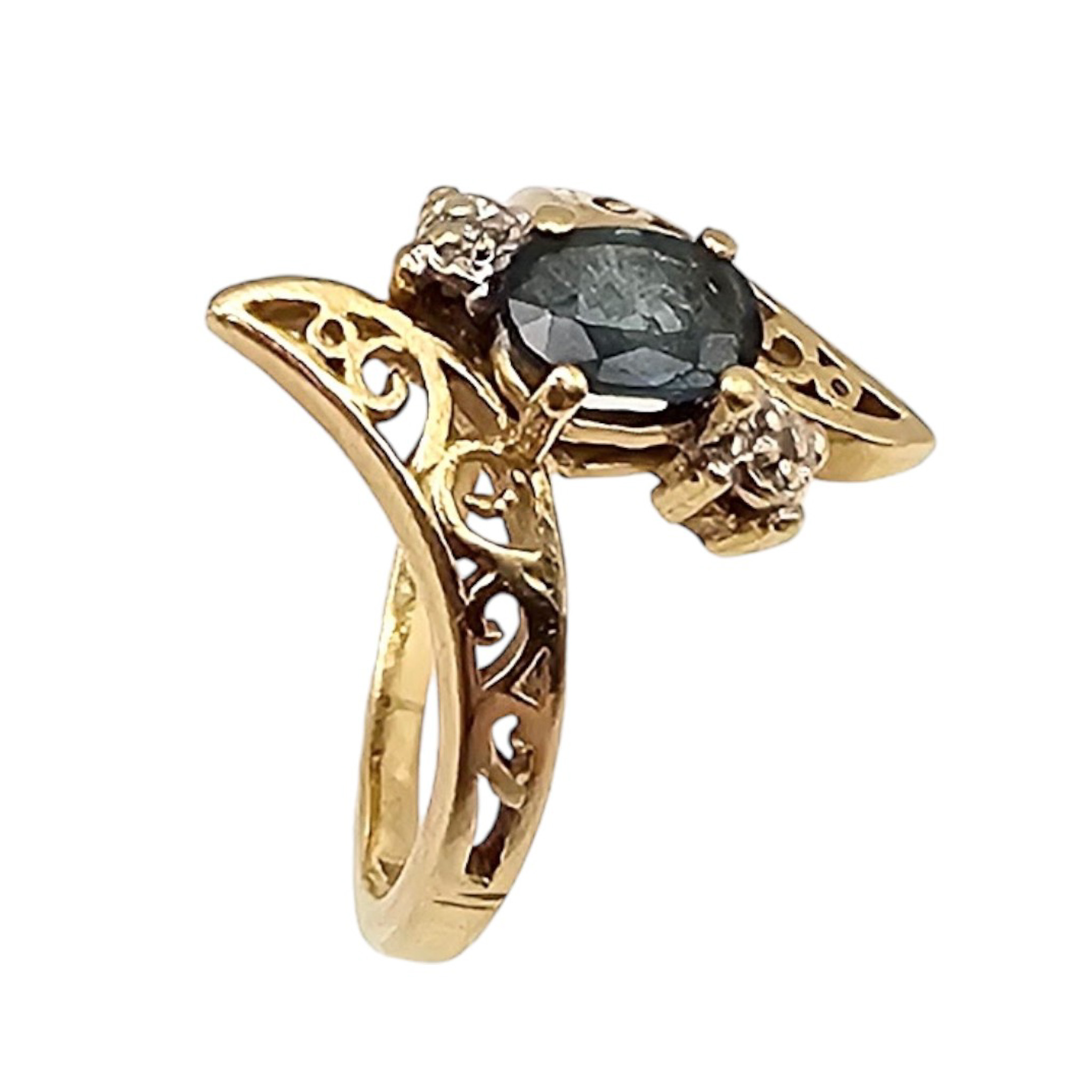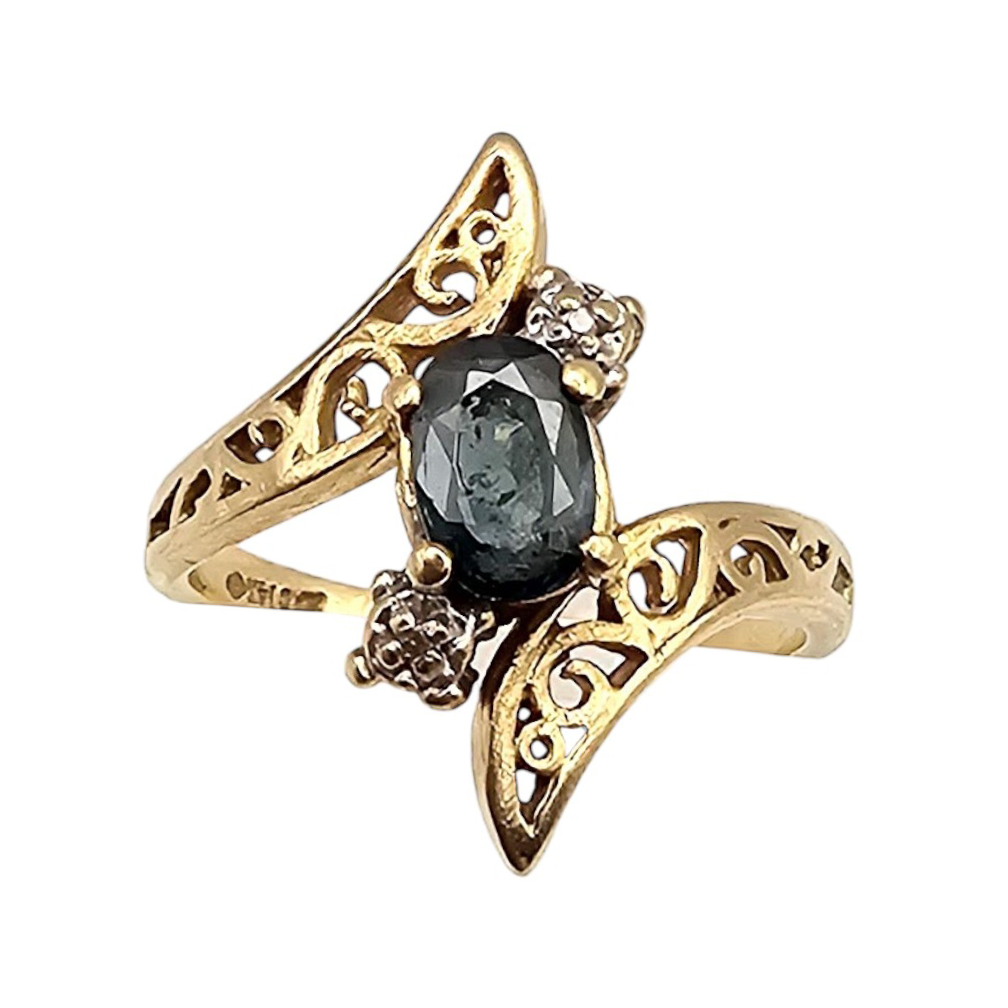 RKC 14K Gold Sapphire Diamond Cocktail Ring Size 4.75, 2.7g Approximately 0.60 TCW