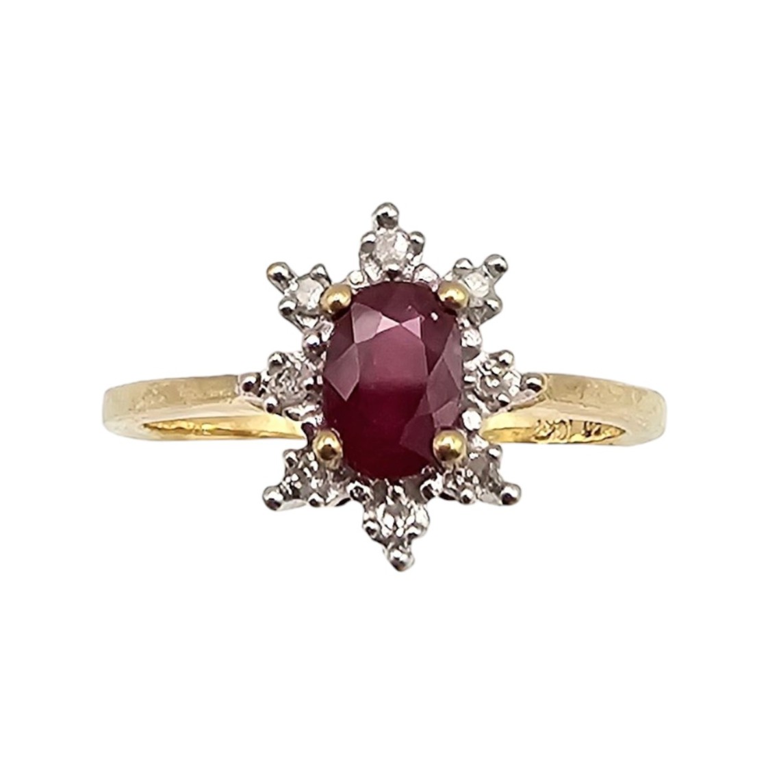 FD 10K Gold Ruby Diamond Cocktail Ring Size 6.25,3g Approximately 0.40 TCW 0.24 TCW