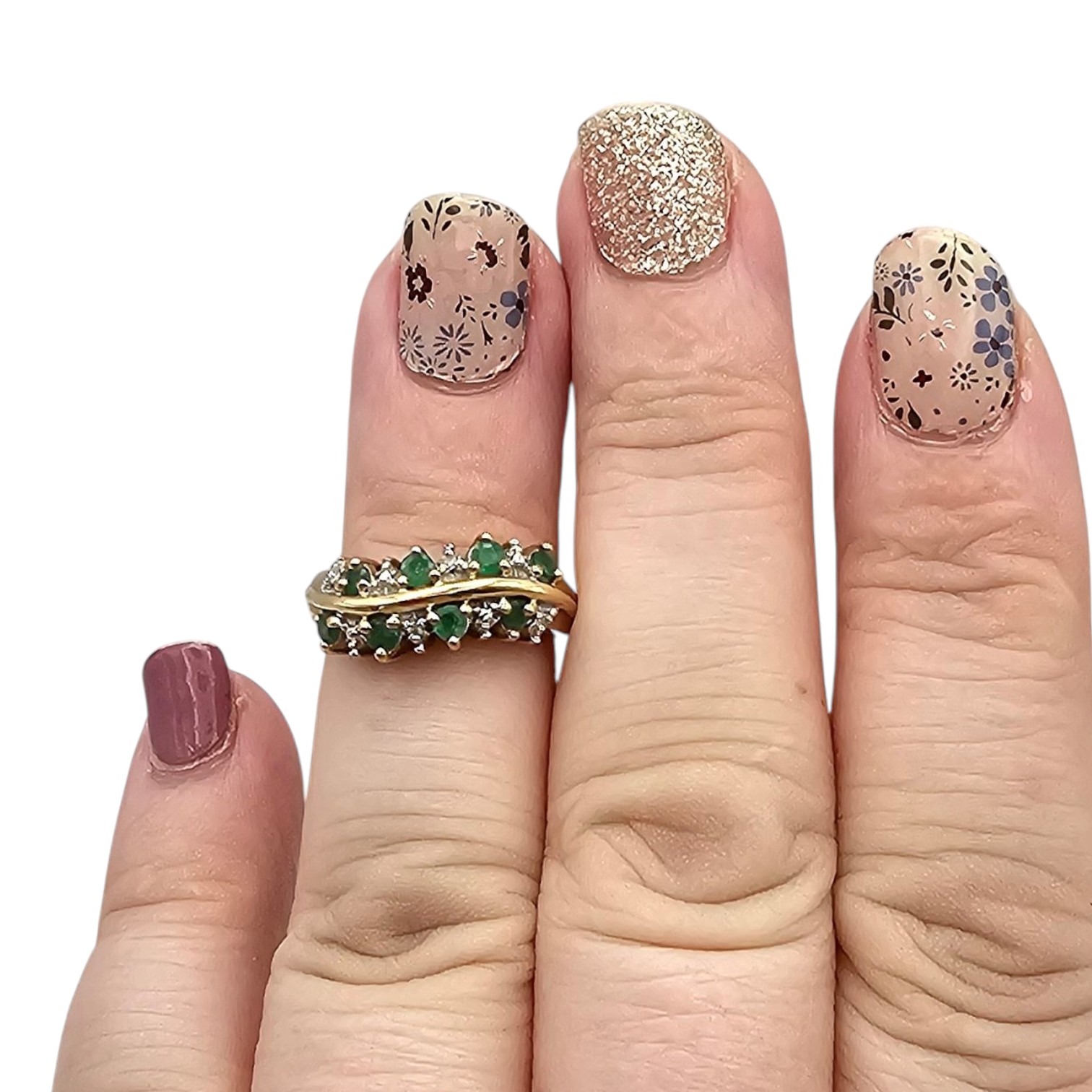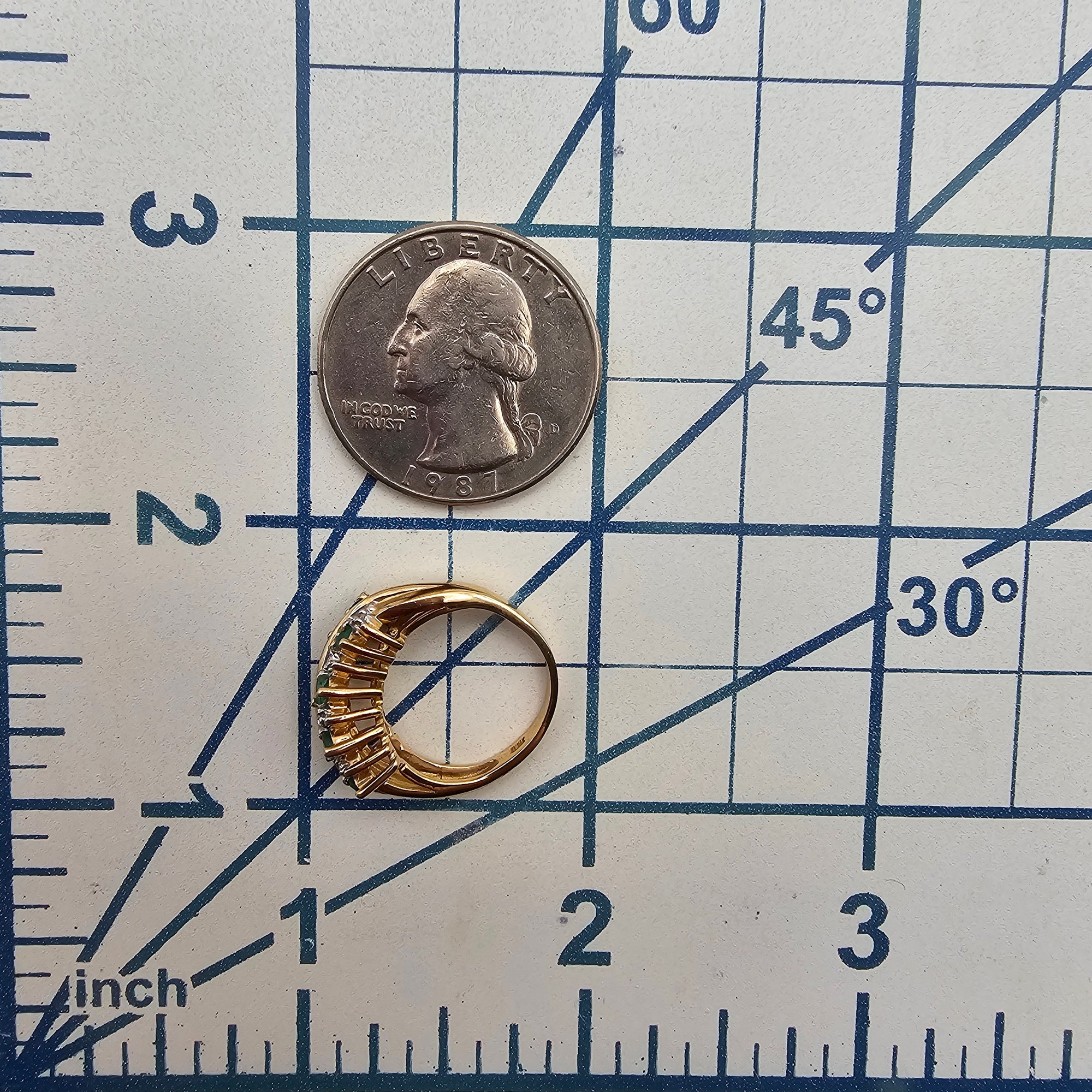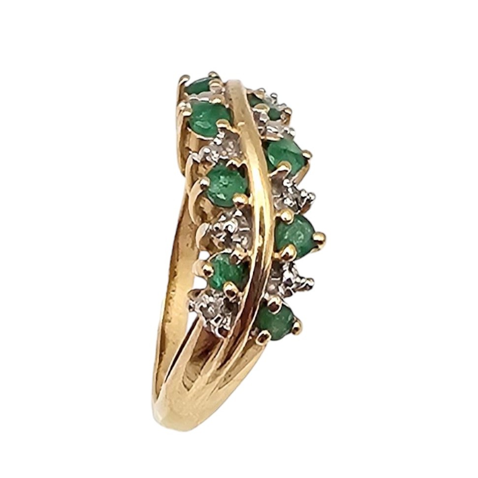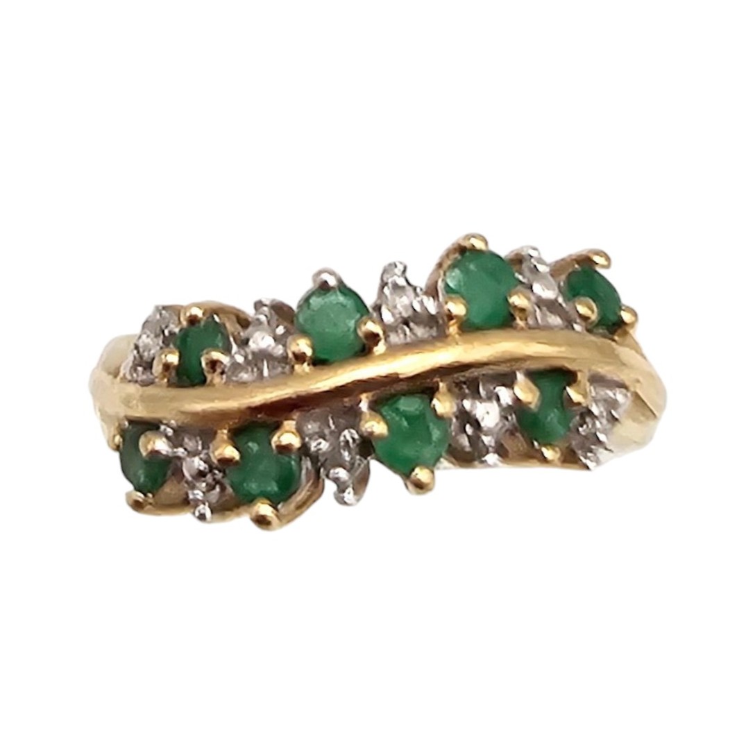 10K Gold Diamond Emerald Cocktail Ring Size 3.25, 2.9g Approximately 0.40 TCW 0.09 TCW