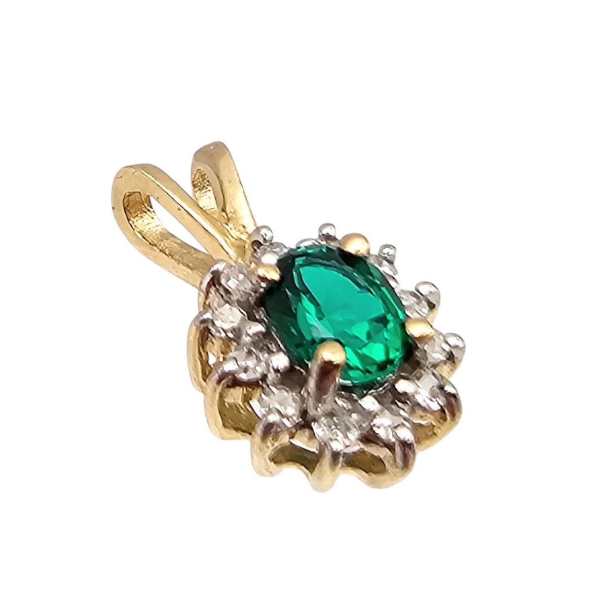14K Gold Diamond Emerald Pendant 0.9g Approximately 0.50 TCW 0.36 TCW
