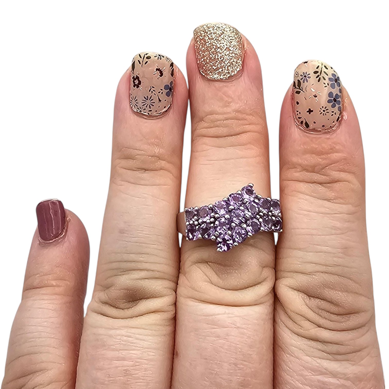 10K White Gold Amethyst Cocktail Ring Size 7.75, 2.96g Approximately 1.70 TCW