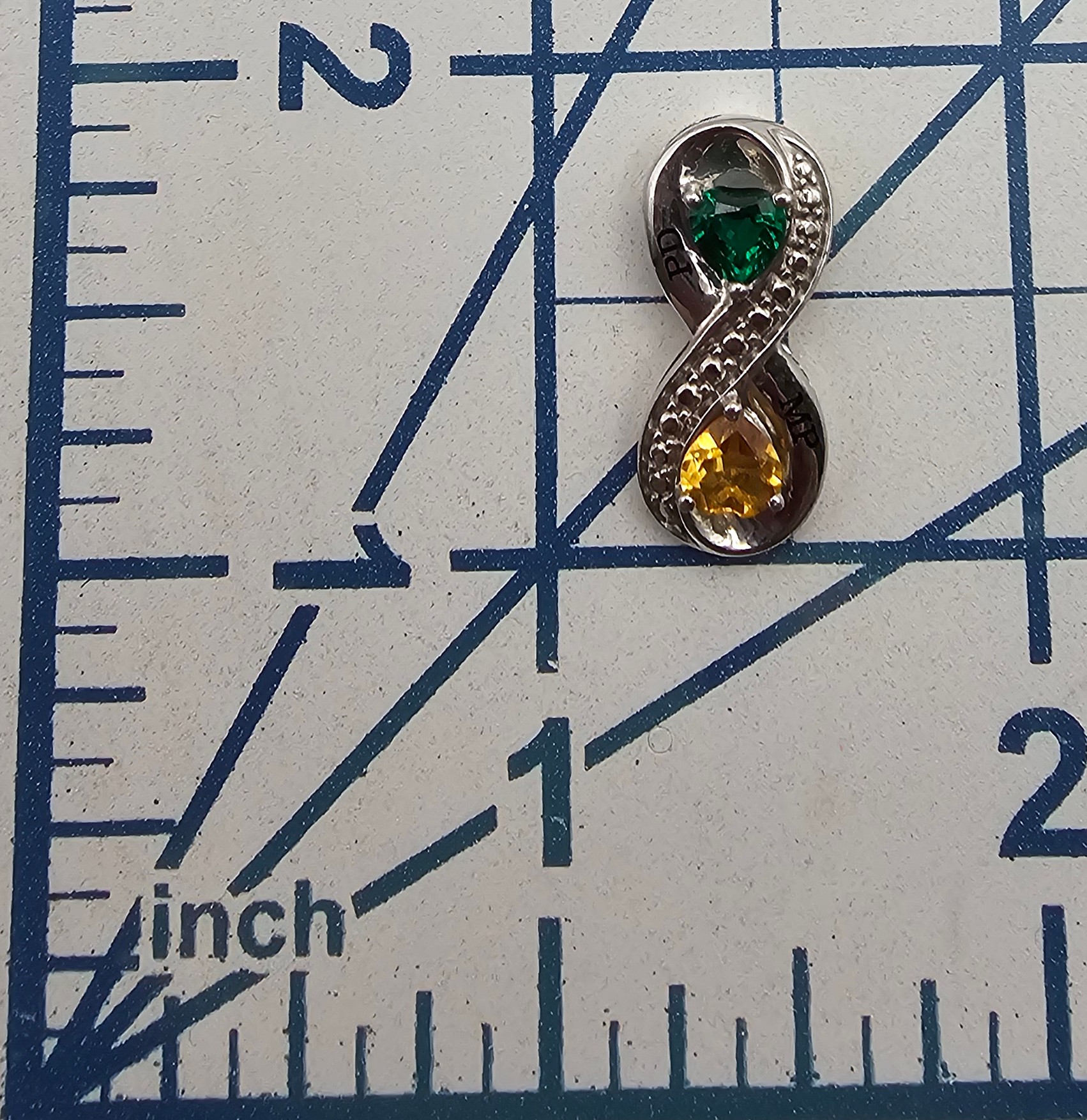 Emerald and Citrine Sterling Silver Pendant 2.9g