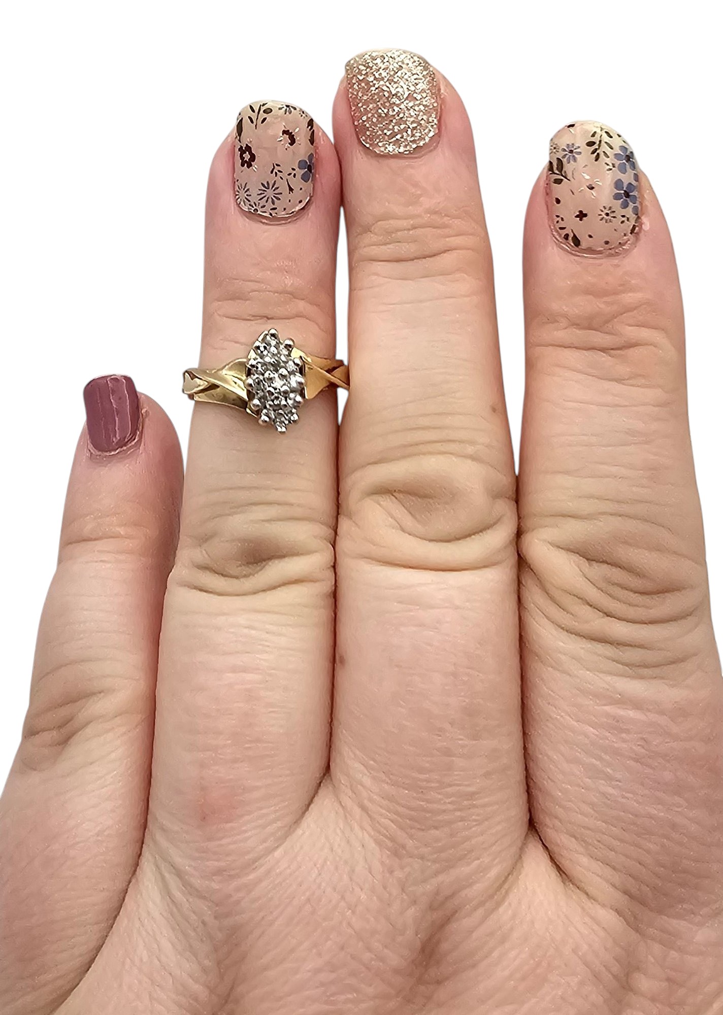 FR 10K Gold Diamond Cocktail Ring Size 4.75, 3g Approximately 0.45 TCW