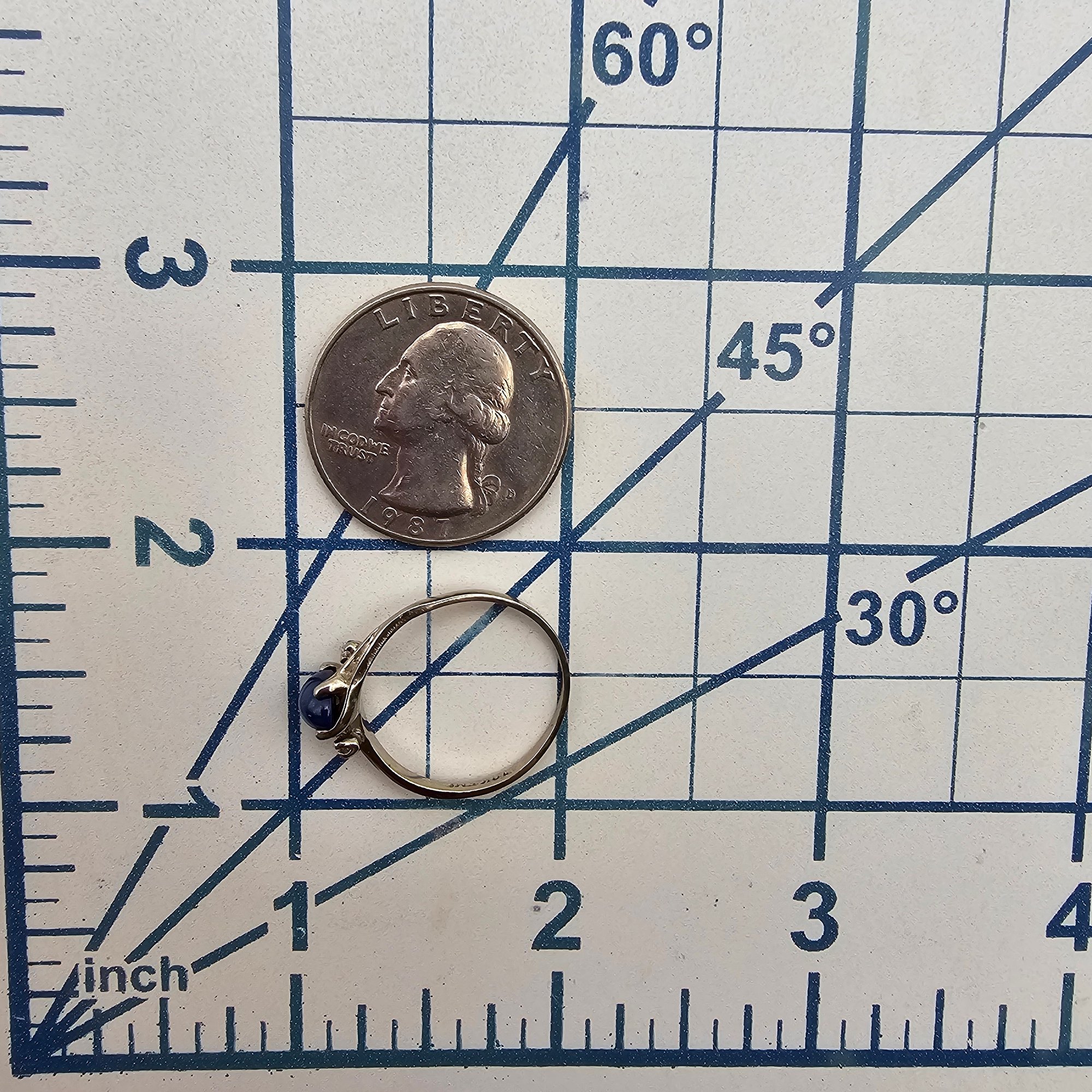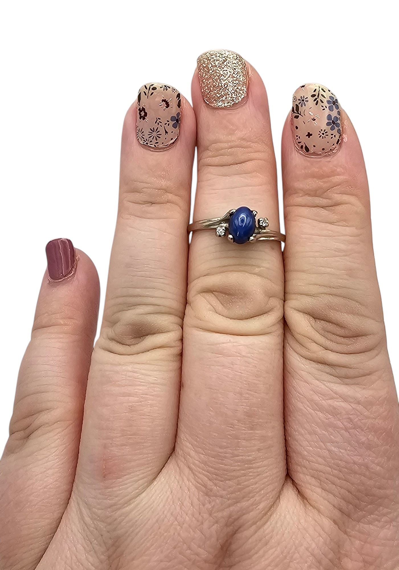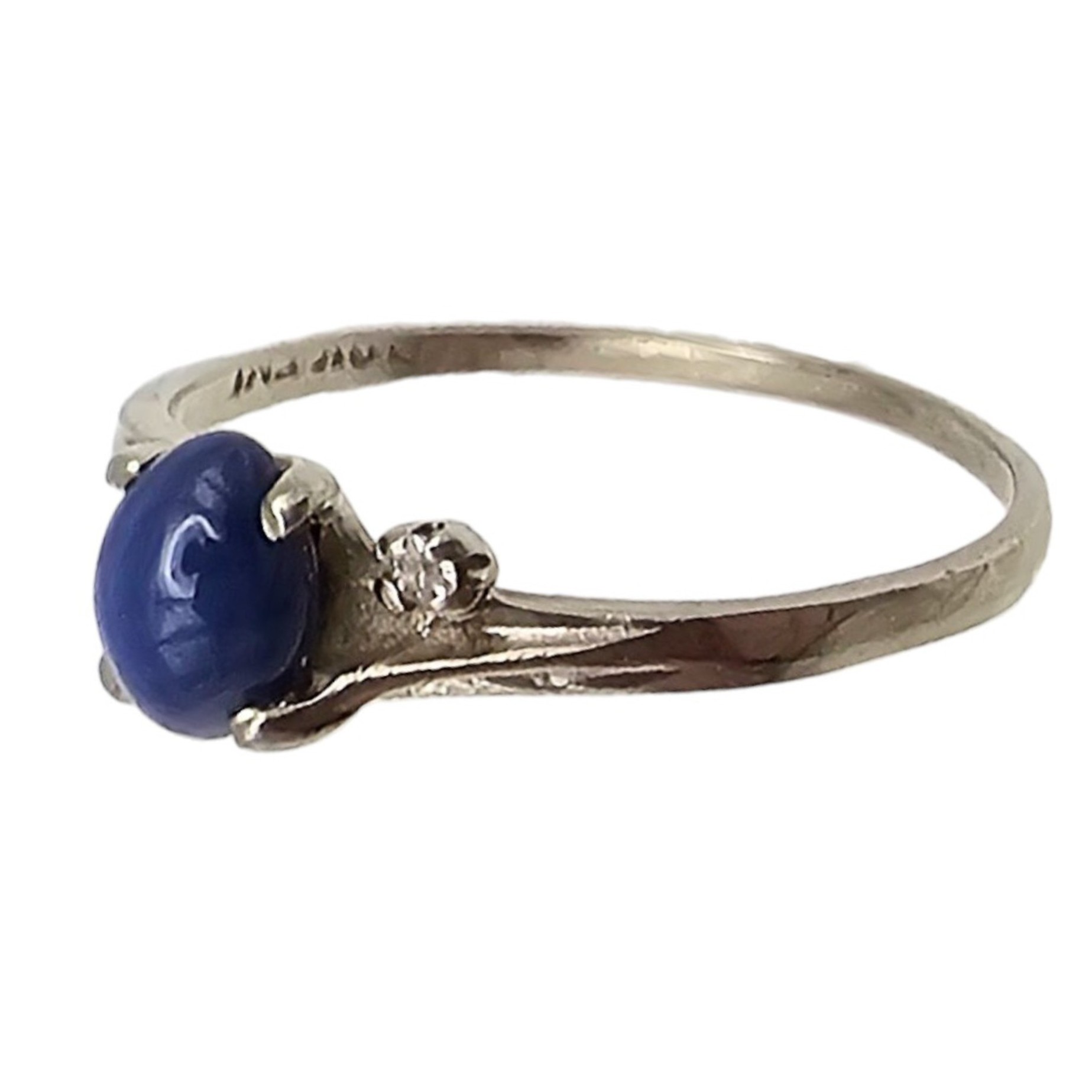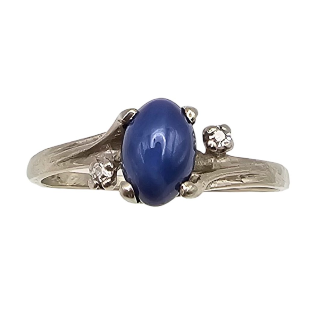 10K White Gold Lindy Star Sapphire Diamond Cocktail Ring Size 8, 1.8g Approximately 0.65 TCW