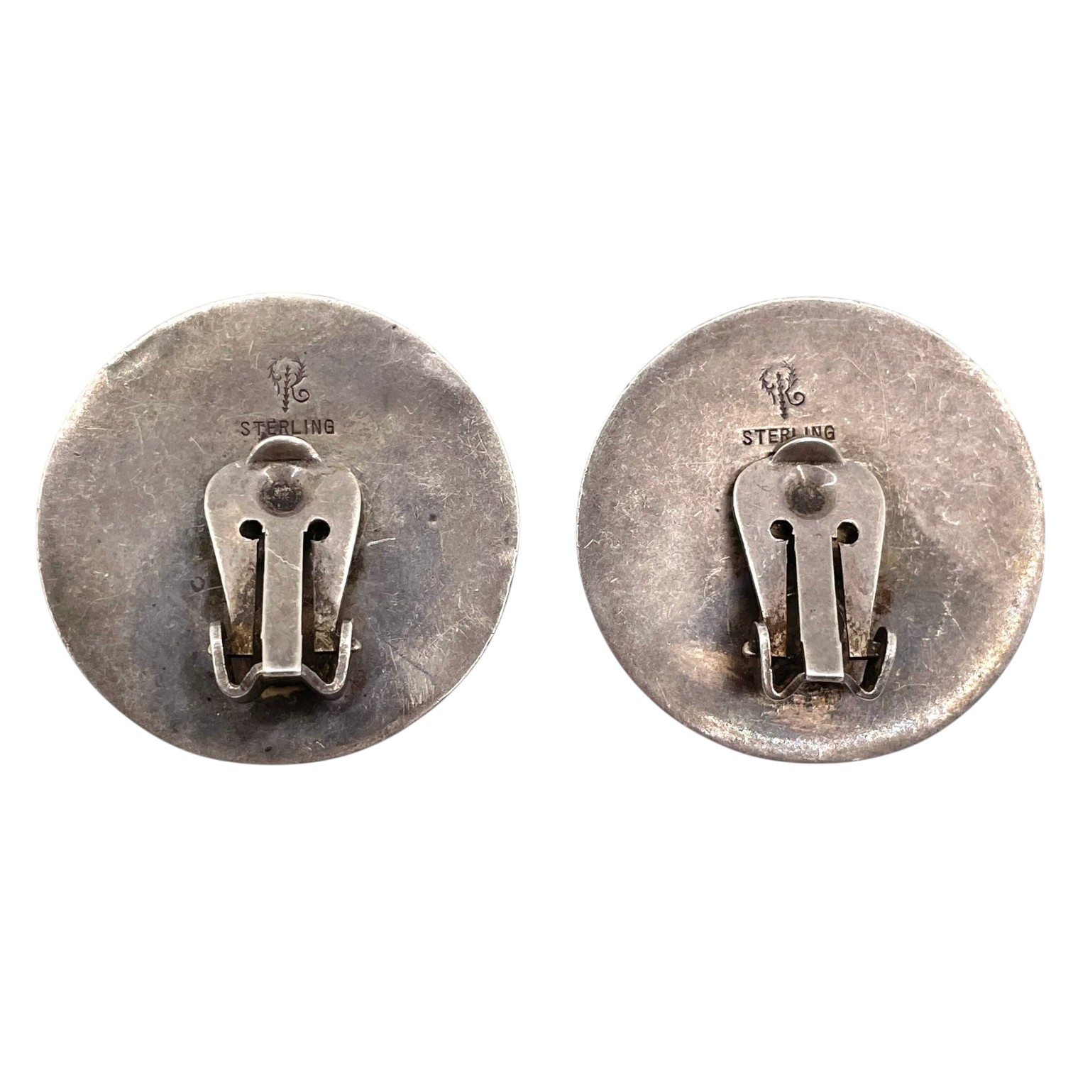 Sterling Japan Disk Clip On Earrings 15.5g Pictograph Signature