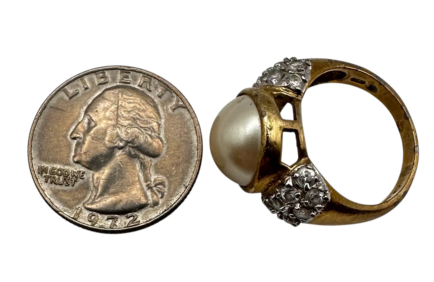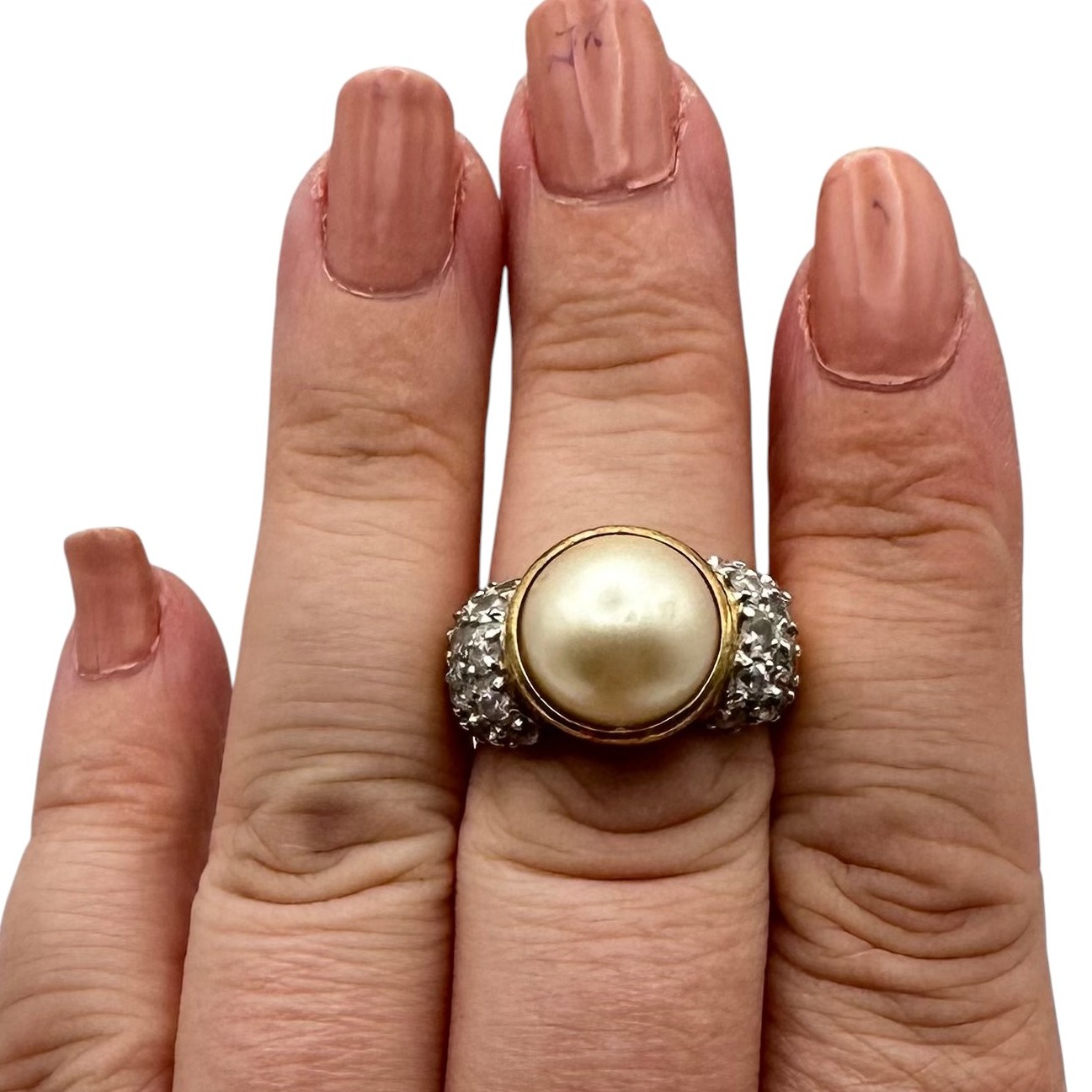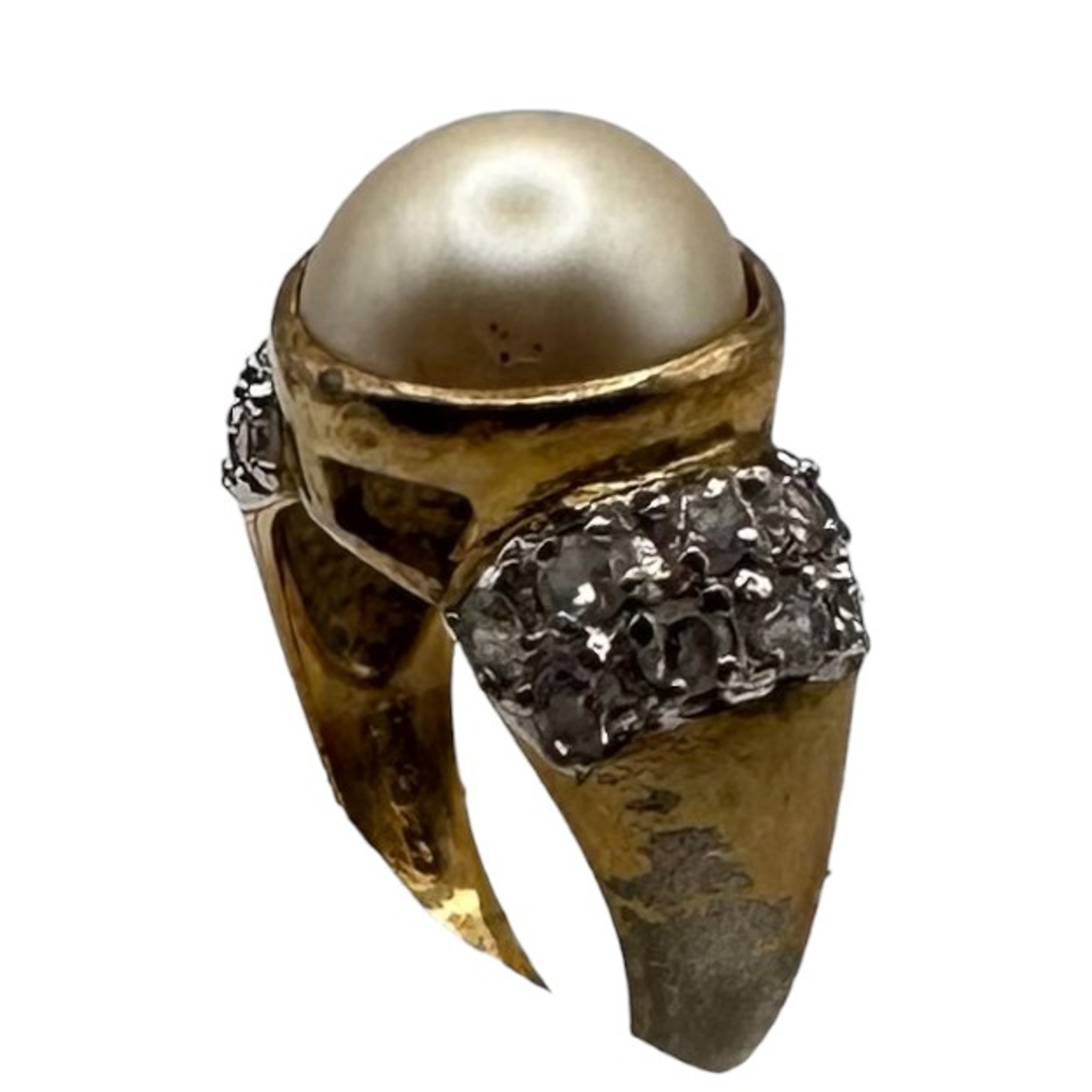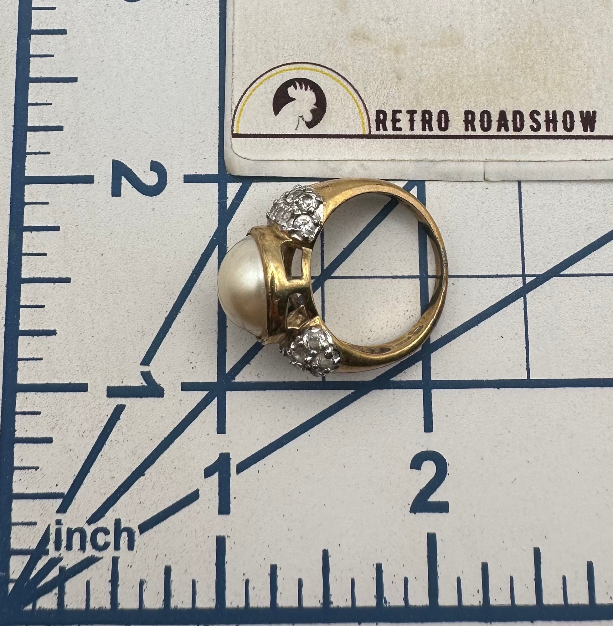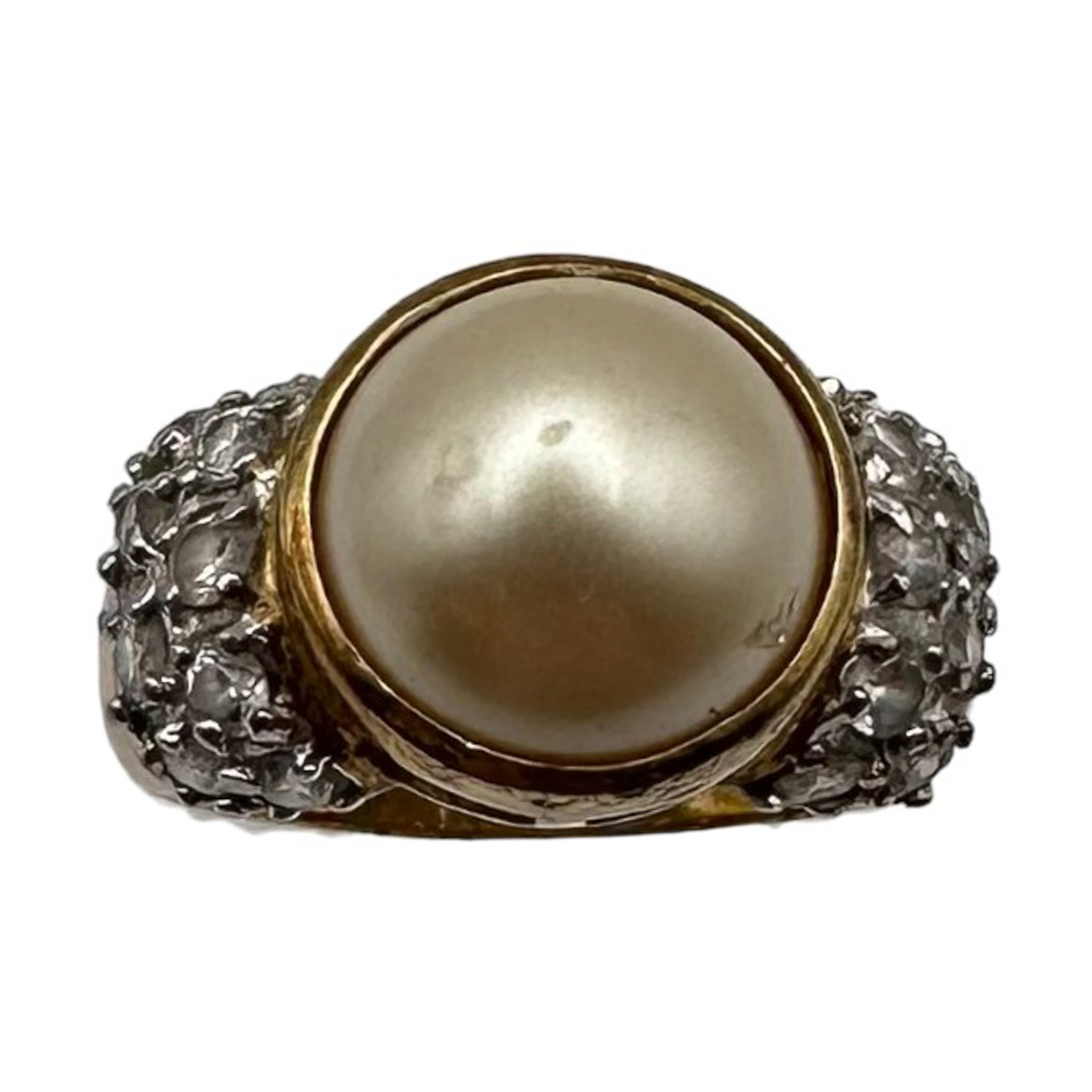 Ross Simons Cubic Zirconia faux pearl gold over Sterling silver cocktail ring size 7.5 7.3 g as is has some wear