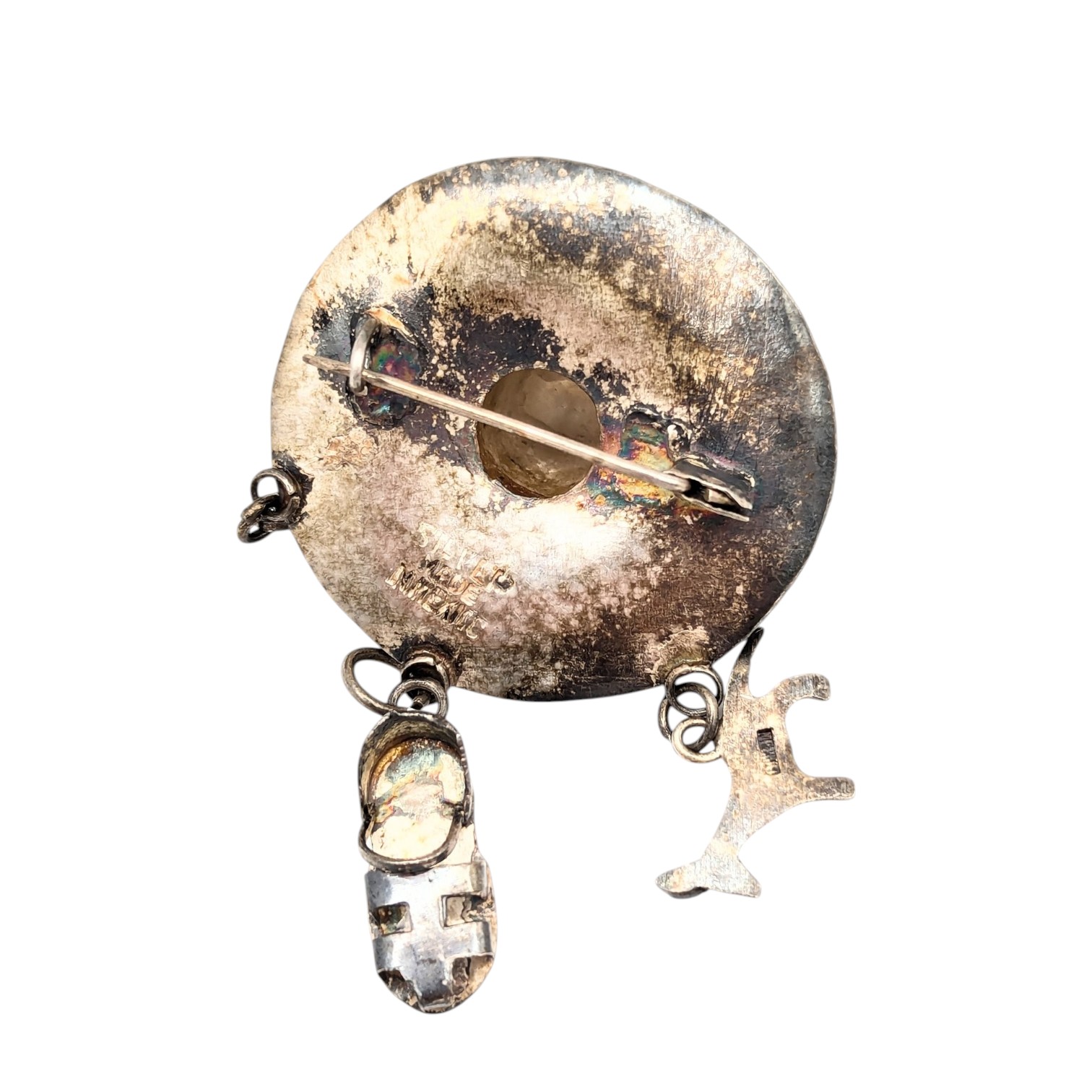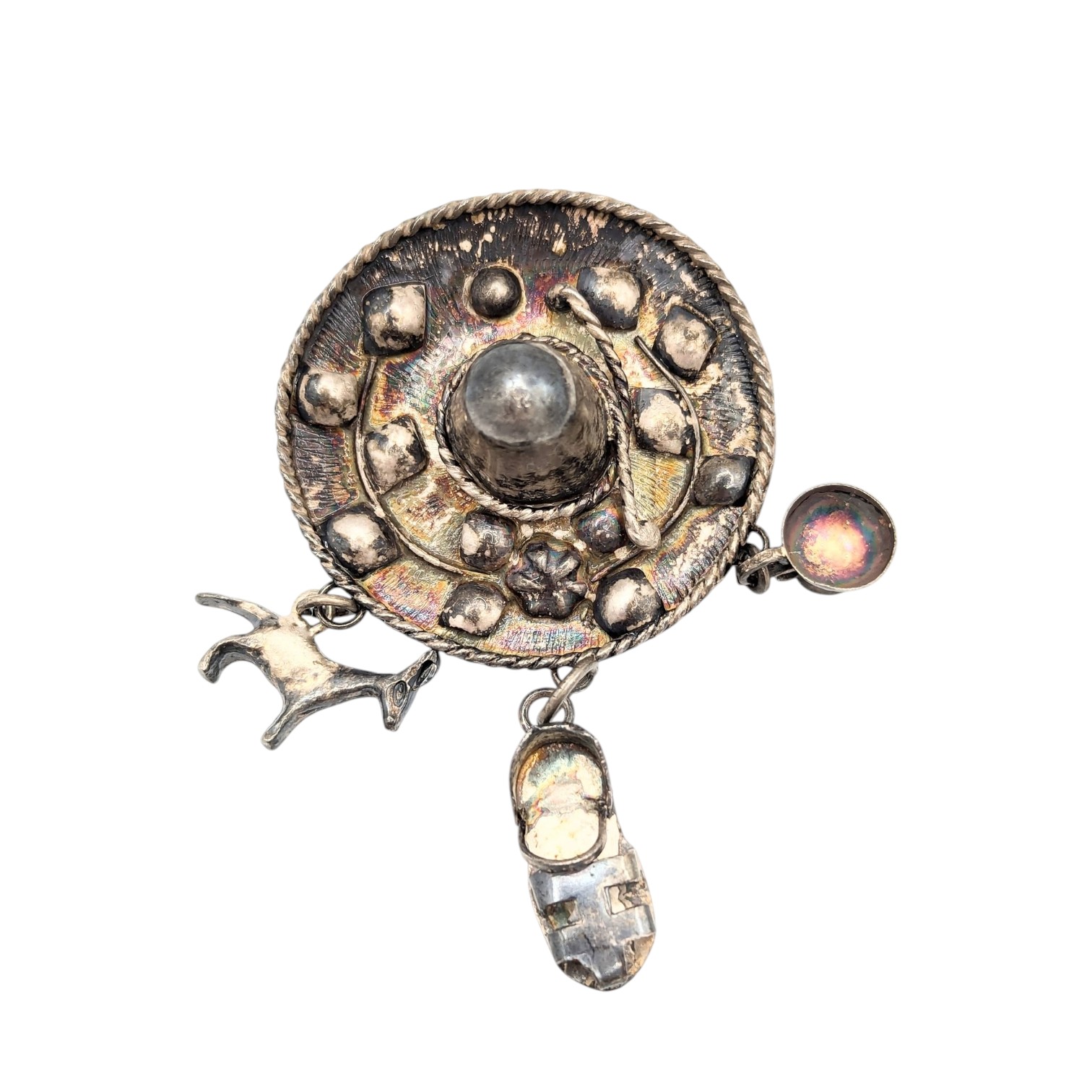 Sterling made in Mexico sombrero w/ charms brooch 9.3g