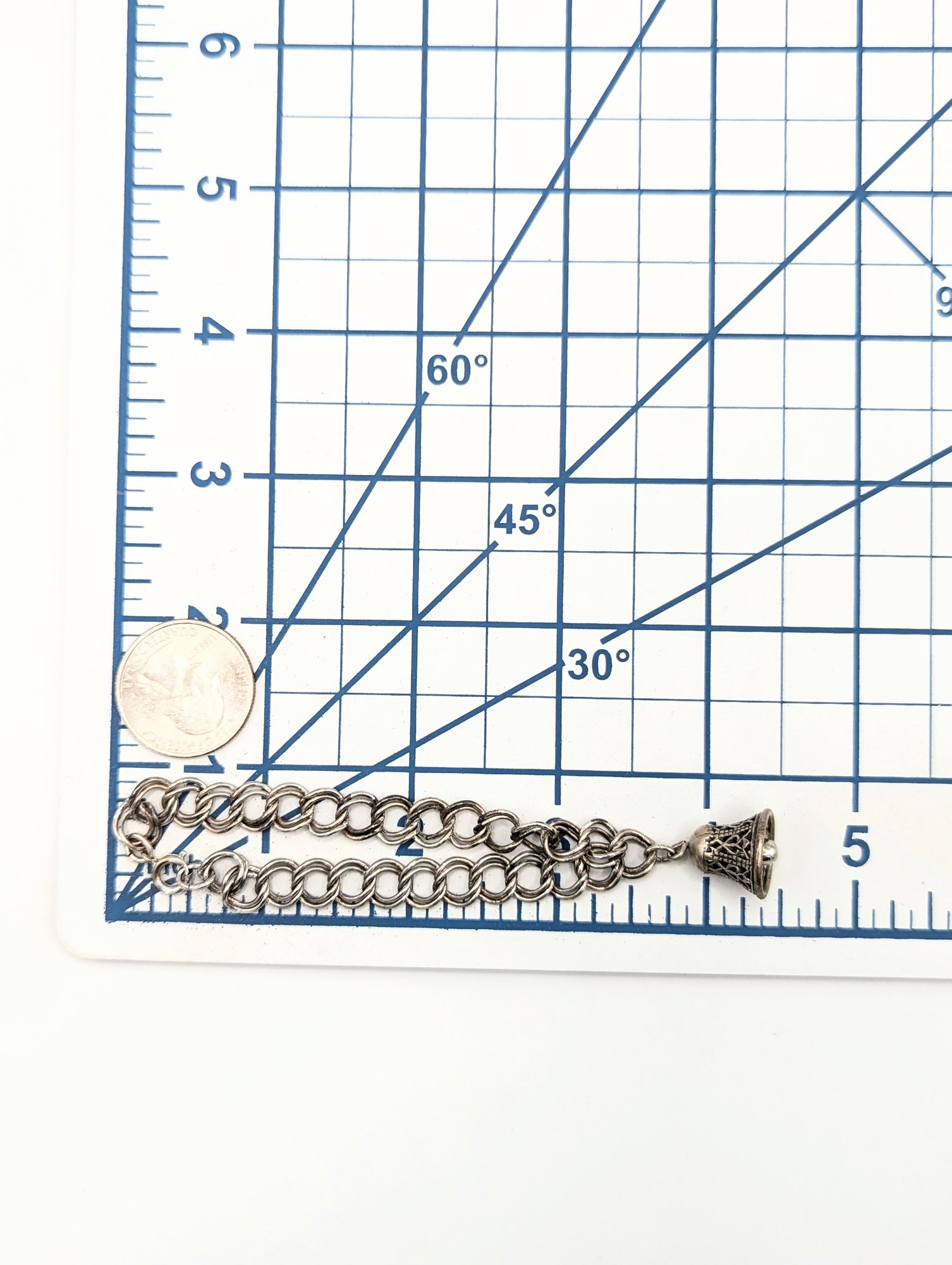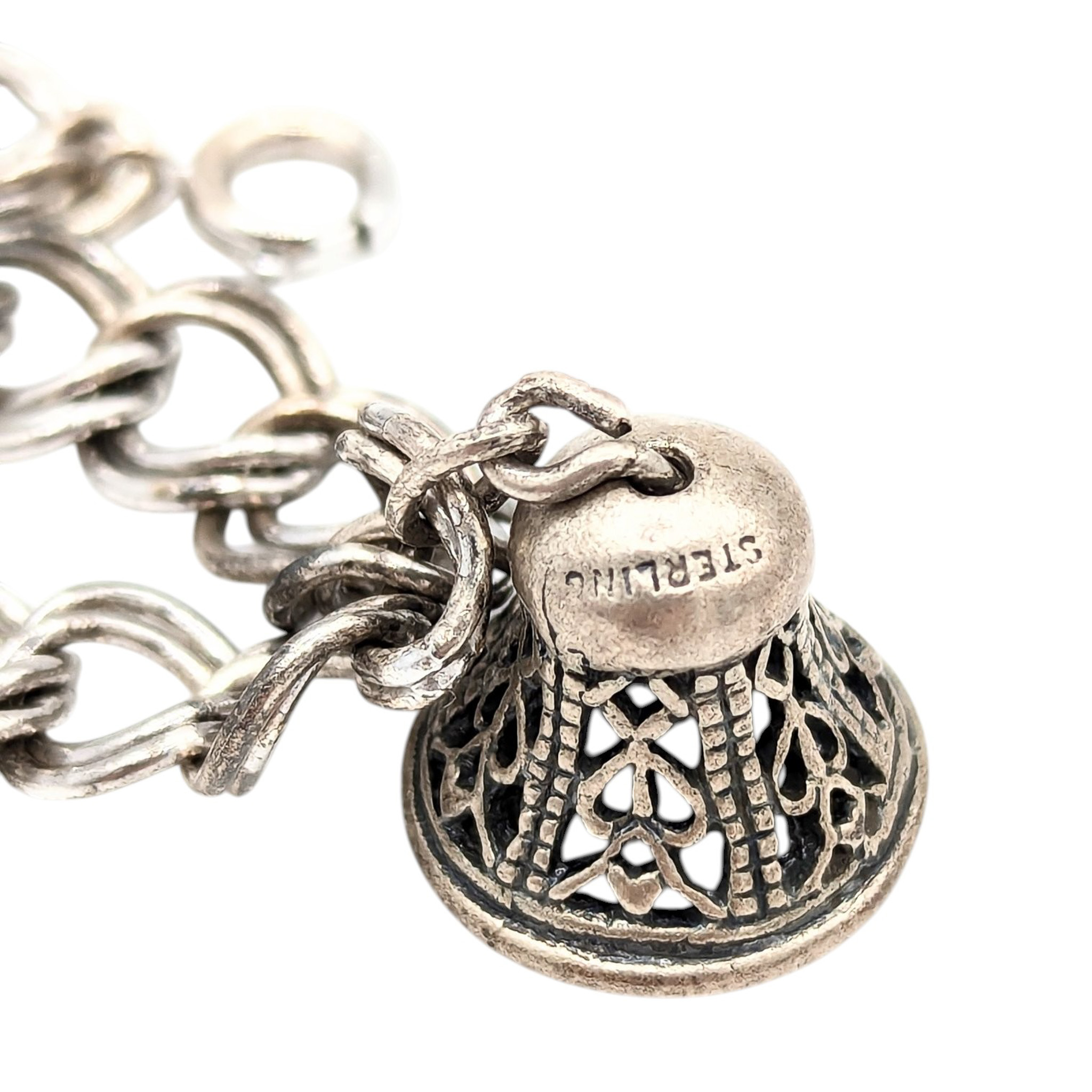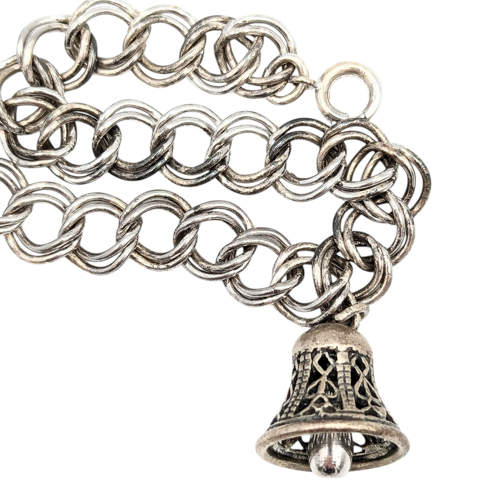 Sterling bell charm rope bracelet 14.1g