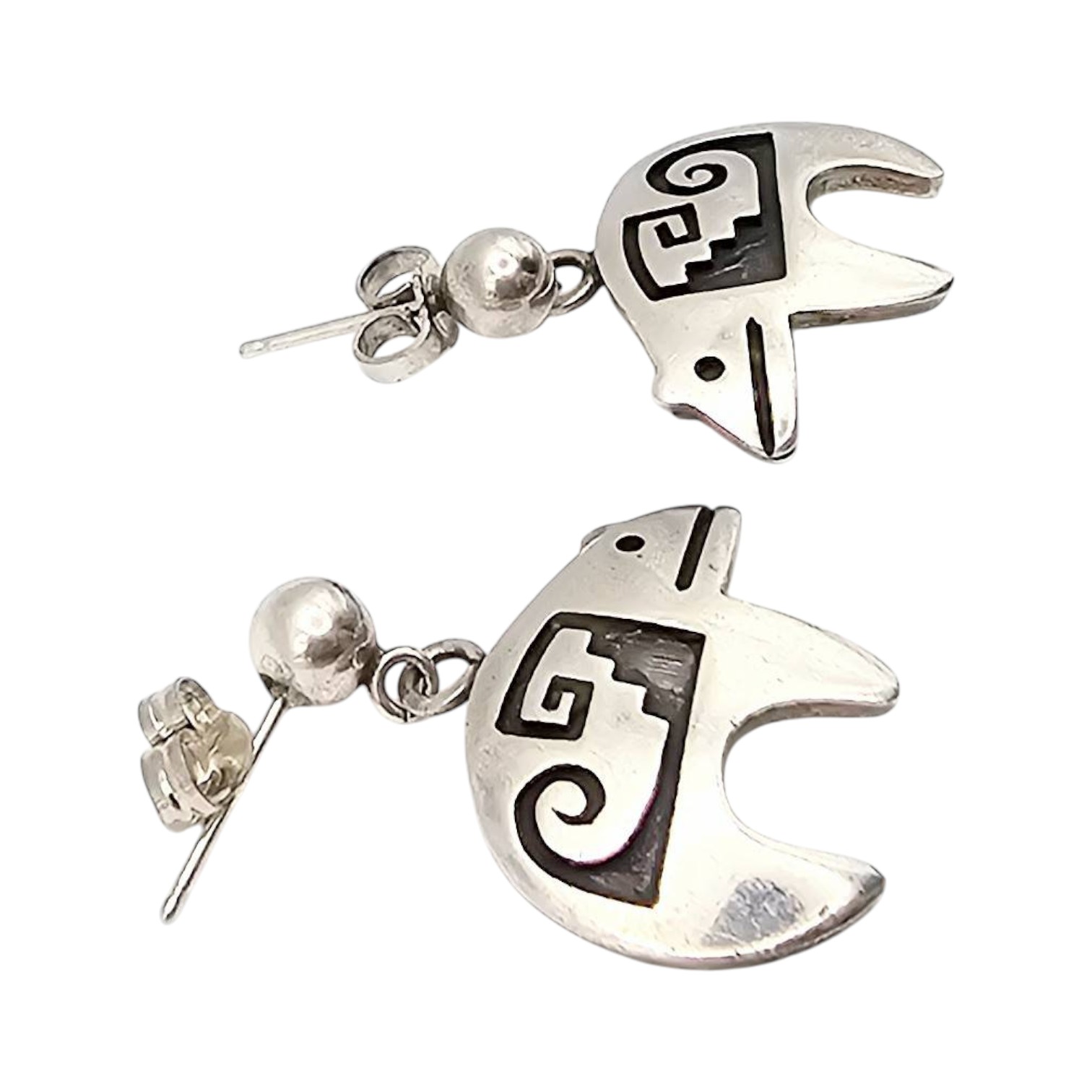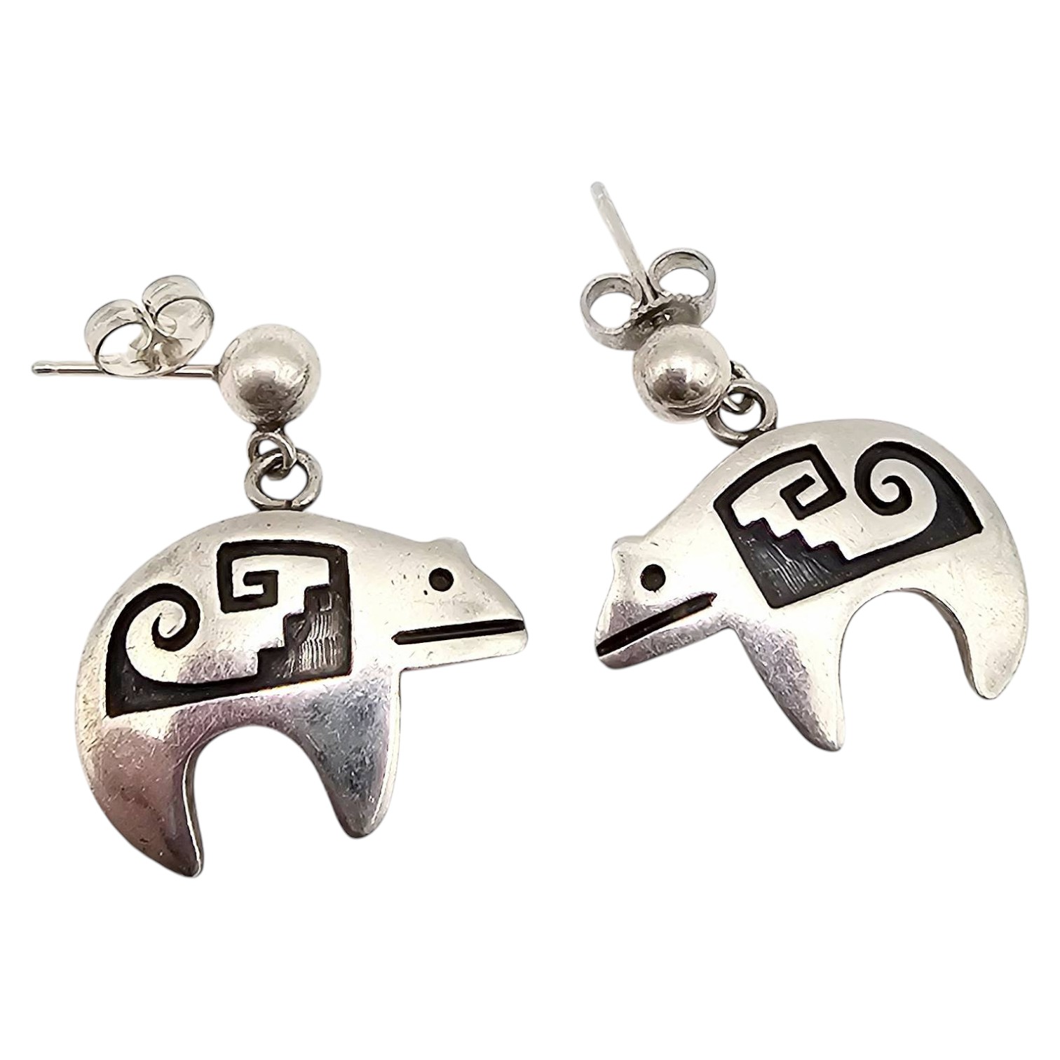 Lambert Livingston Navajo Sterling Silver Bear Earrings