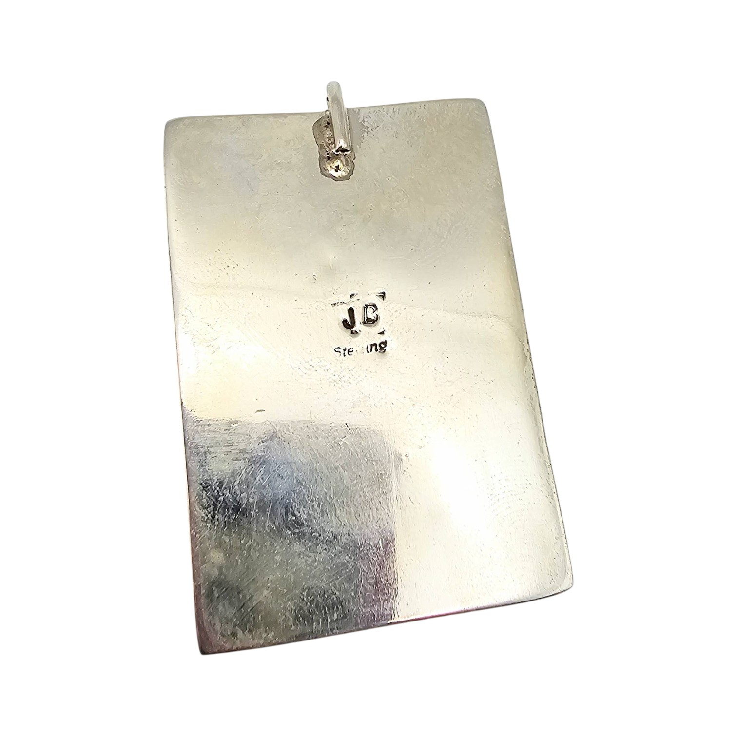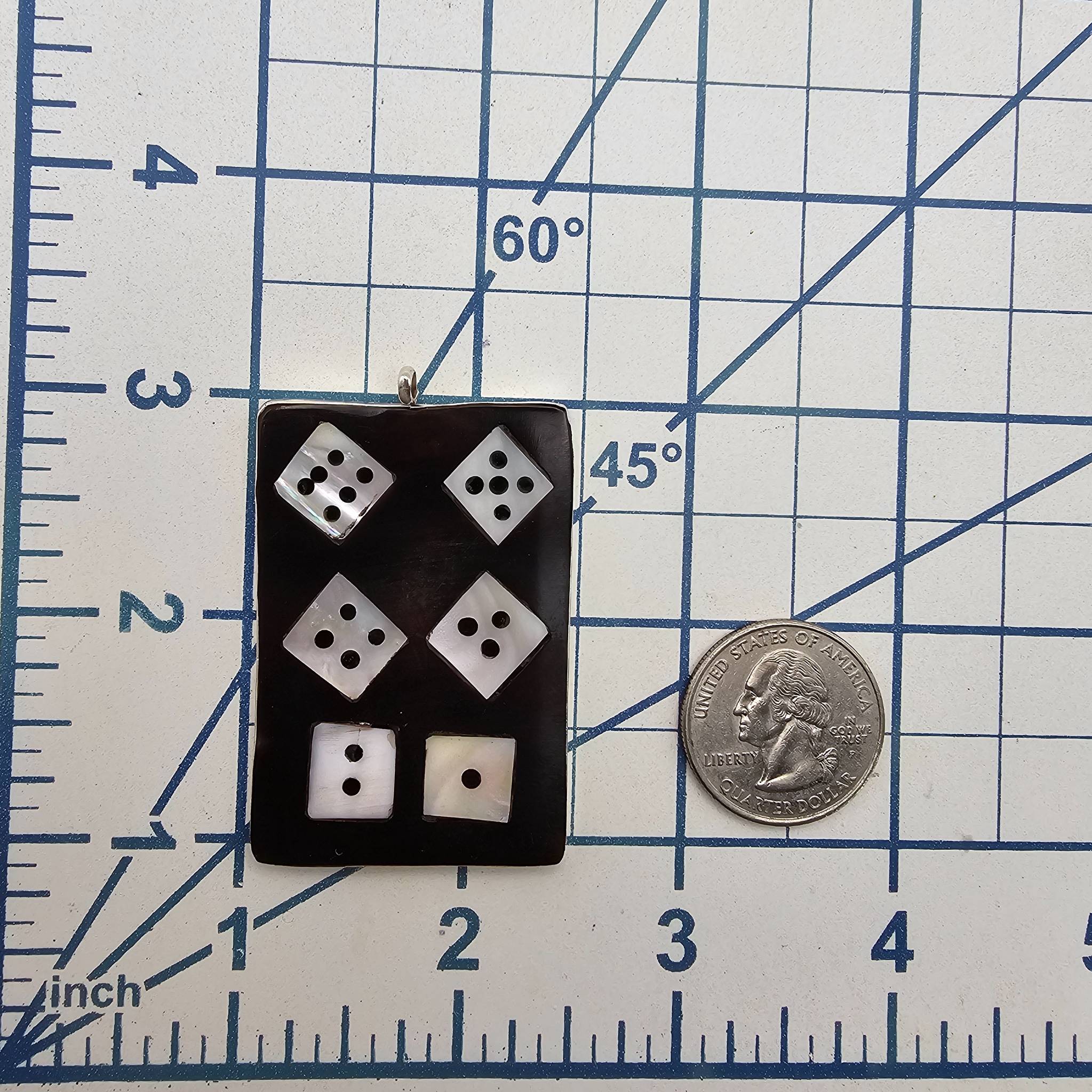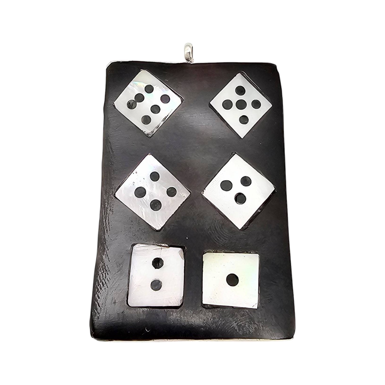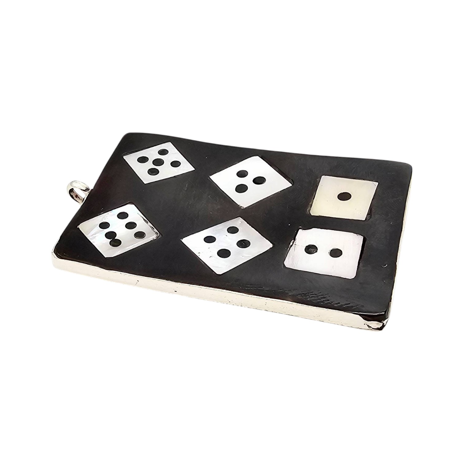 Zuni Signed Sterling Silver Multi-Stone Dice Inlay Pendant 17.8g Mother-of-Pearl, Onyx. Hallmarked JB, tag states that item is Zuni JD Massie