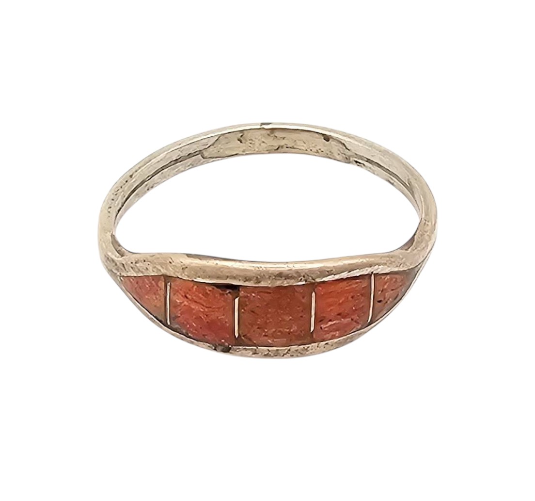 Sterling Silver Coral Inlay Ring Size 8