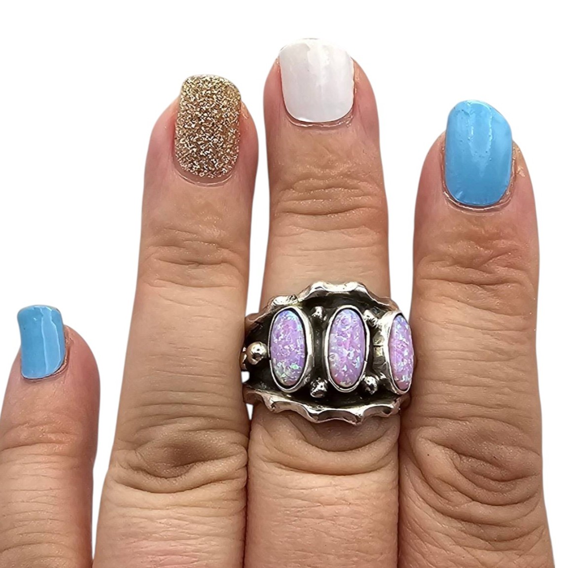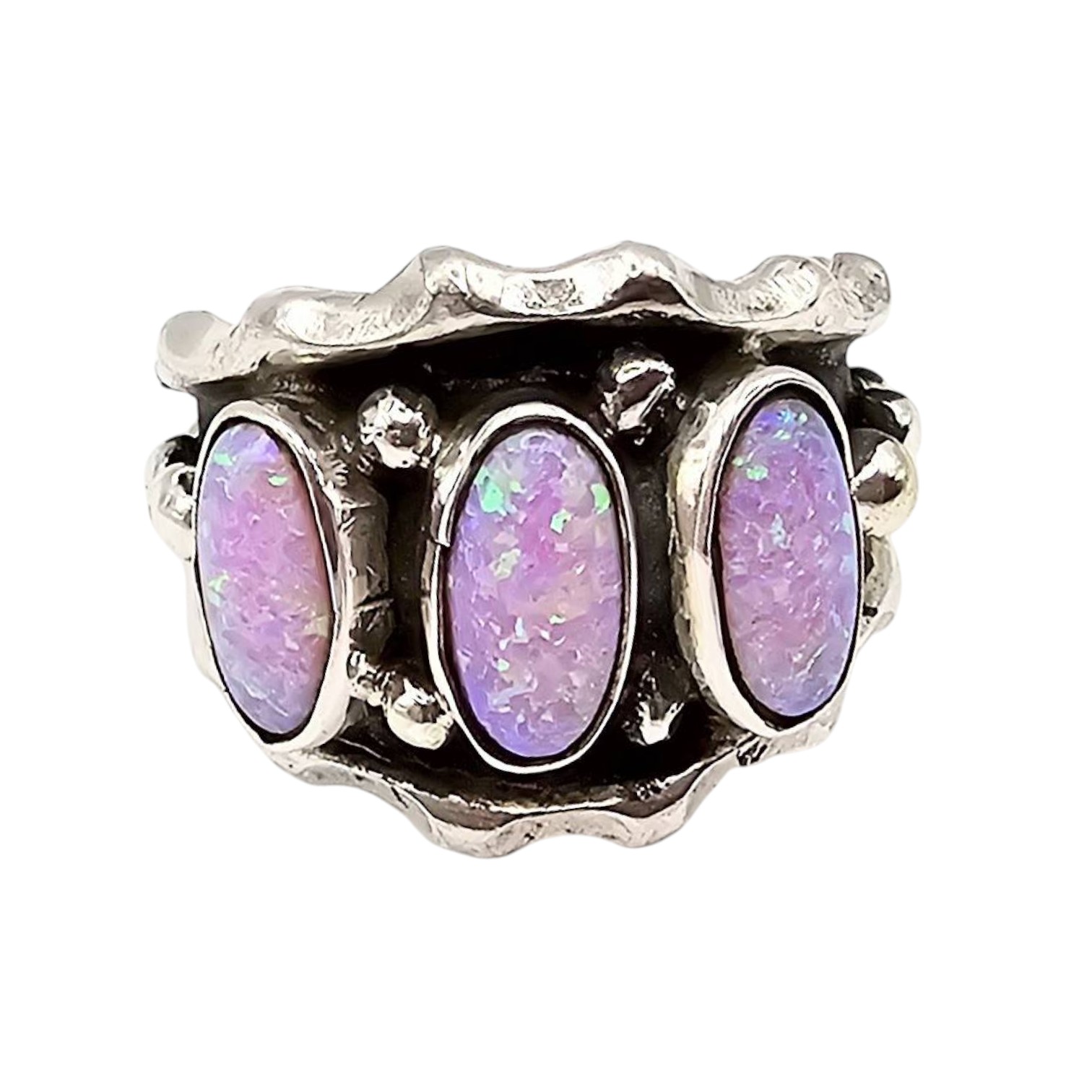 Navajo Andrew Vandever purple opal Sterling Silver Ring Size 8.75