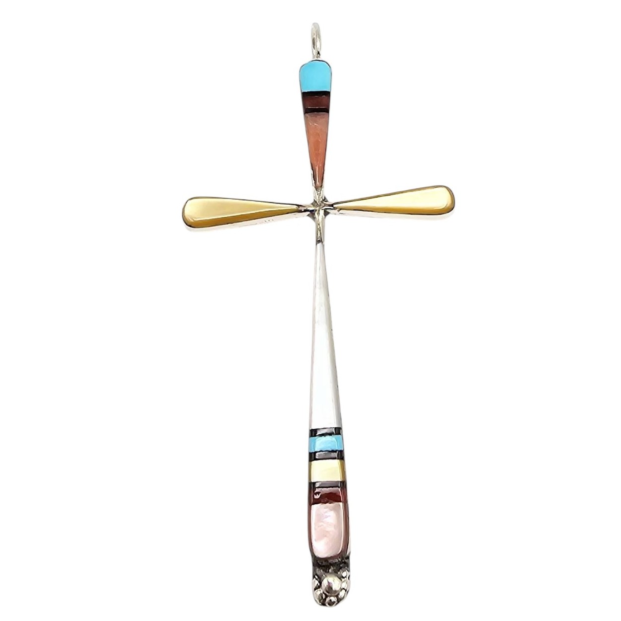 Zuni Lynette Bowannie Inlay Design Cross Pendant