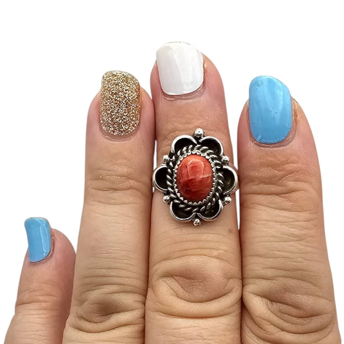 Freda Martinez Navajo Handmade Sterling Silver Spiny Oyster Ring Size 6