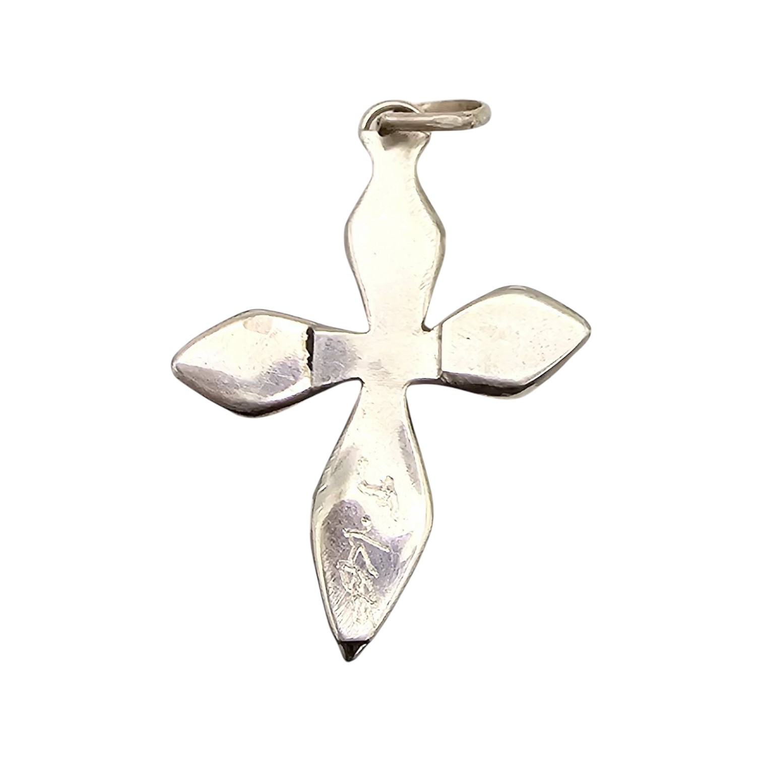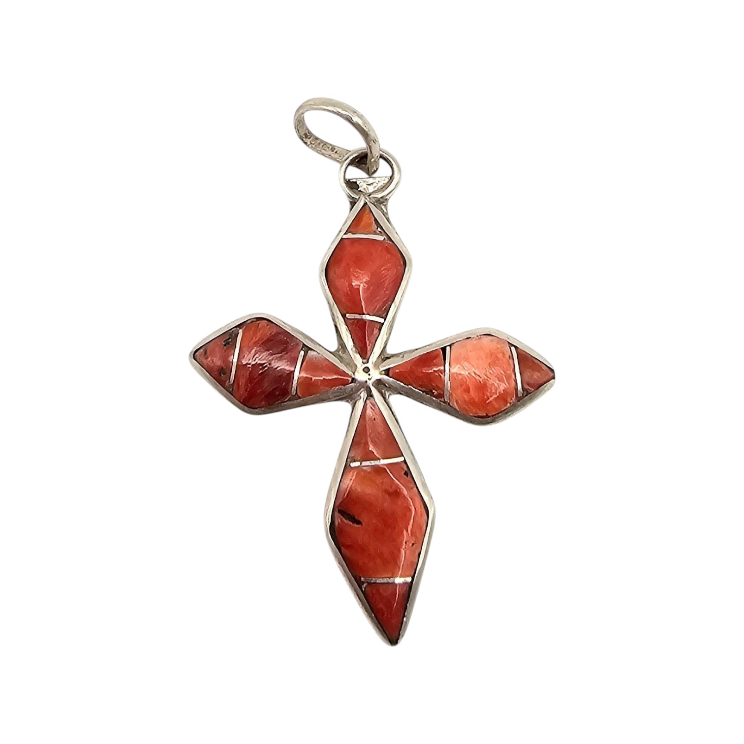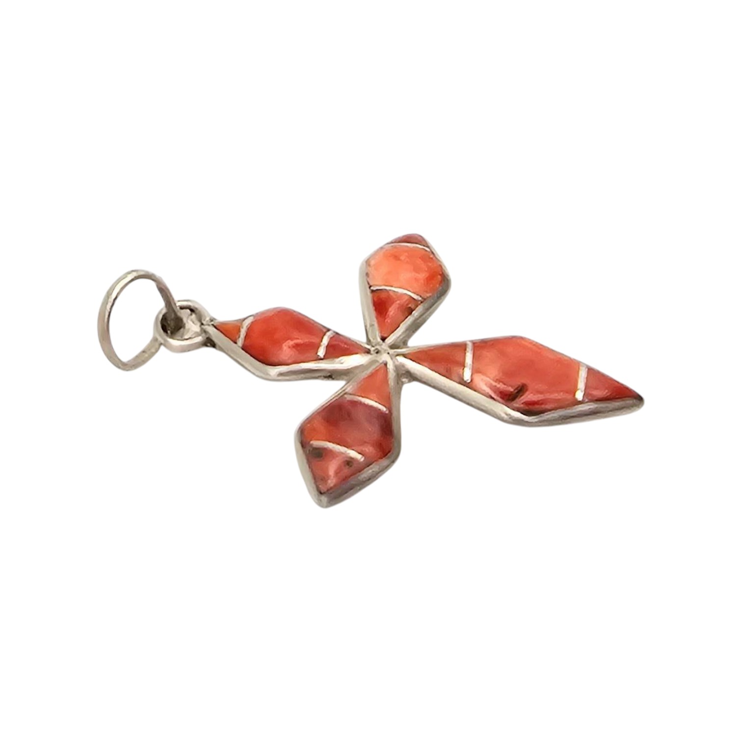 James Kee Navajo Handmade Sterling Silver Coral Inlay Cross Pendant