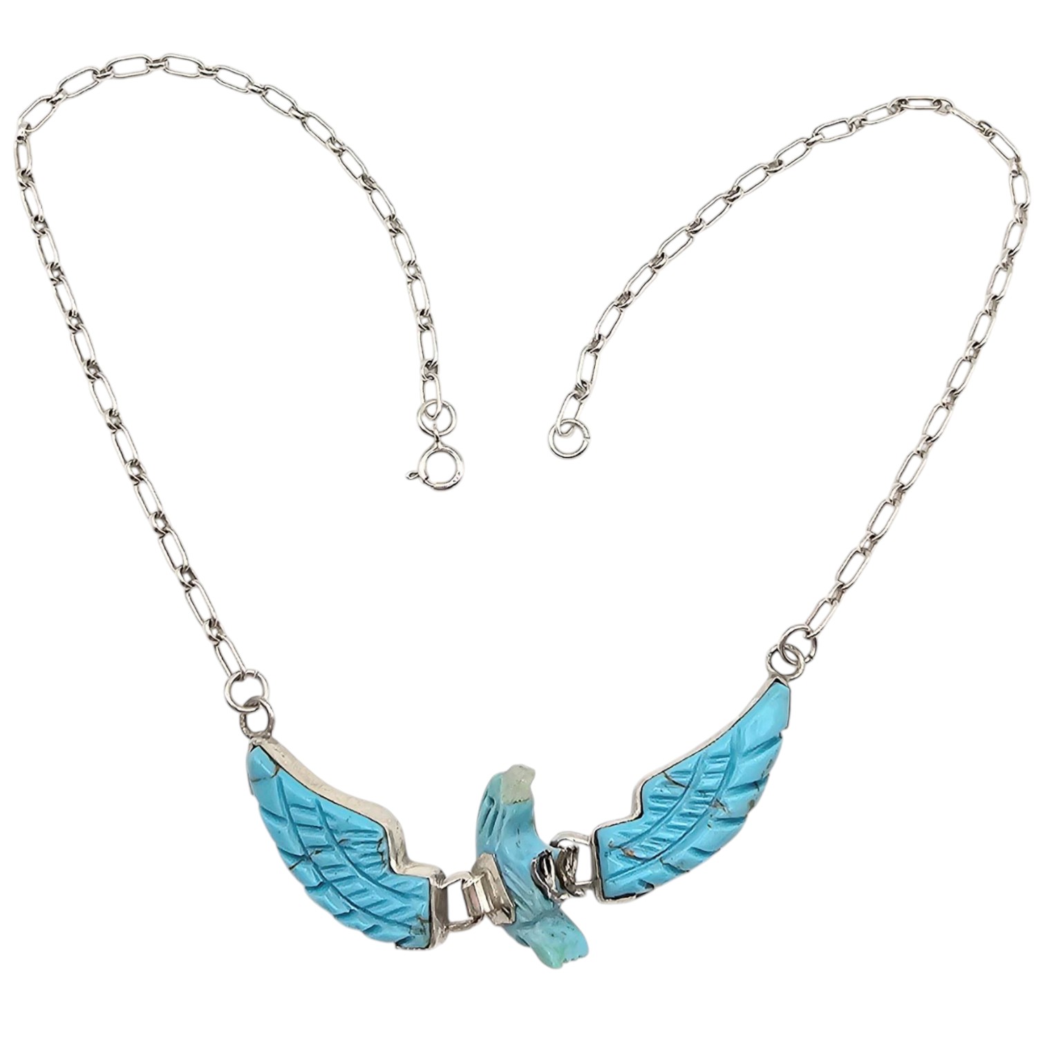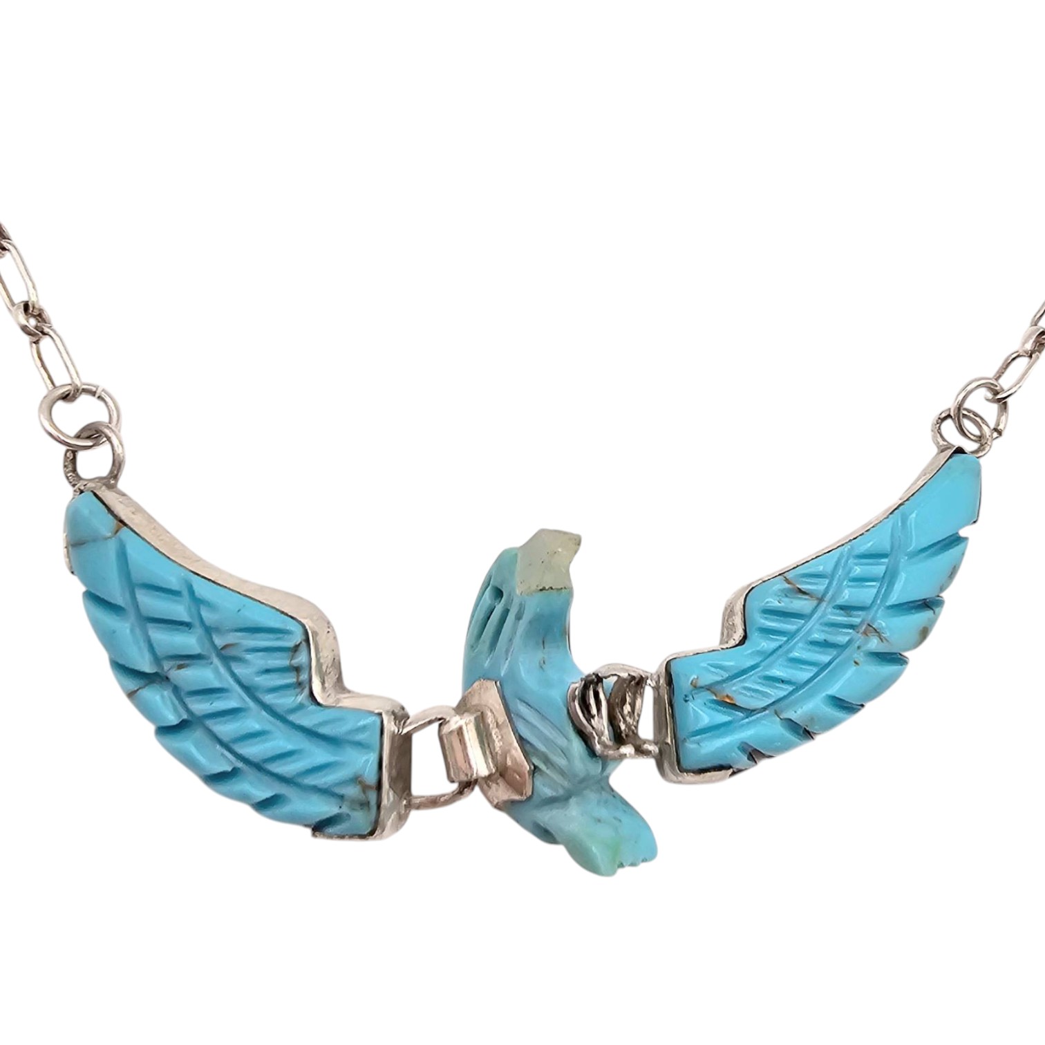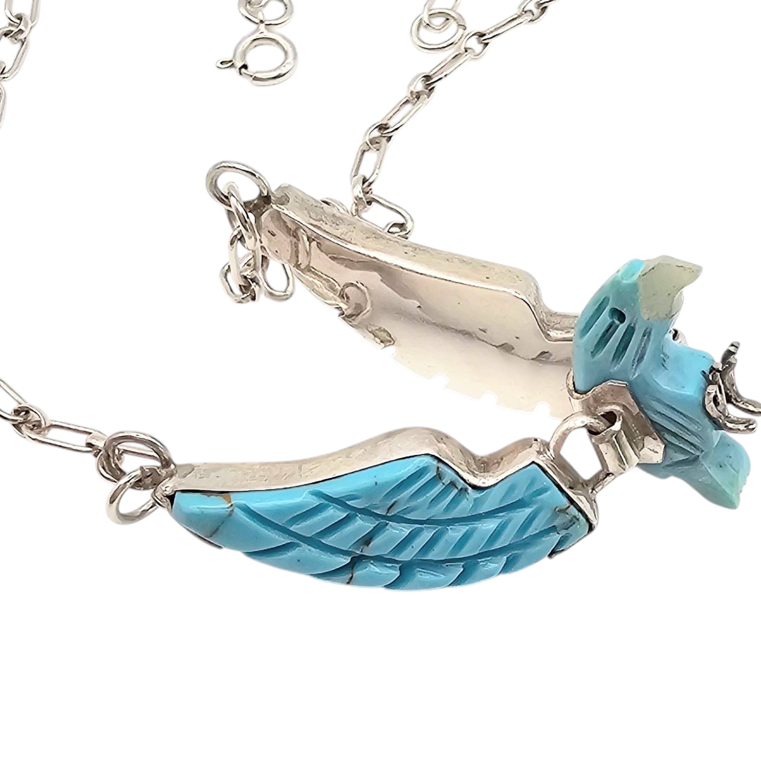 Ben Livingston Sterling Silver Articulated Carved Turquoise Eagle Necklace