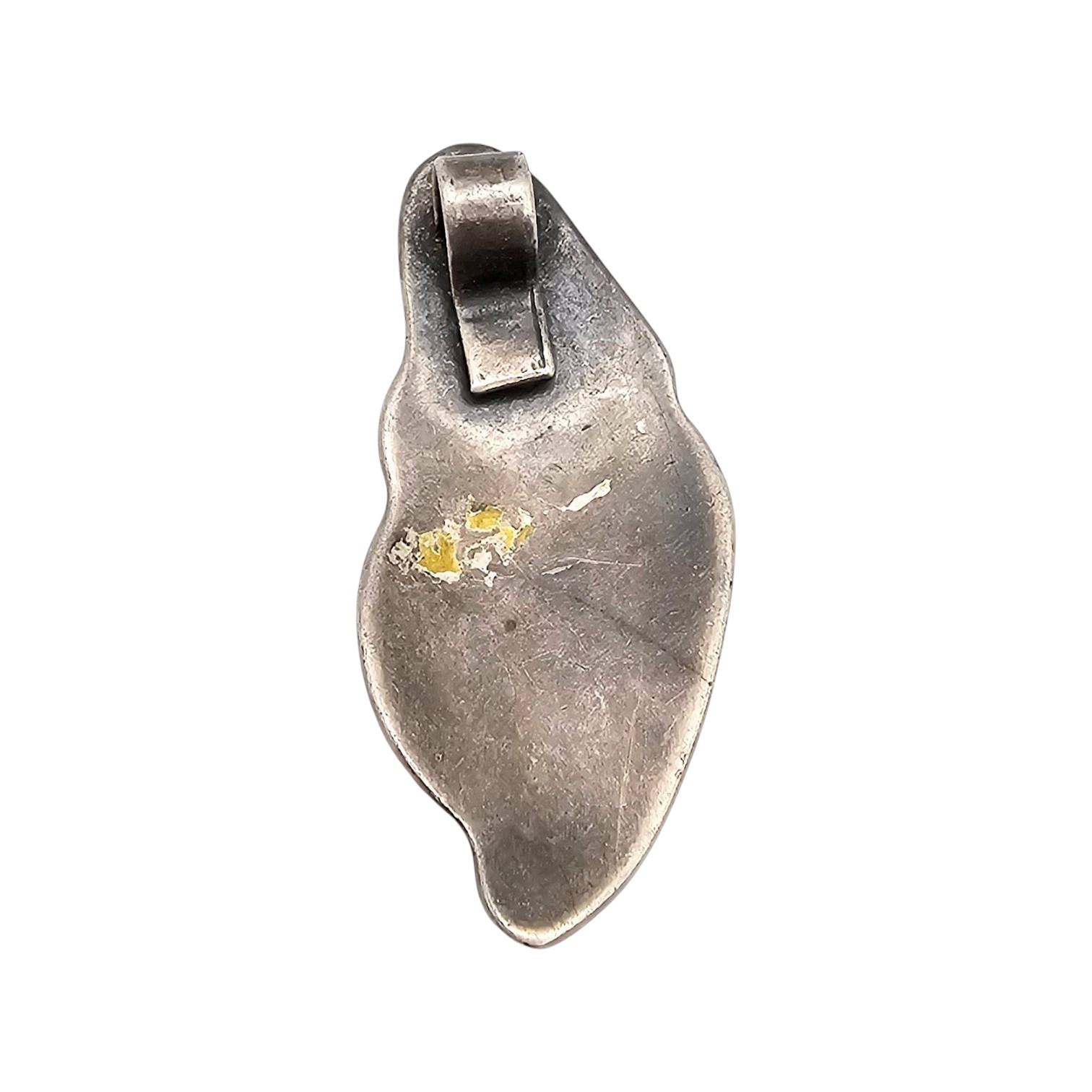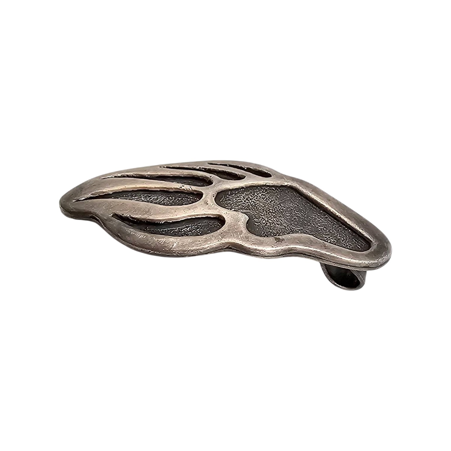 Navajo-made sterling silver bear paw pendant weighing approximately 8.4 grams. The pendant features a textured and oxidized interior design to accentuate the bear paw motif. It includes an integrated bail for attaching to a chain or cord. Dimensions are displayed relative to a quarter for scale.