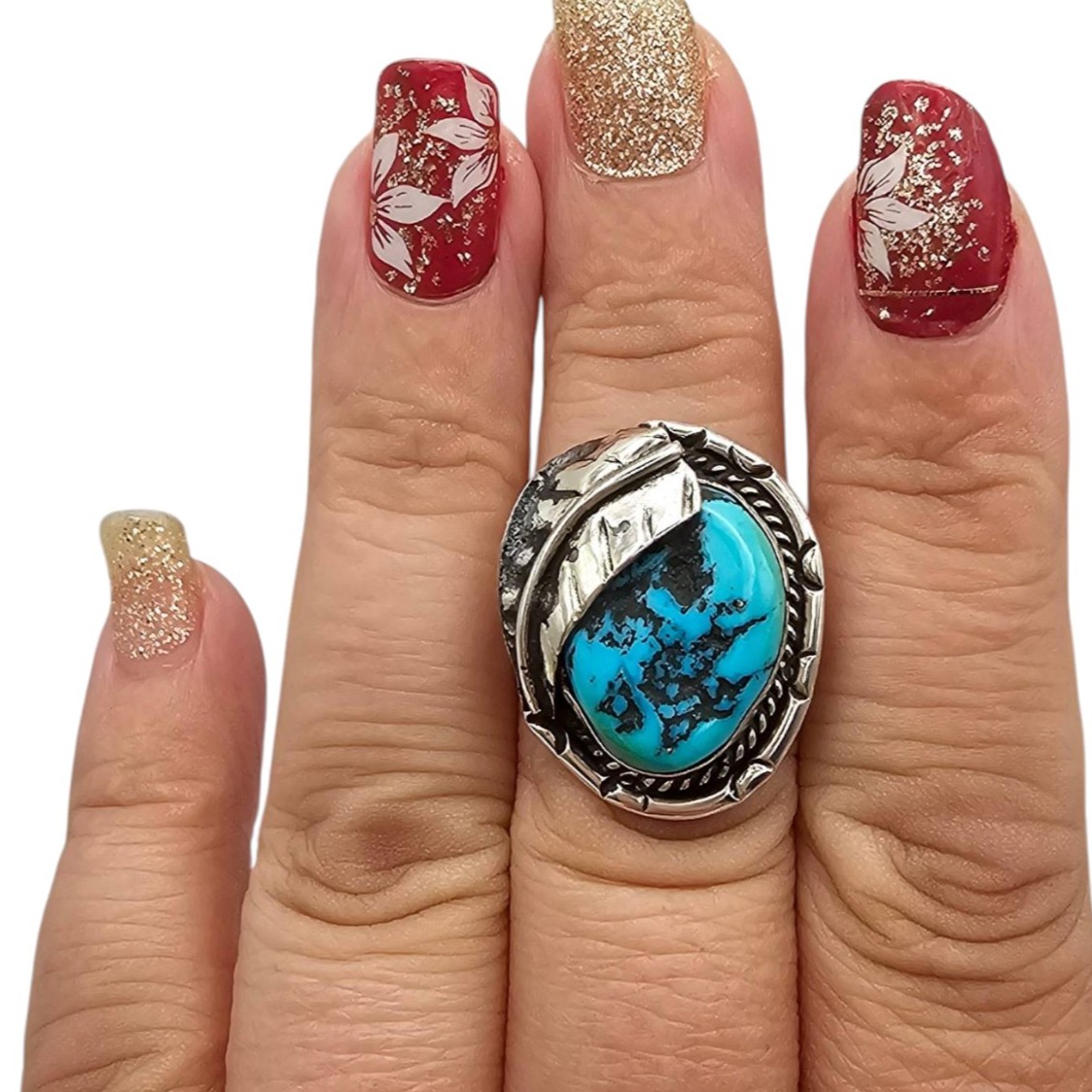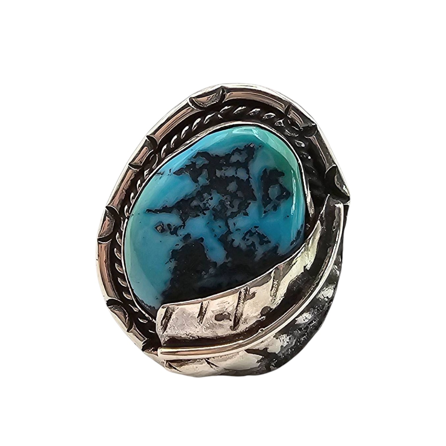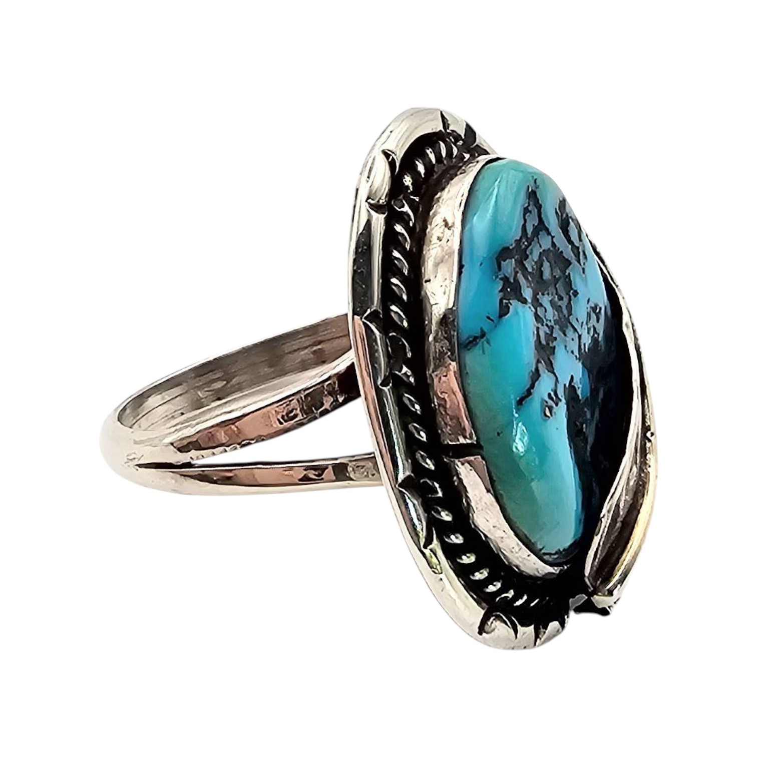 Navajo Sterling Silver Turquoise Ring with Size 7.75