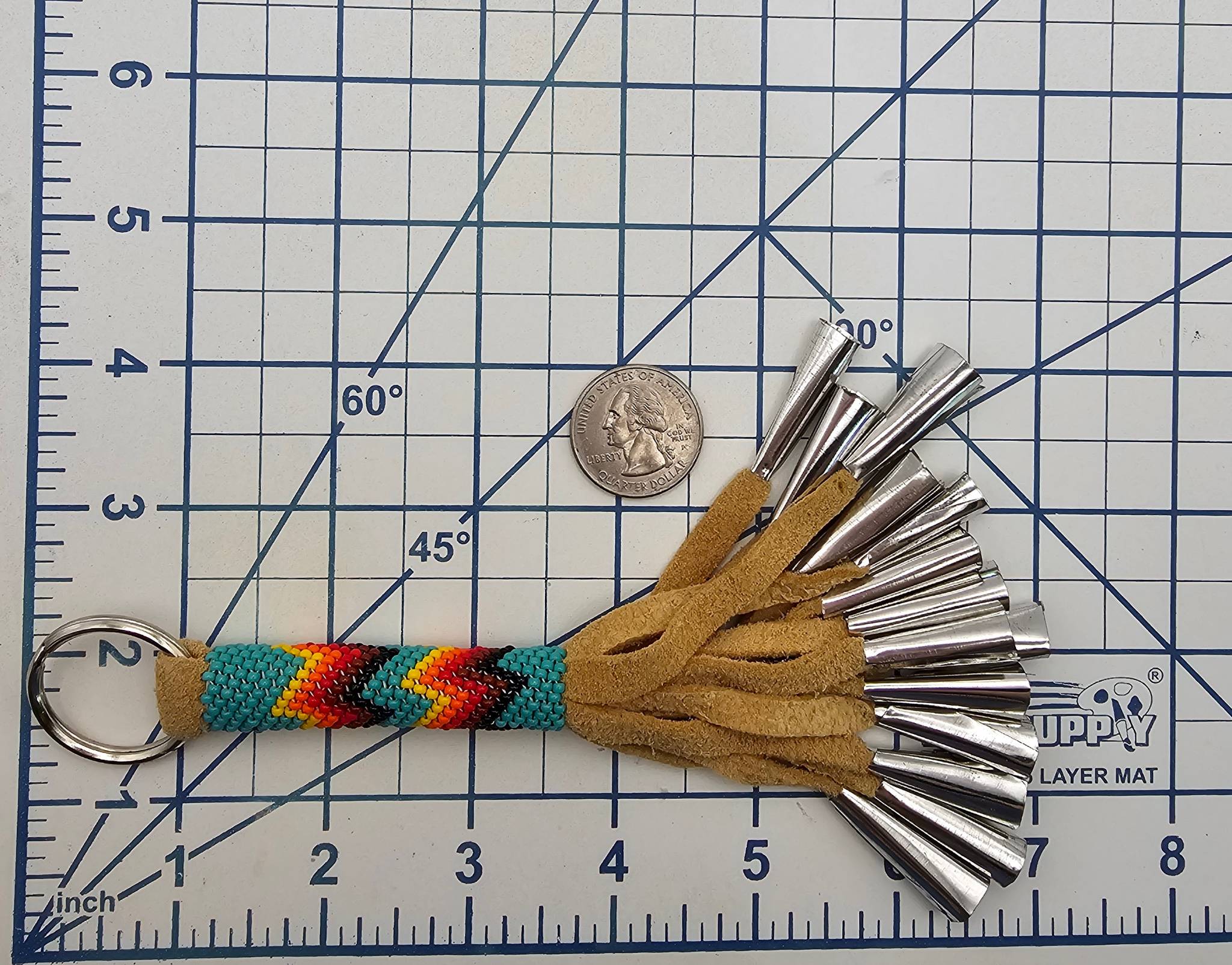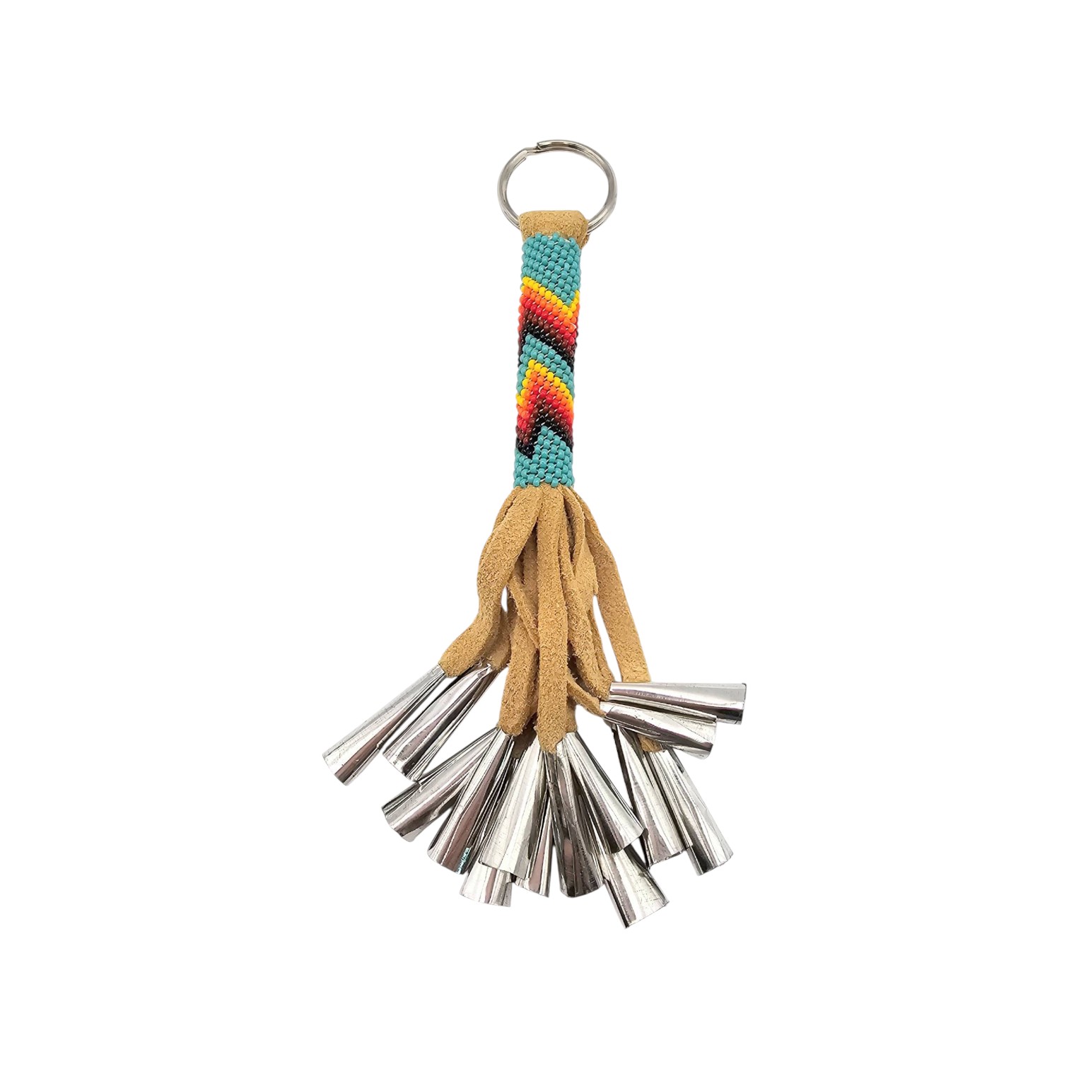 Native Leather Micro Beadwork Metal Cones Key Chain