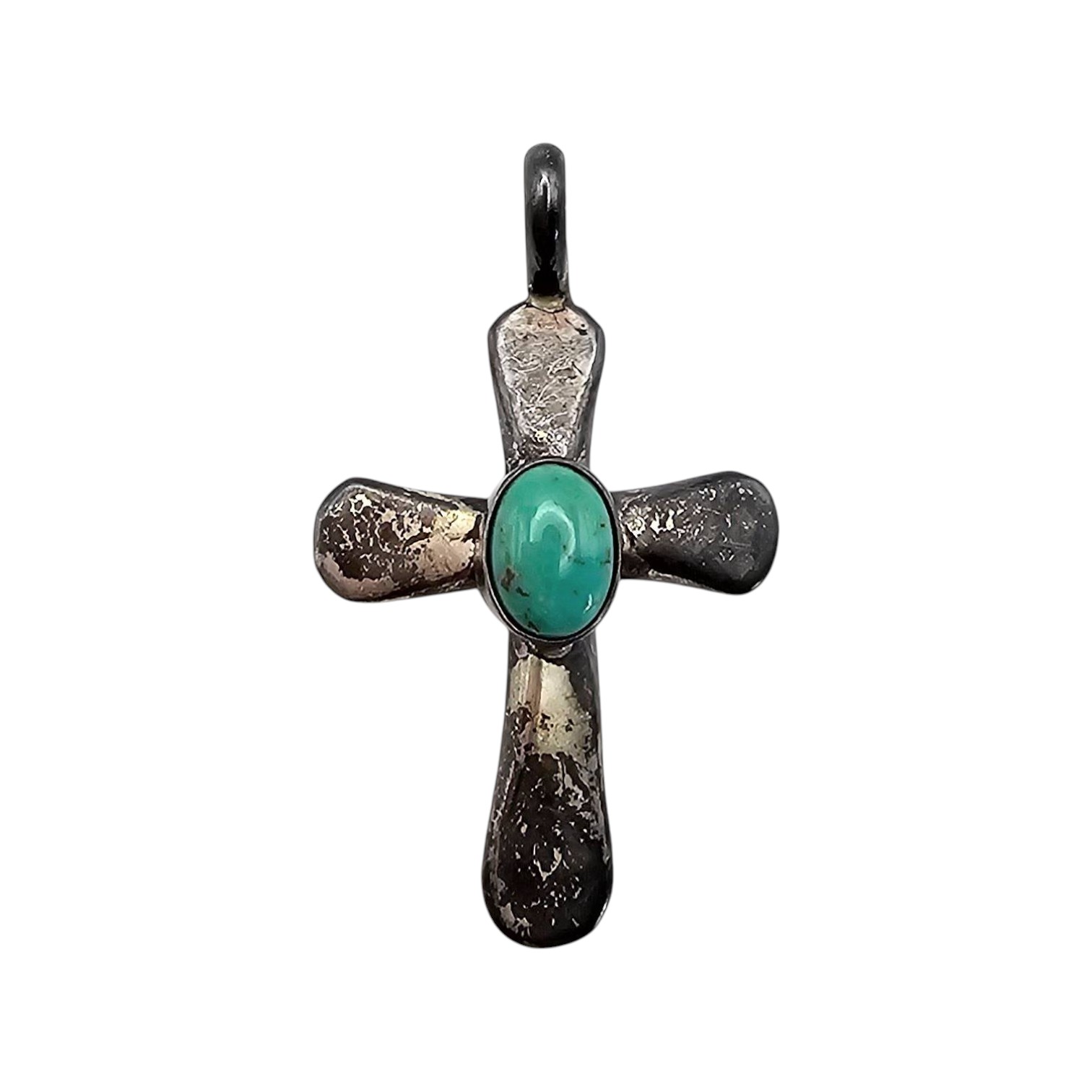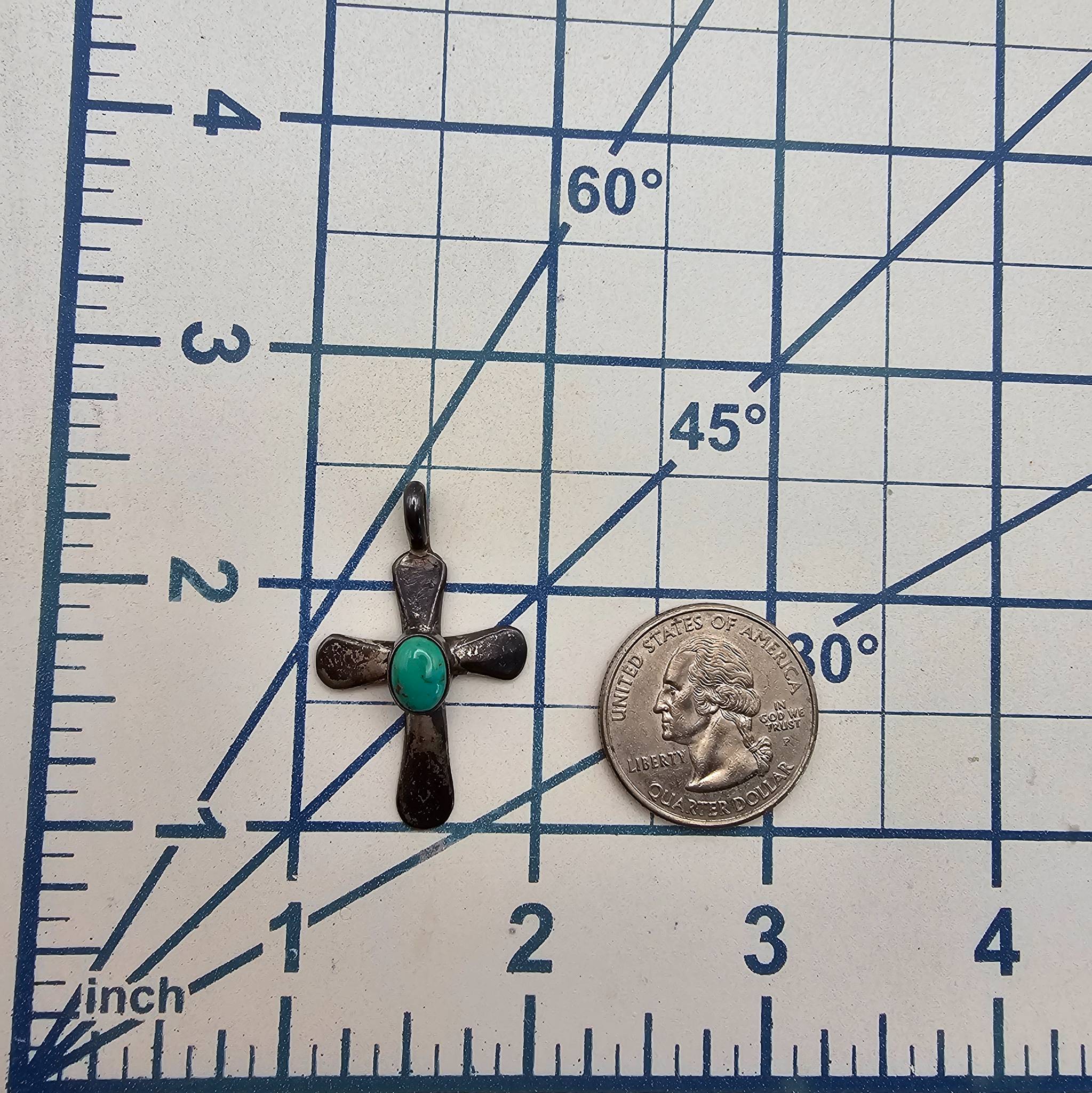 Richard L. Reeve Sterling Silver Turquoise Inlay Cross Pendant