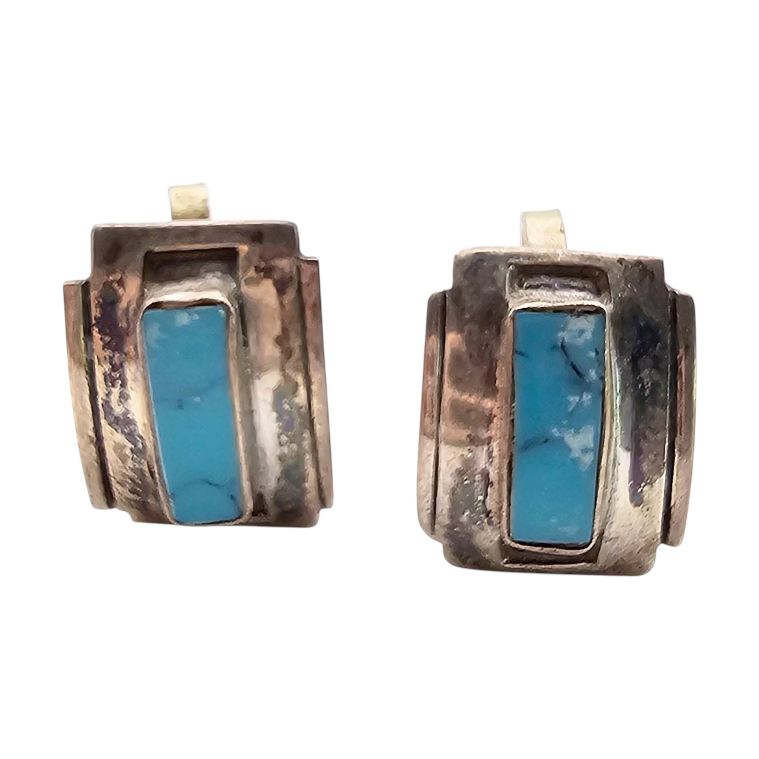 Alpaca Silver Turquoise Inlays Screw-Back Earrings