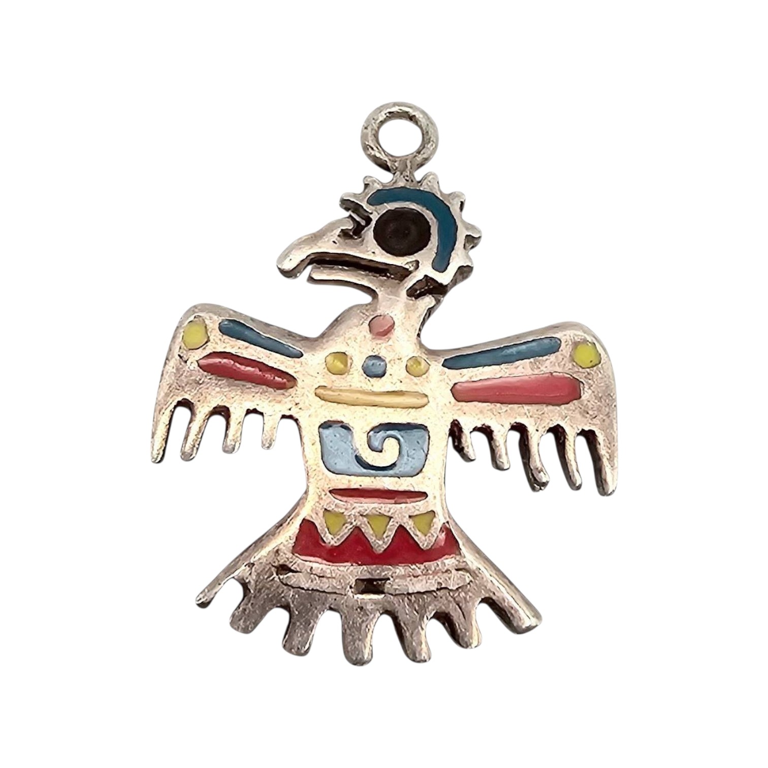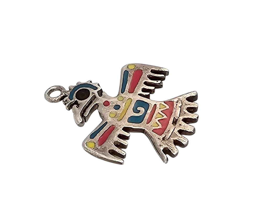 Southwestern Sterling Silver Enamel Thunderbird Pendant 2.7g