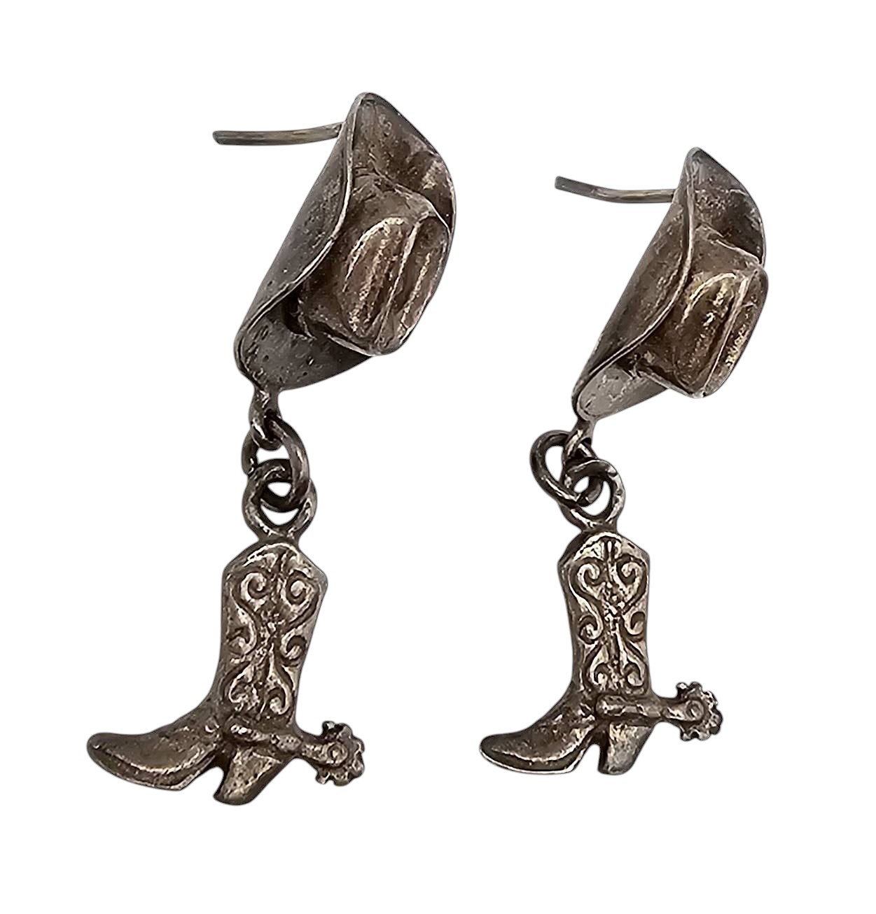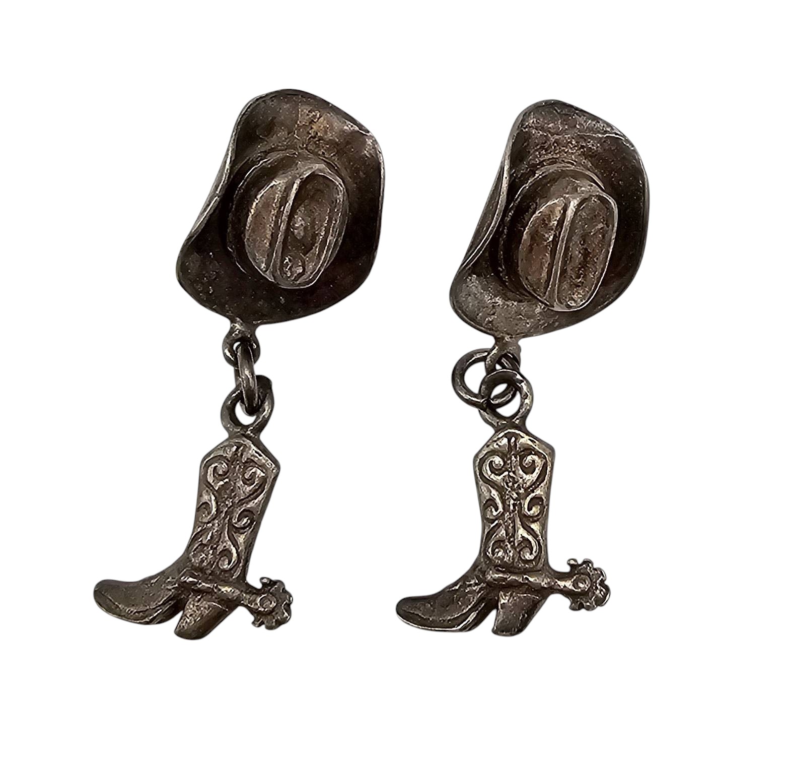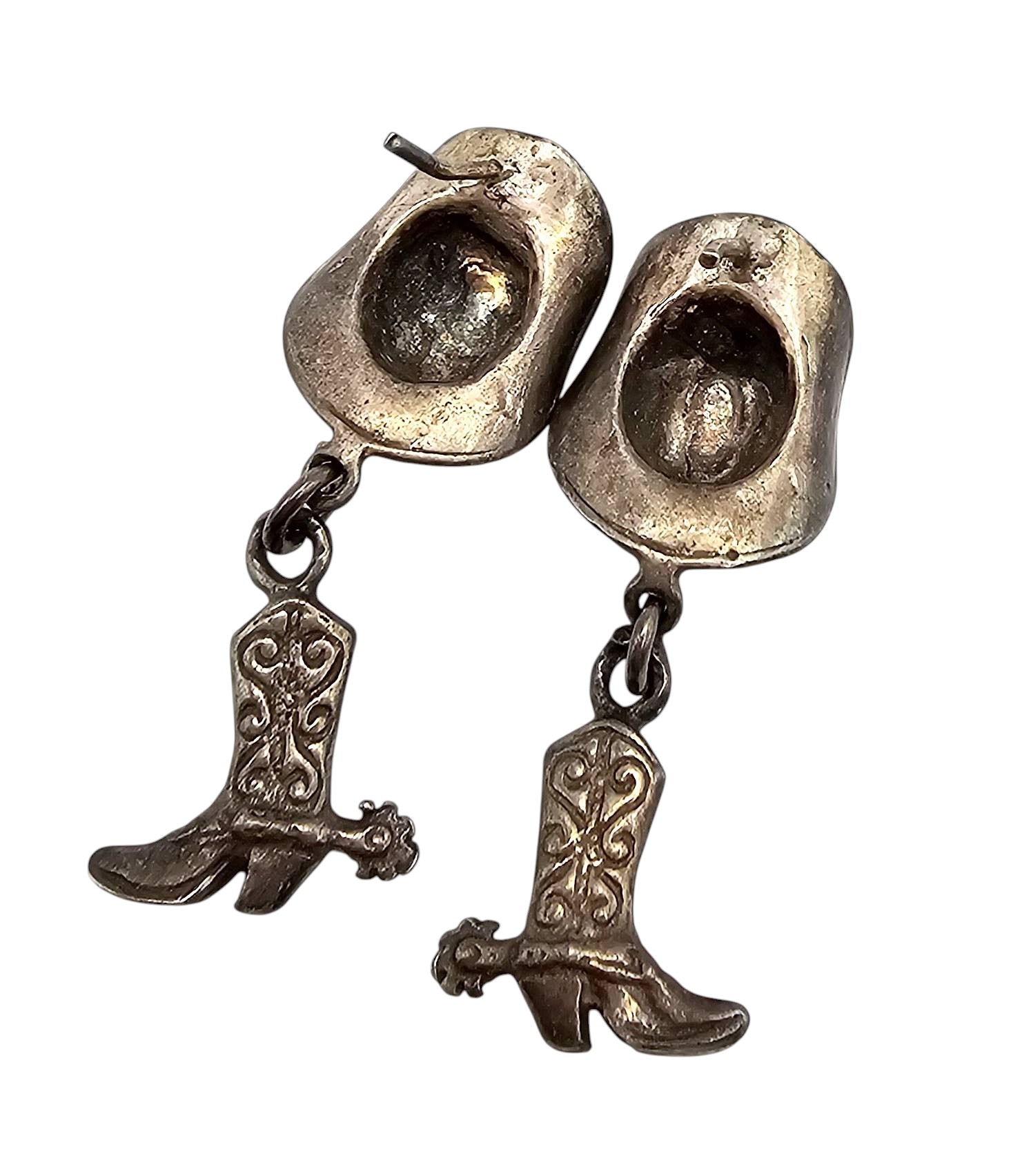 Southwestern Sterling Silver Cowboy Hat Boot Earrings