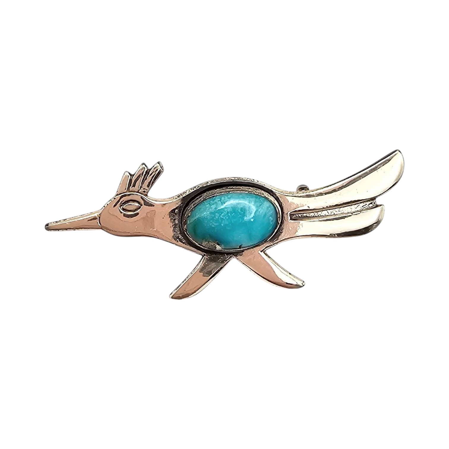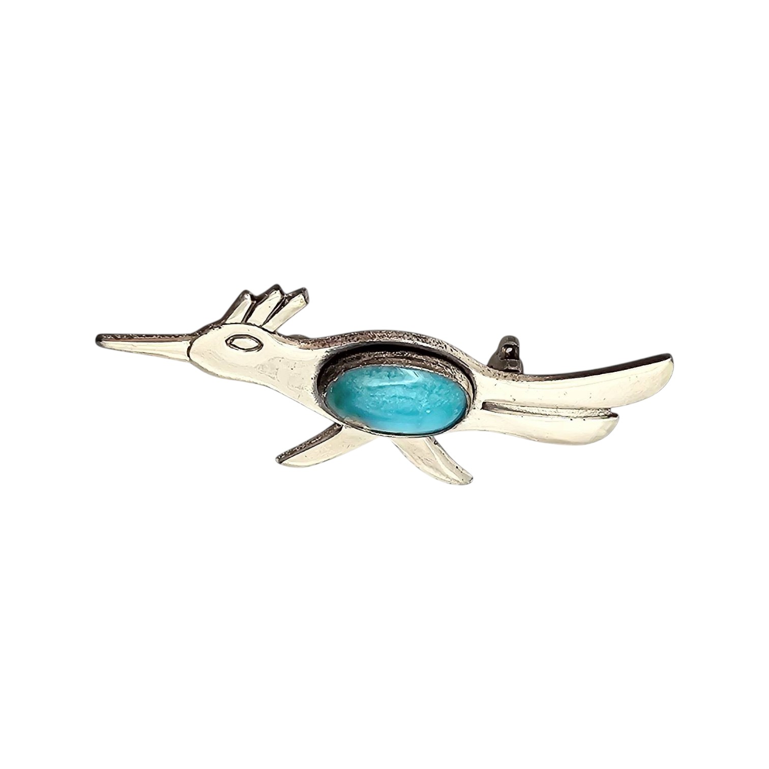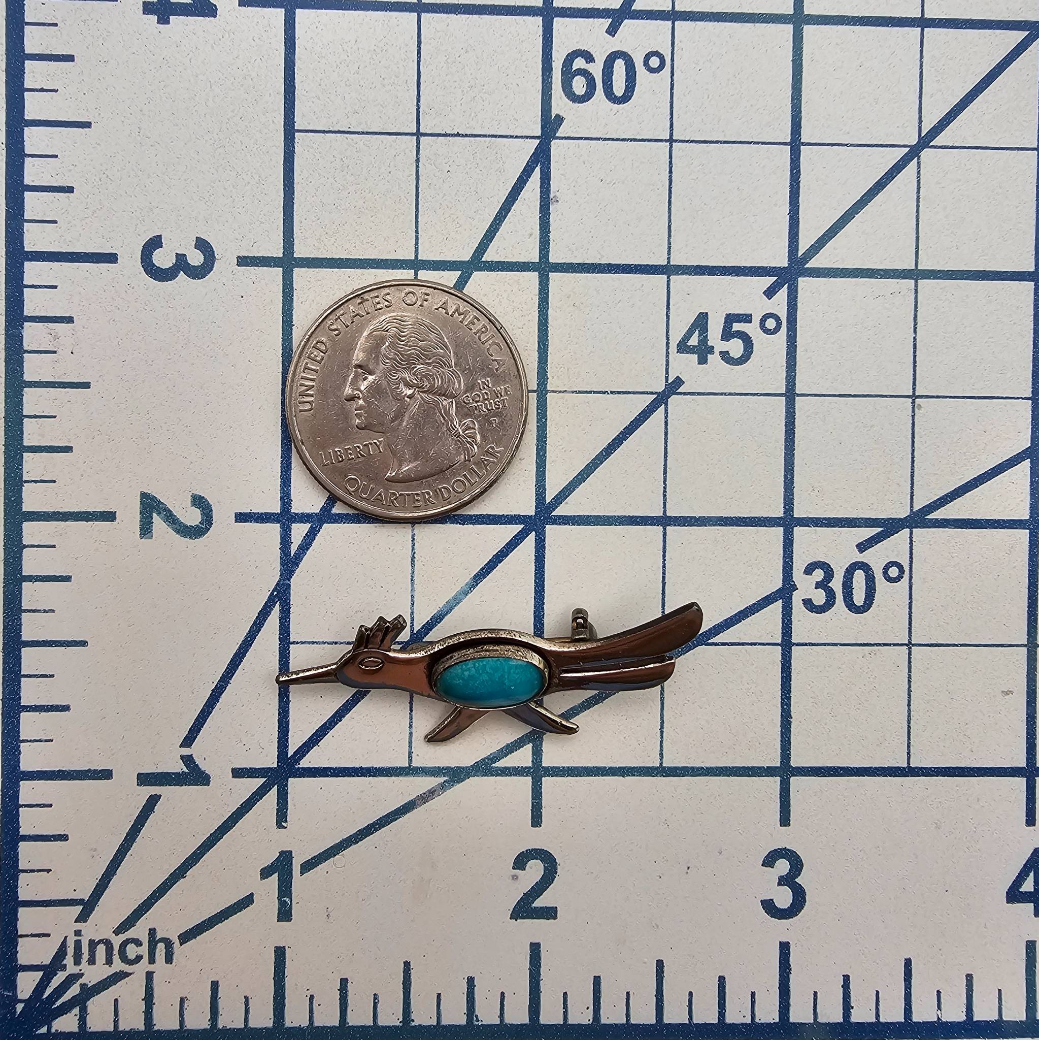 Bell Trading Post Sterling Silver Roadrunner Brooch Turquoise 3.6g