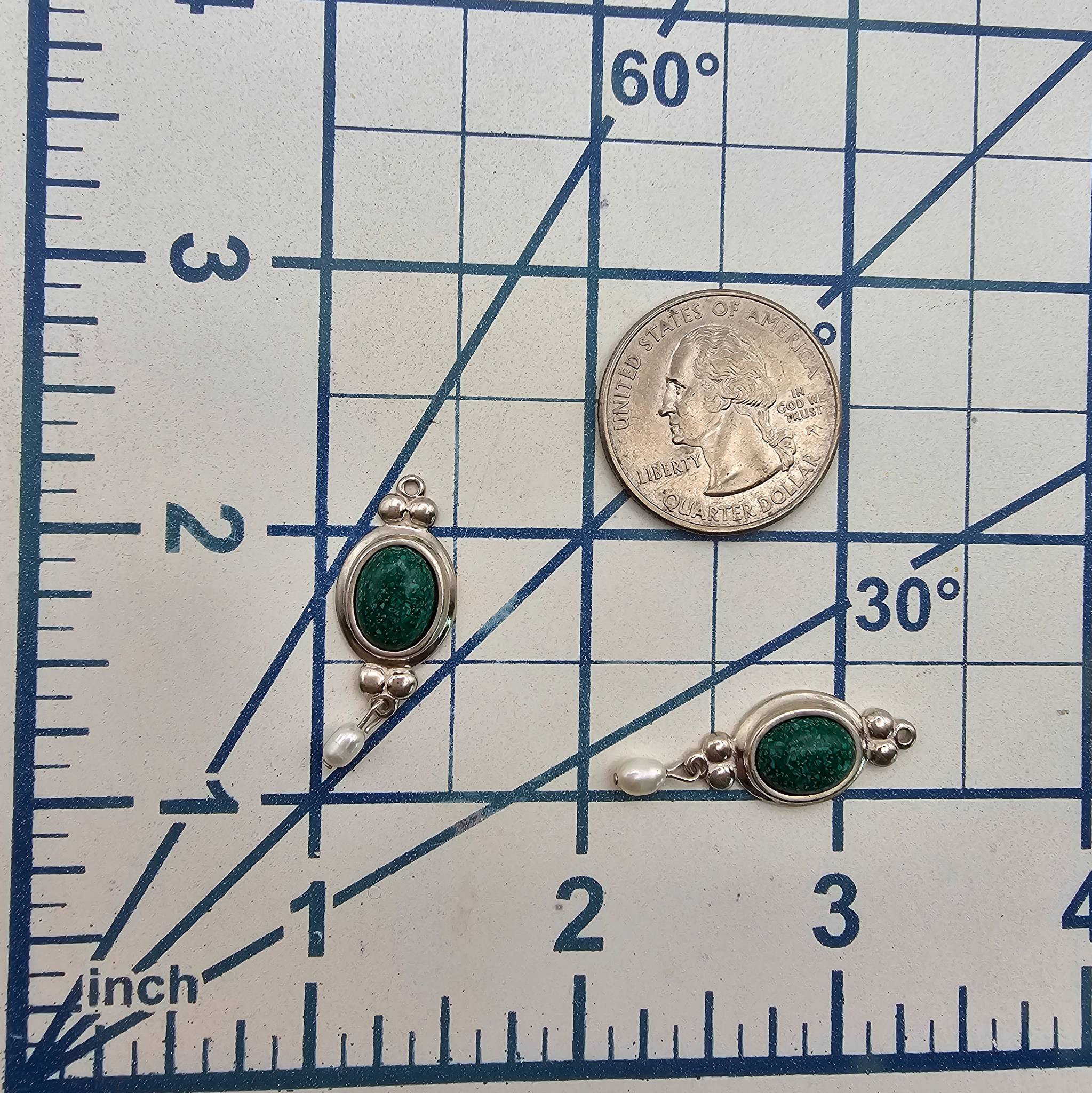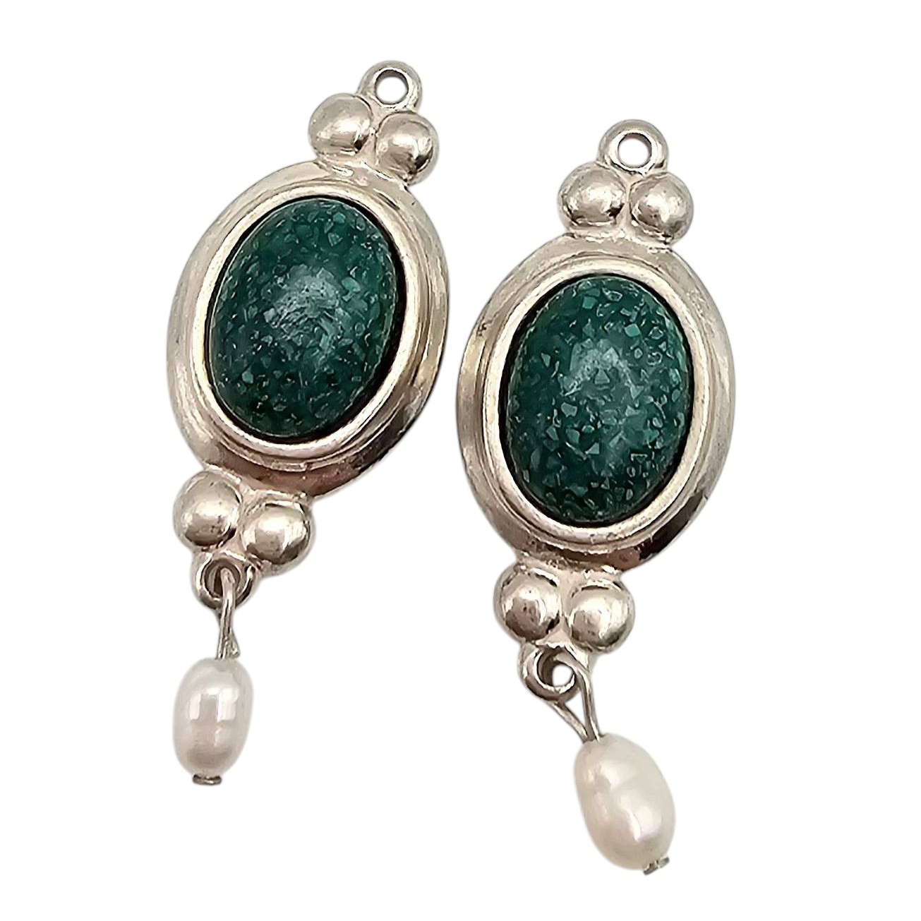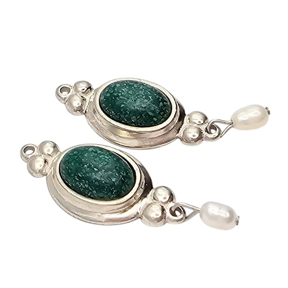 CC Co. Southwestern Sterling Silver Malachite, and Pearl Earrings Earrings 5.2g