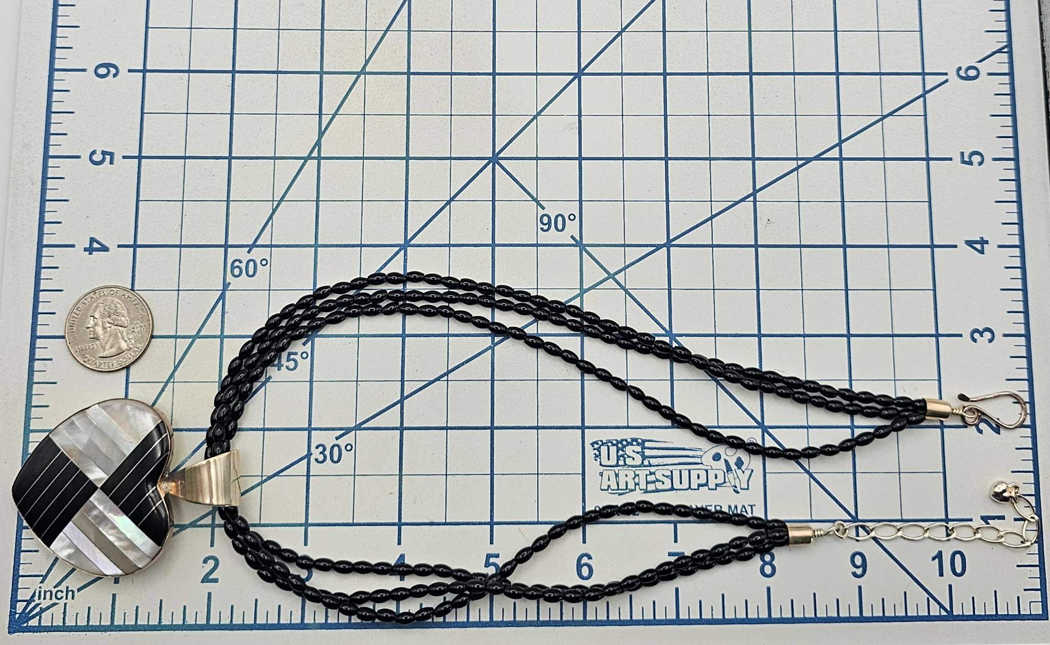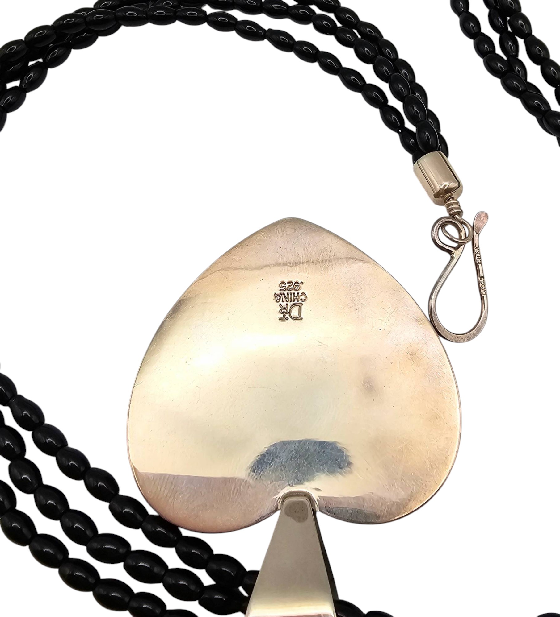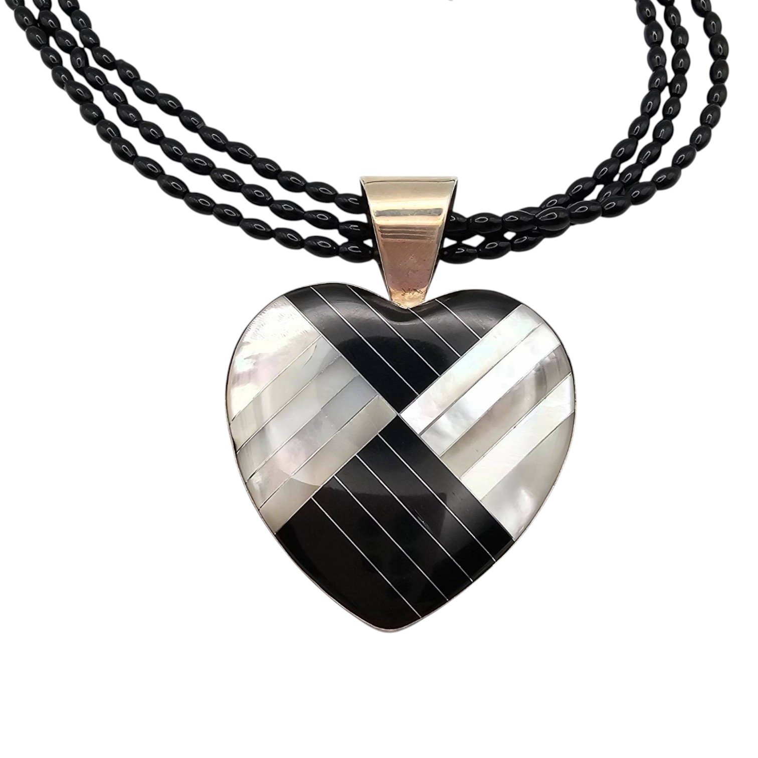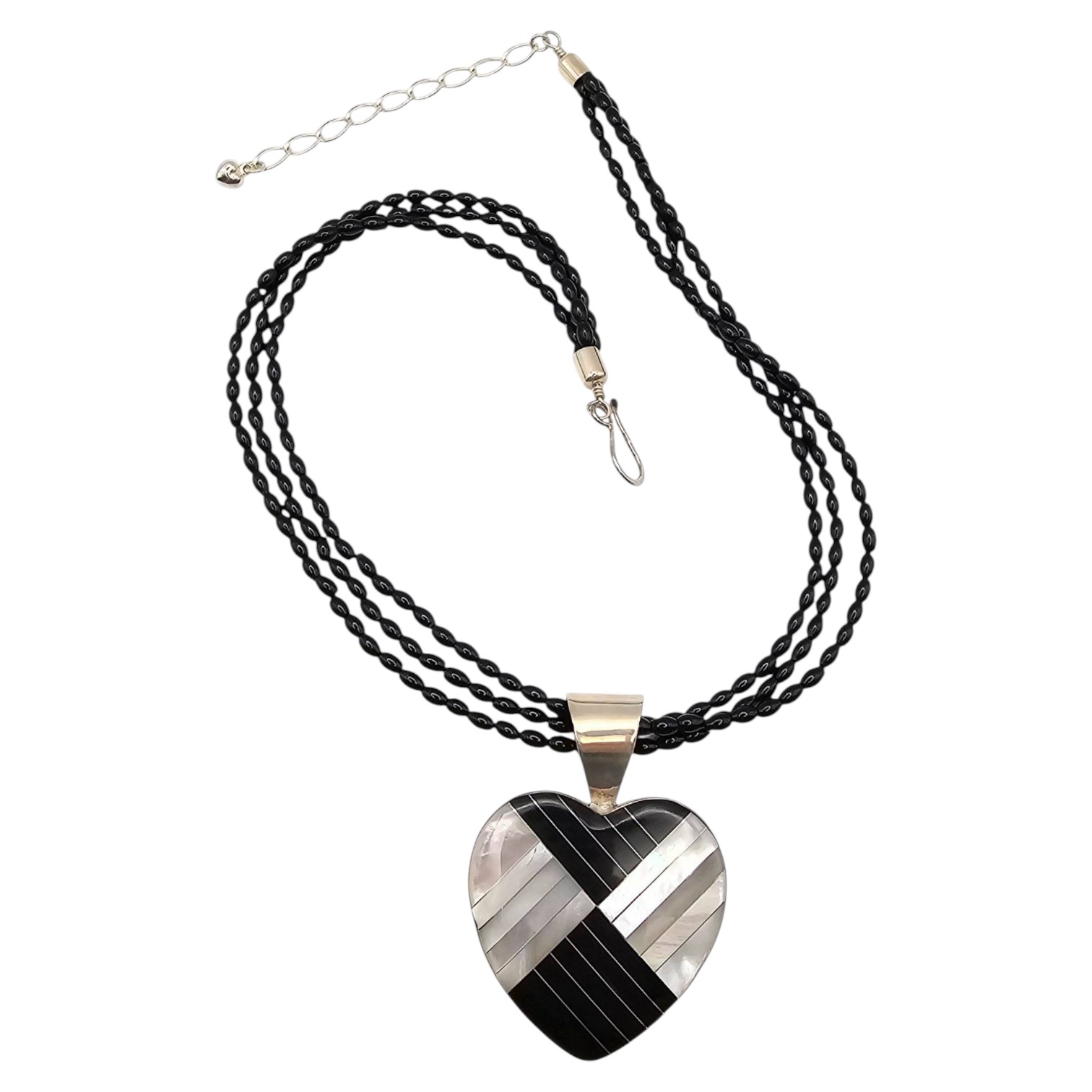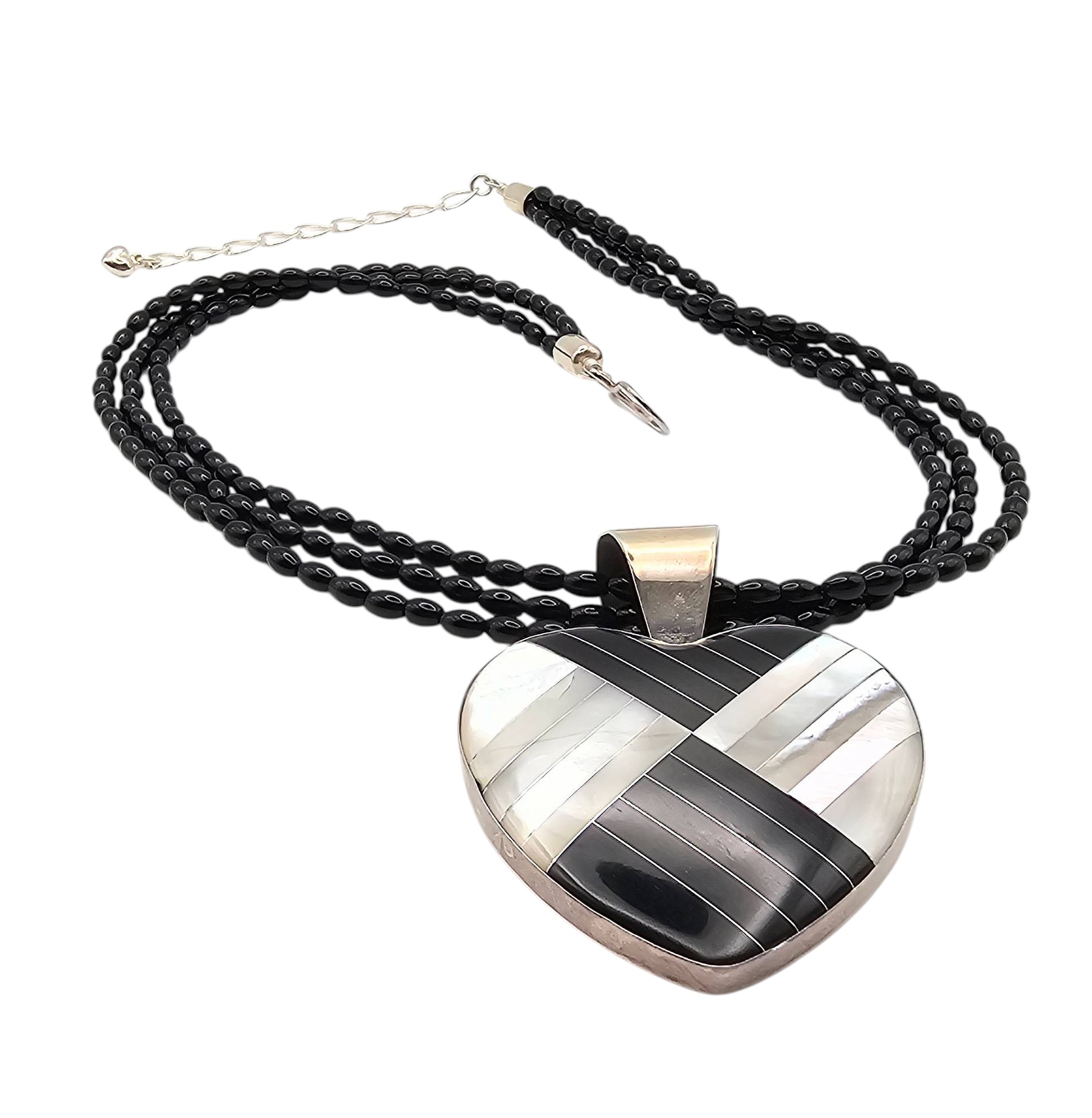 Jay King Mine Finds Mother-of-Pearl, Onyx Heart Necklace, Sterling Silver 48g