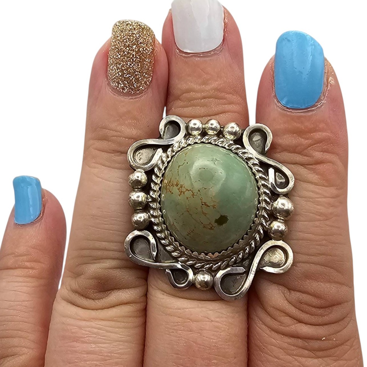 Sterling Silver Green Turquoise Statement Ring by DN Sz 7.5