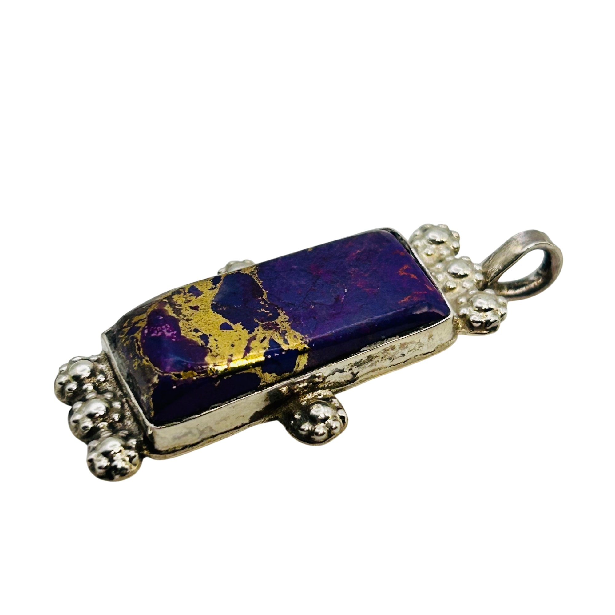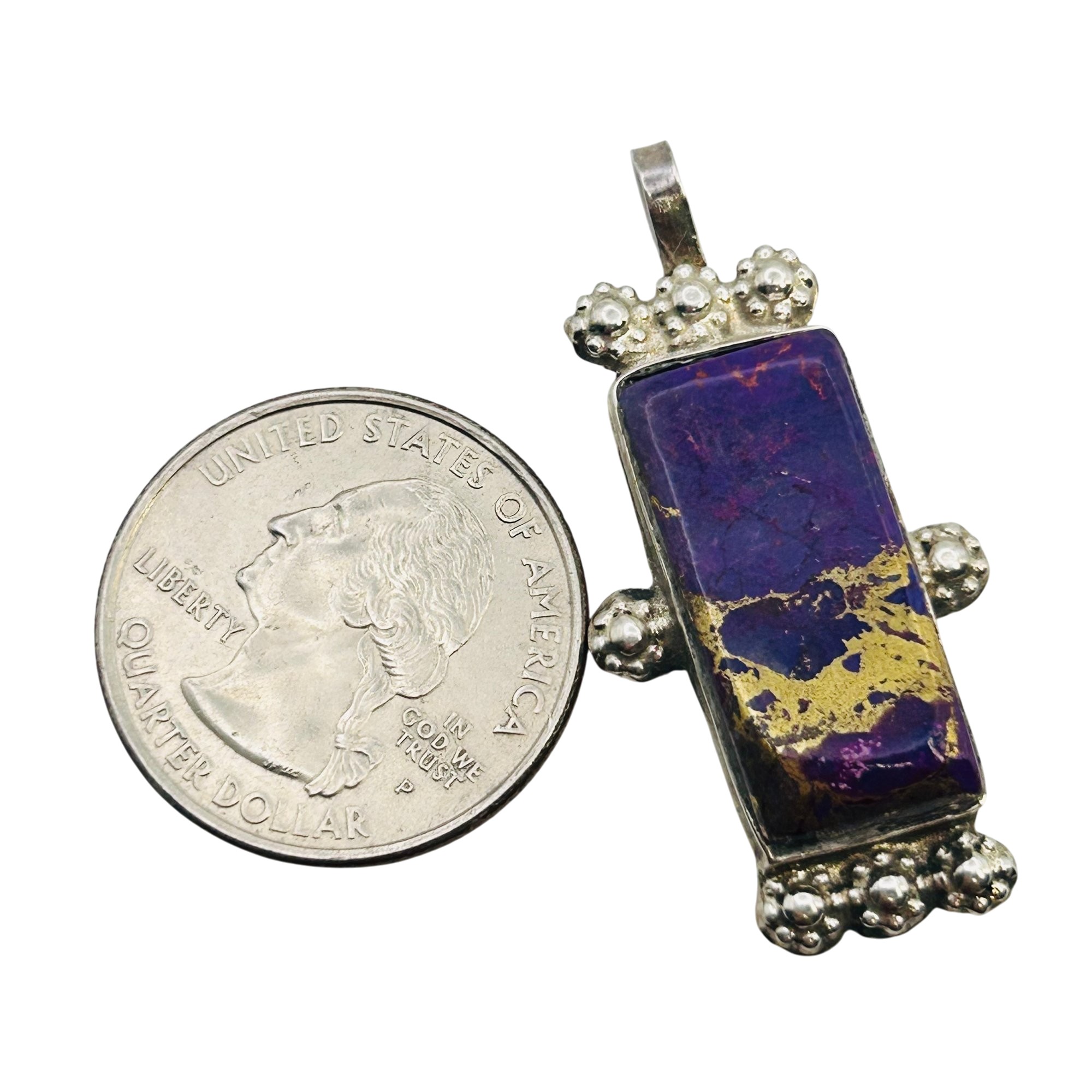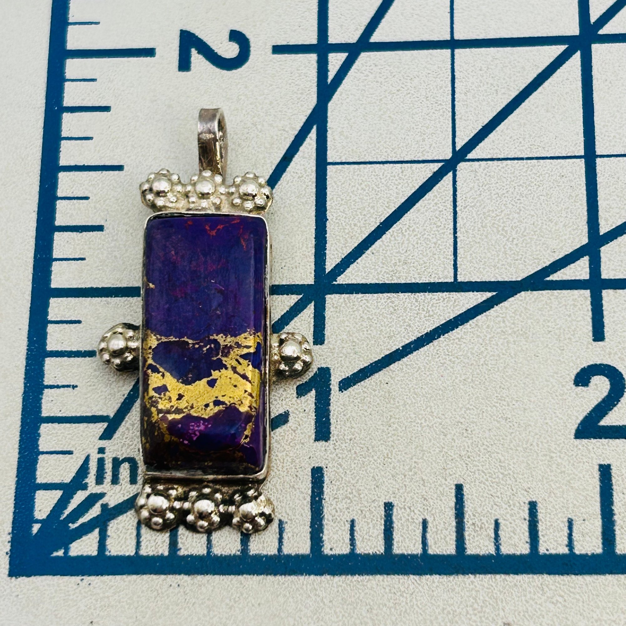 Maxx Laate Native Sterling Purple copper turquoise rectangular Pendant 6.31 grams