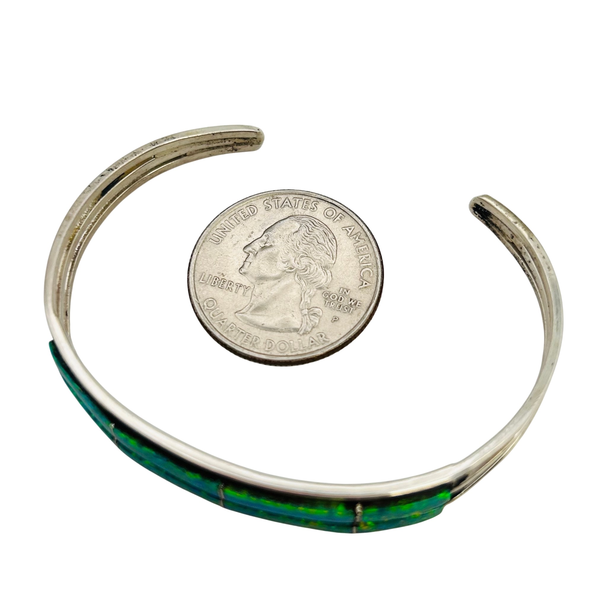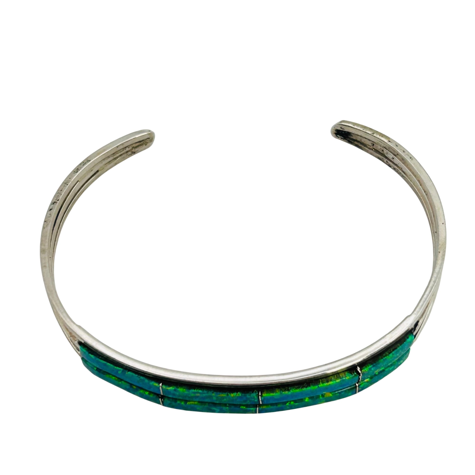 Jamie Johnson Navajo Sterling green and Opal Cuff bracelet 9.26 g
