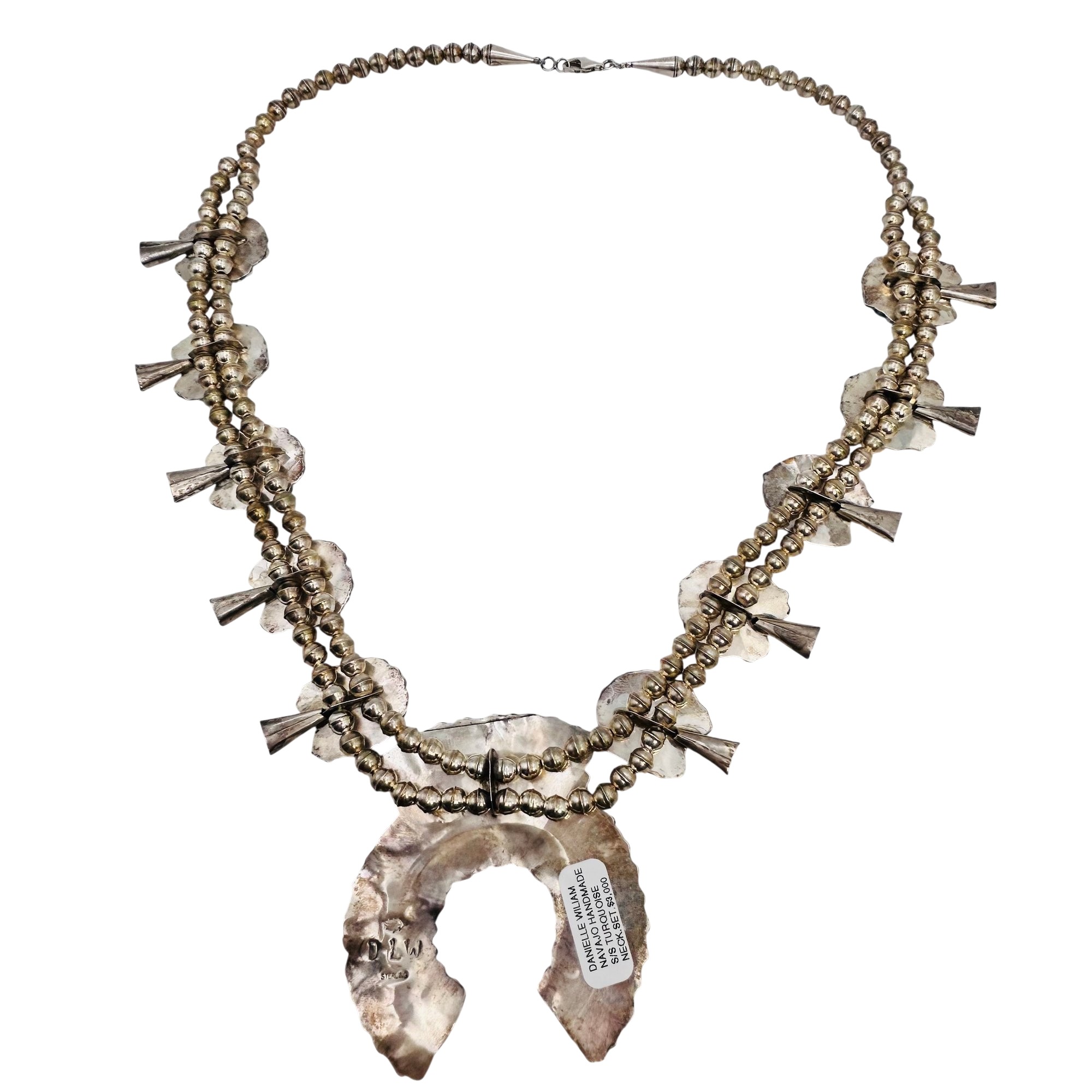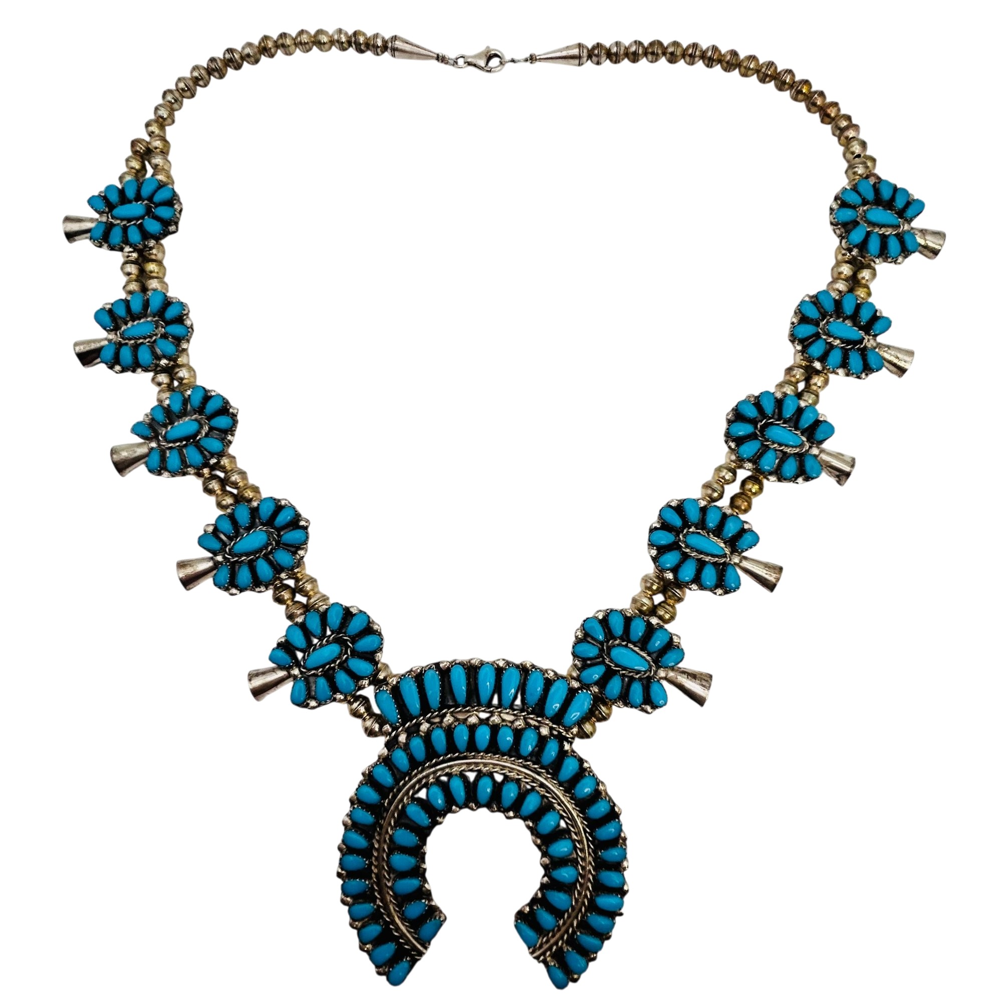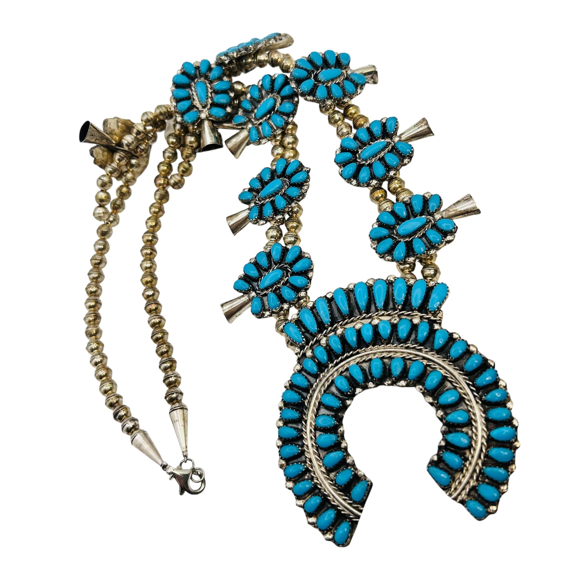 Danielle William Navajo Sterling Turquoise Squash Necklace Navajo Pearls 26 inch 96.9 grams