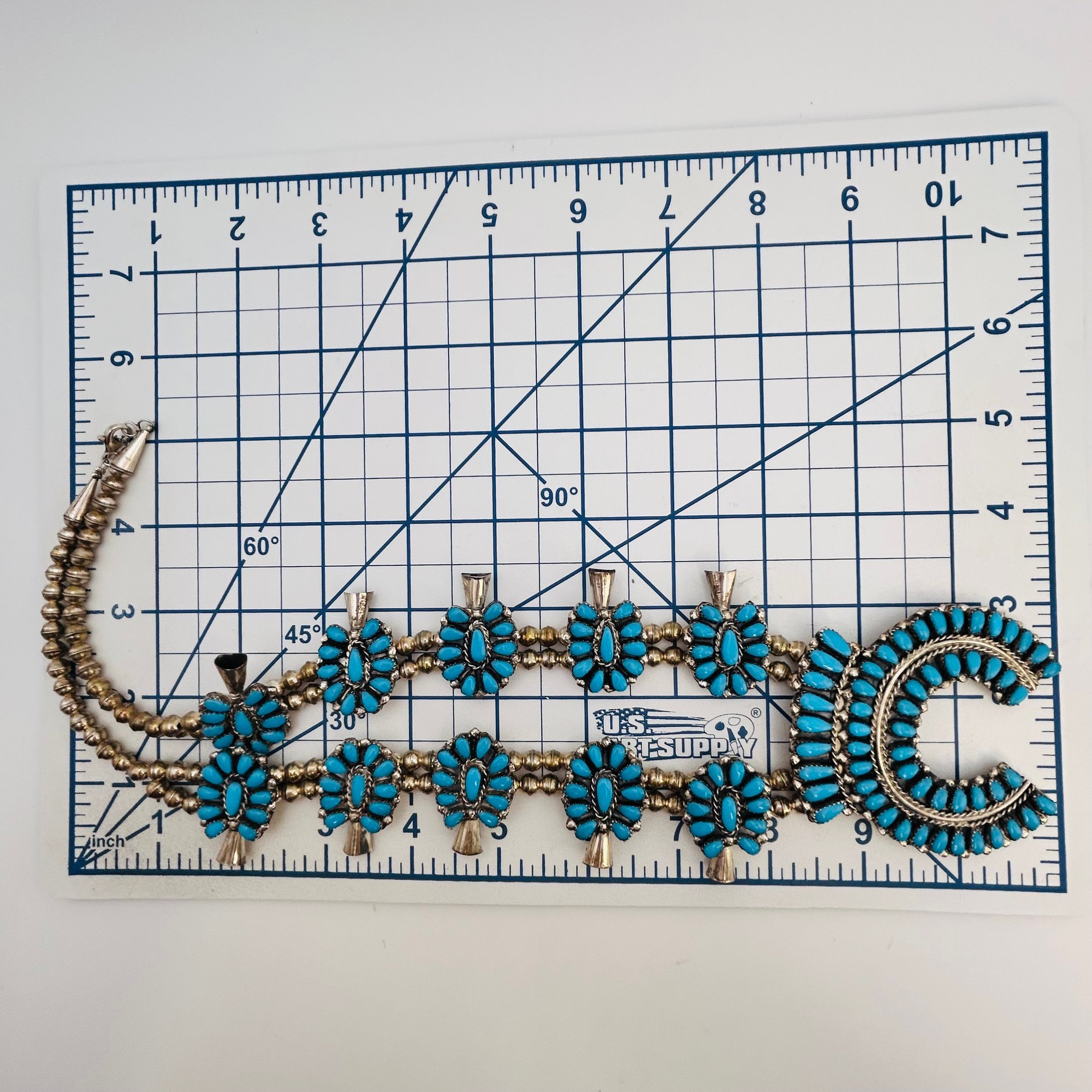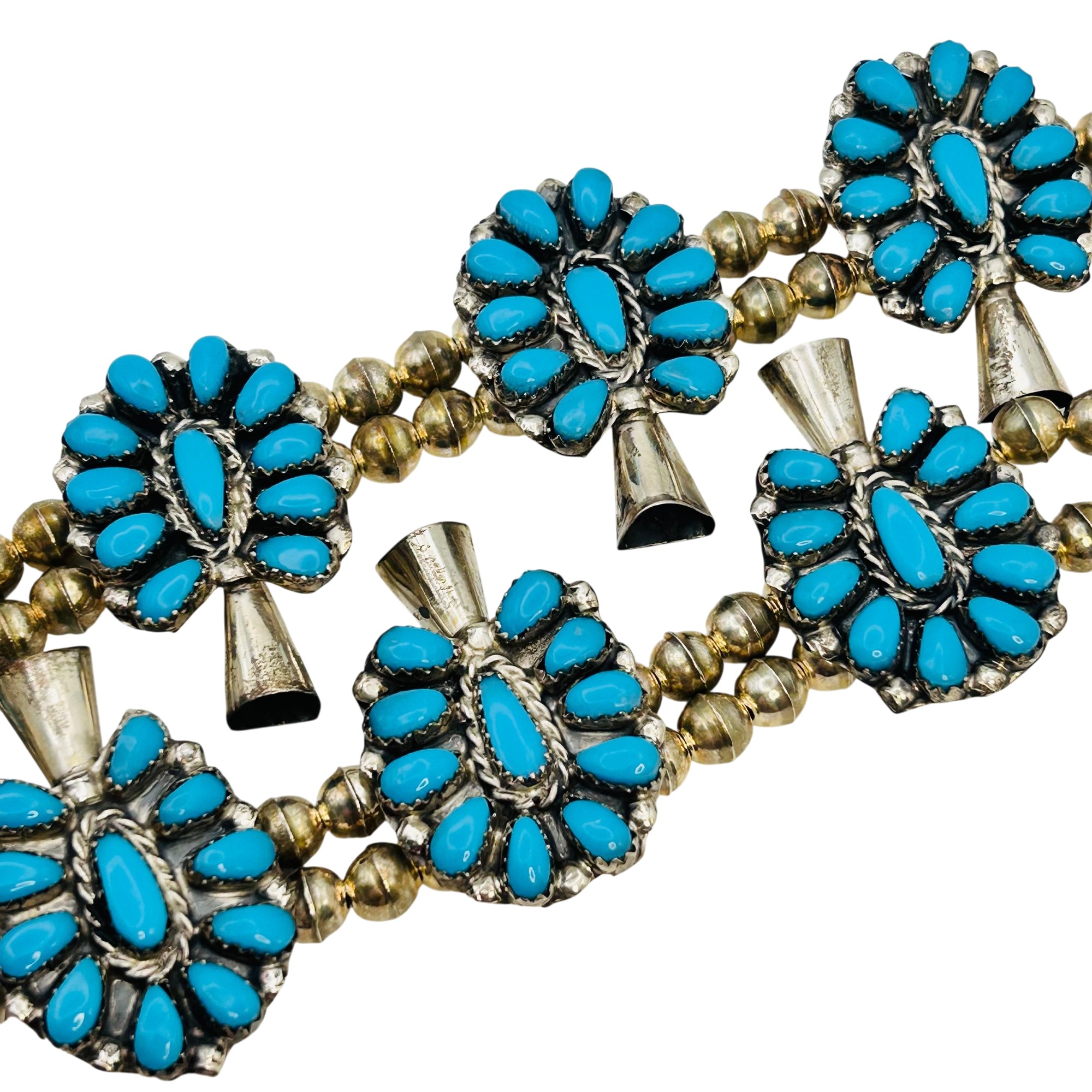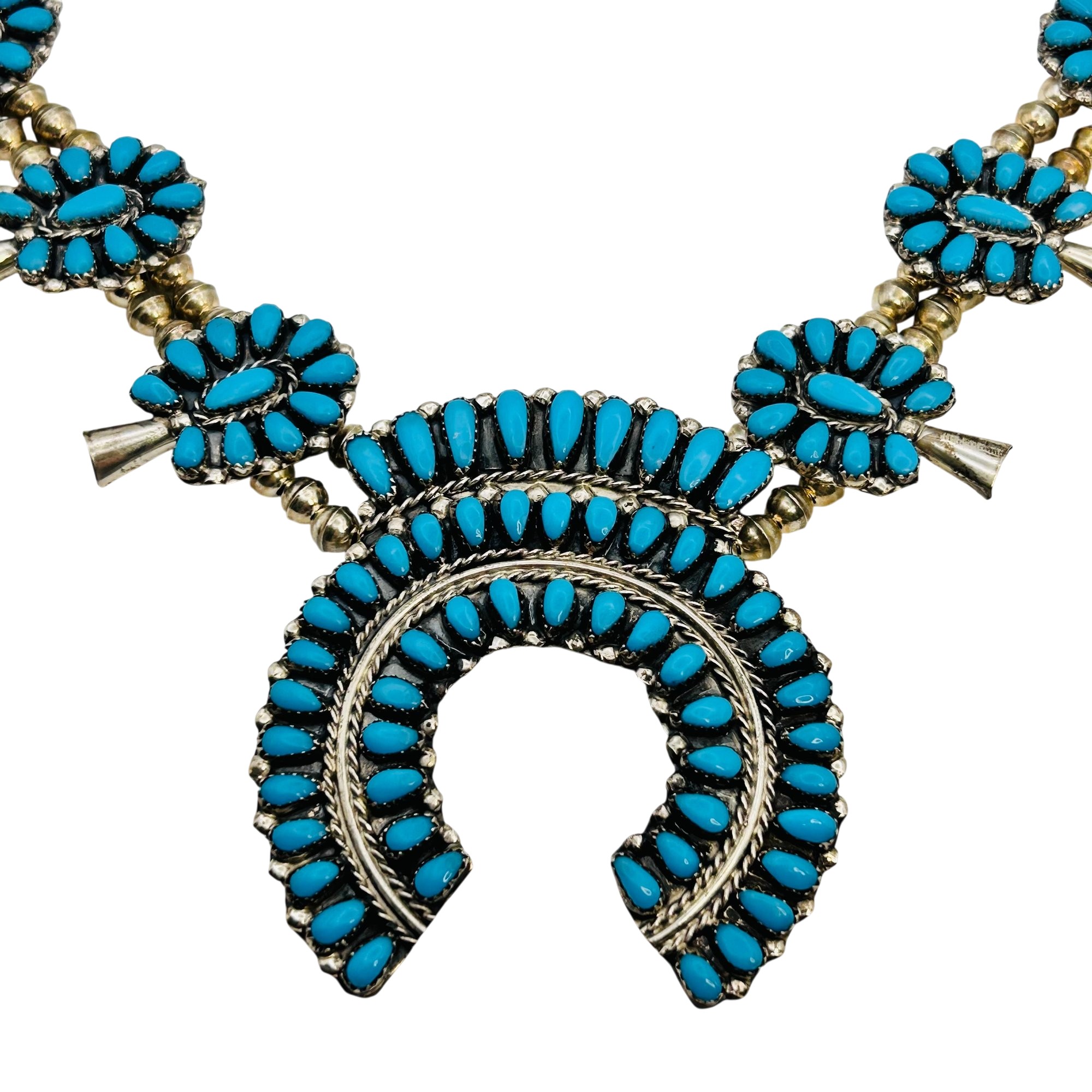Danielle William Navajo Sterling Turquoise Squash Necklace Navajo Pearls 26 inch 96.9 grams