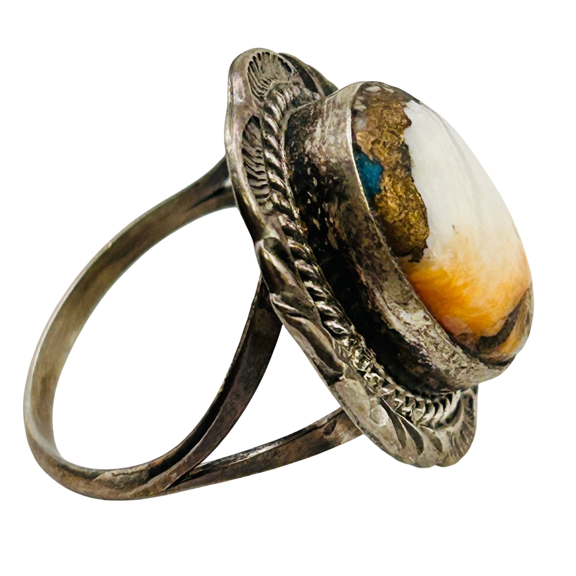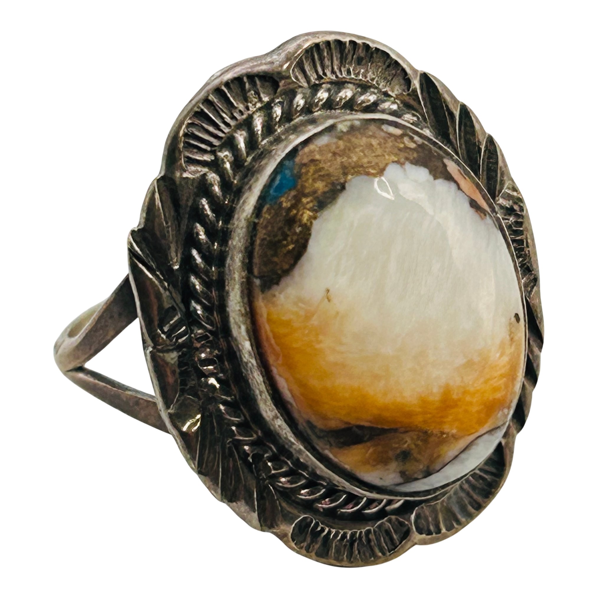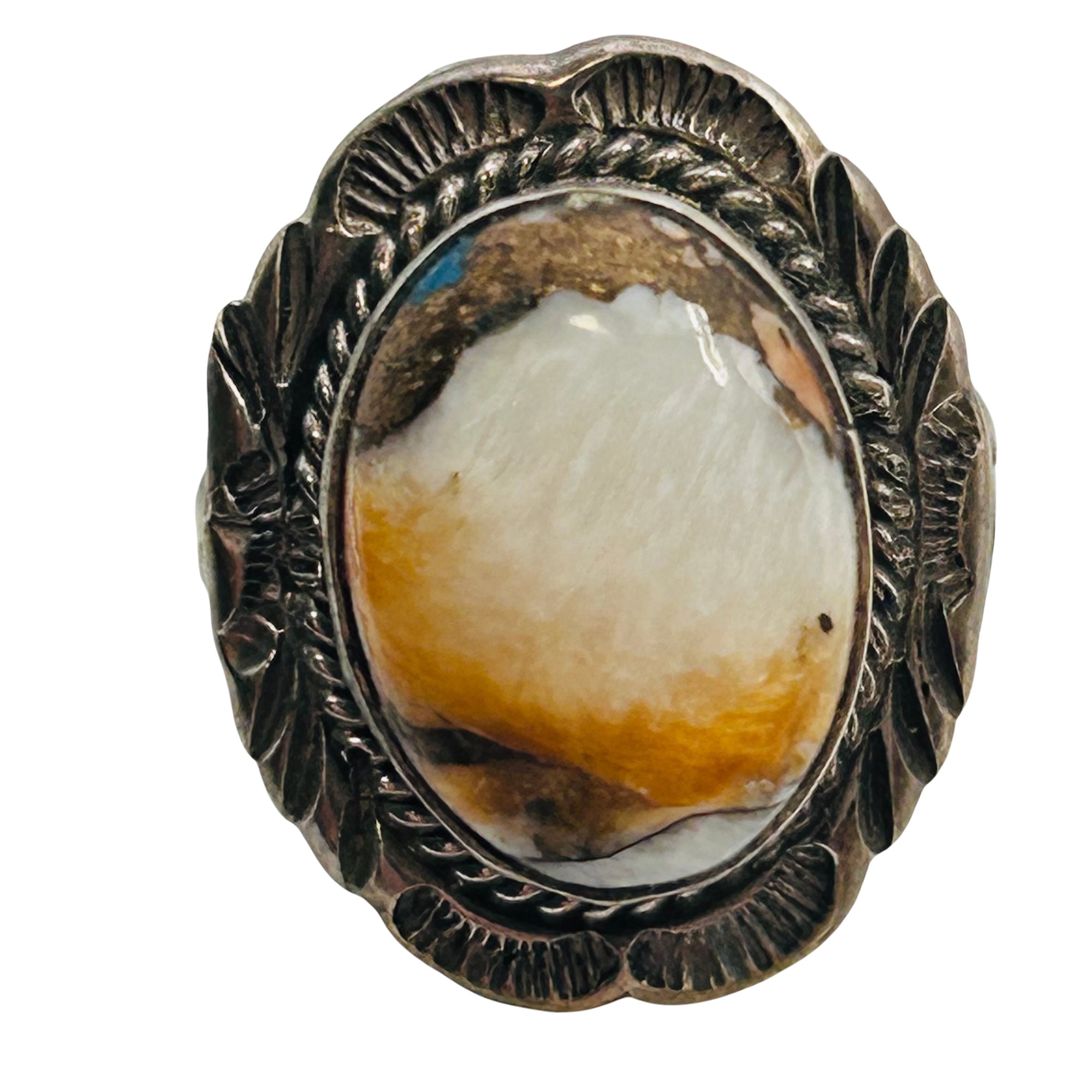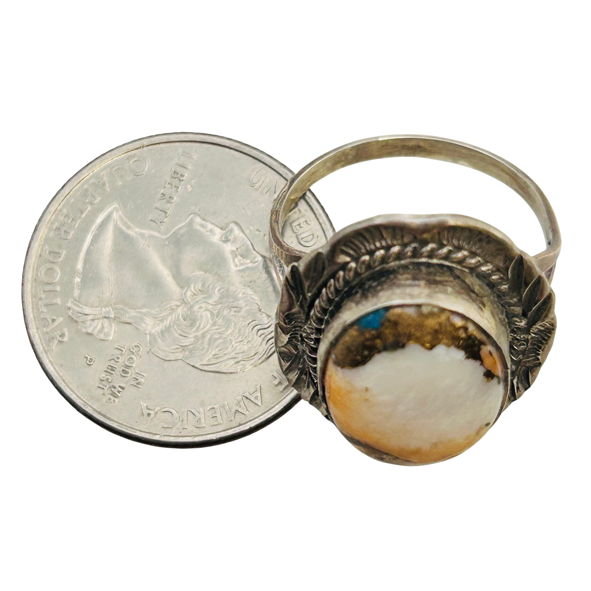 Frank Yazzie Navajo Sterling Spiny oyster Turquoise Ring SZ. 9 6.14 grams.