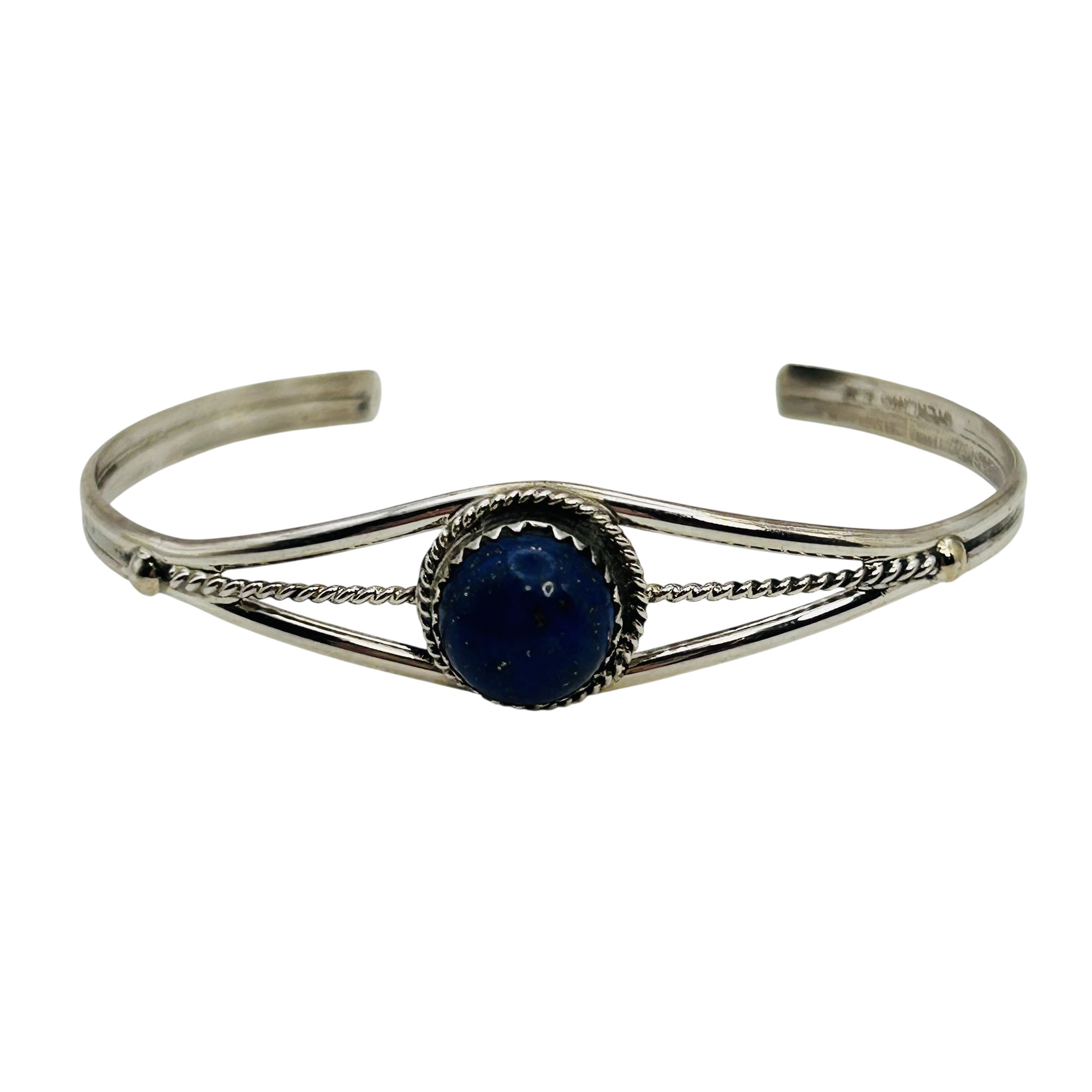 Esther White Navajo Sterling bezel set Lapis Lazuli Cuff bracelet 6.55 grams