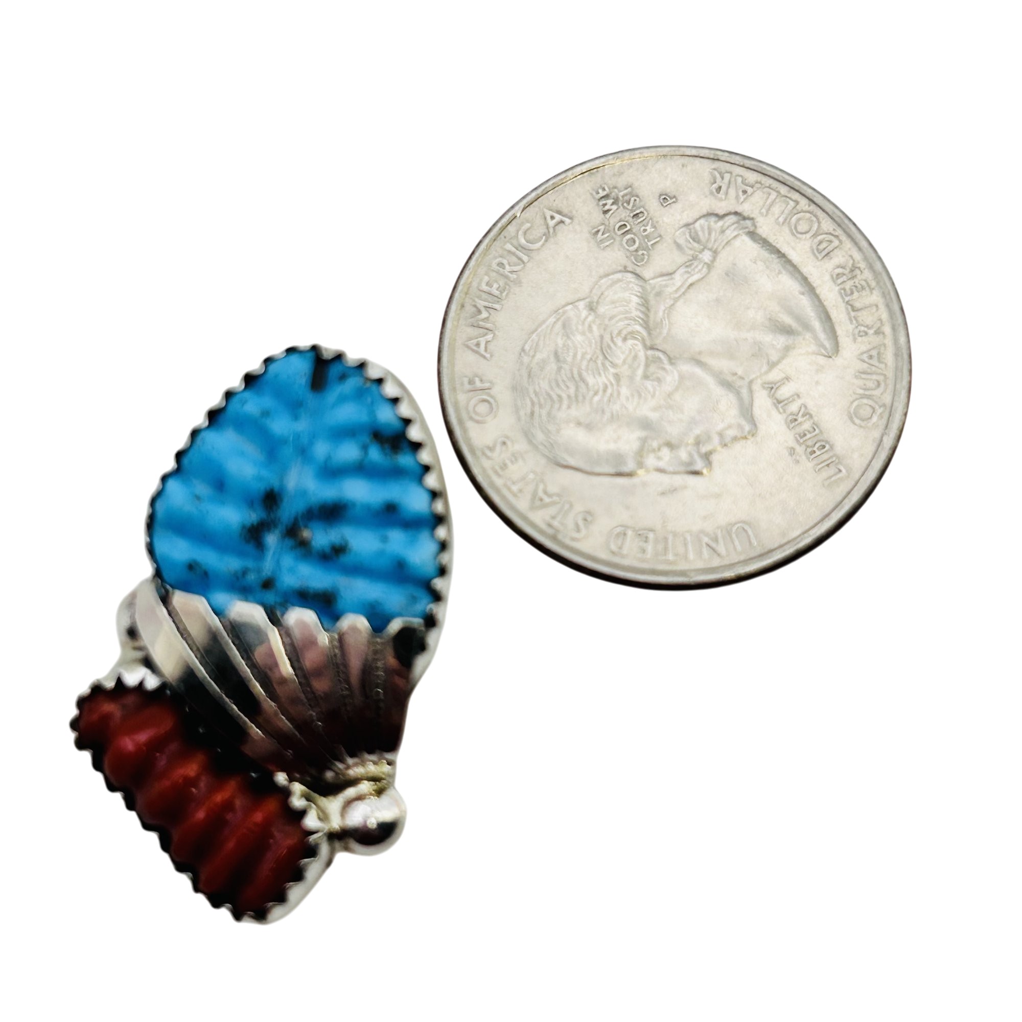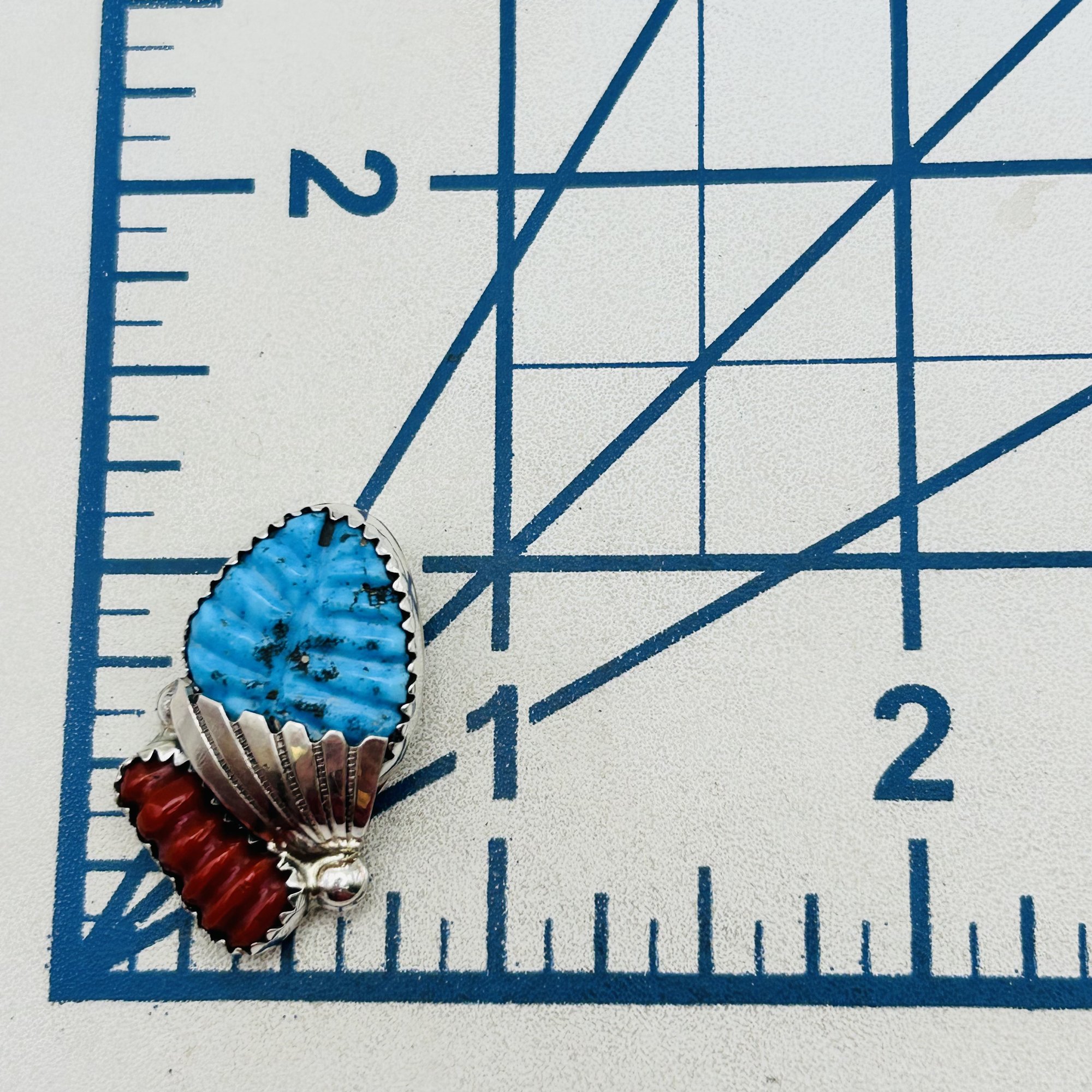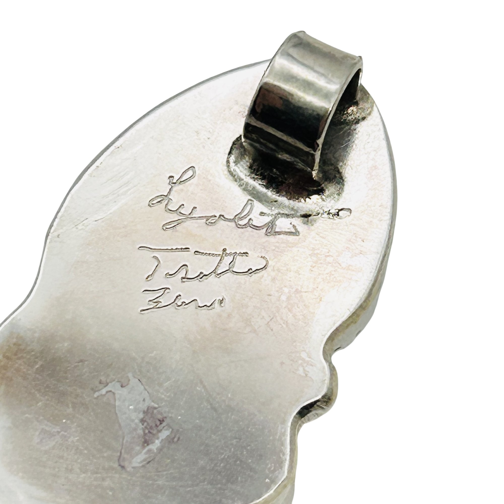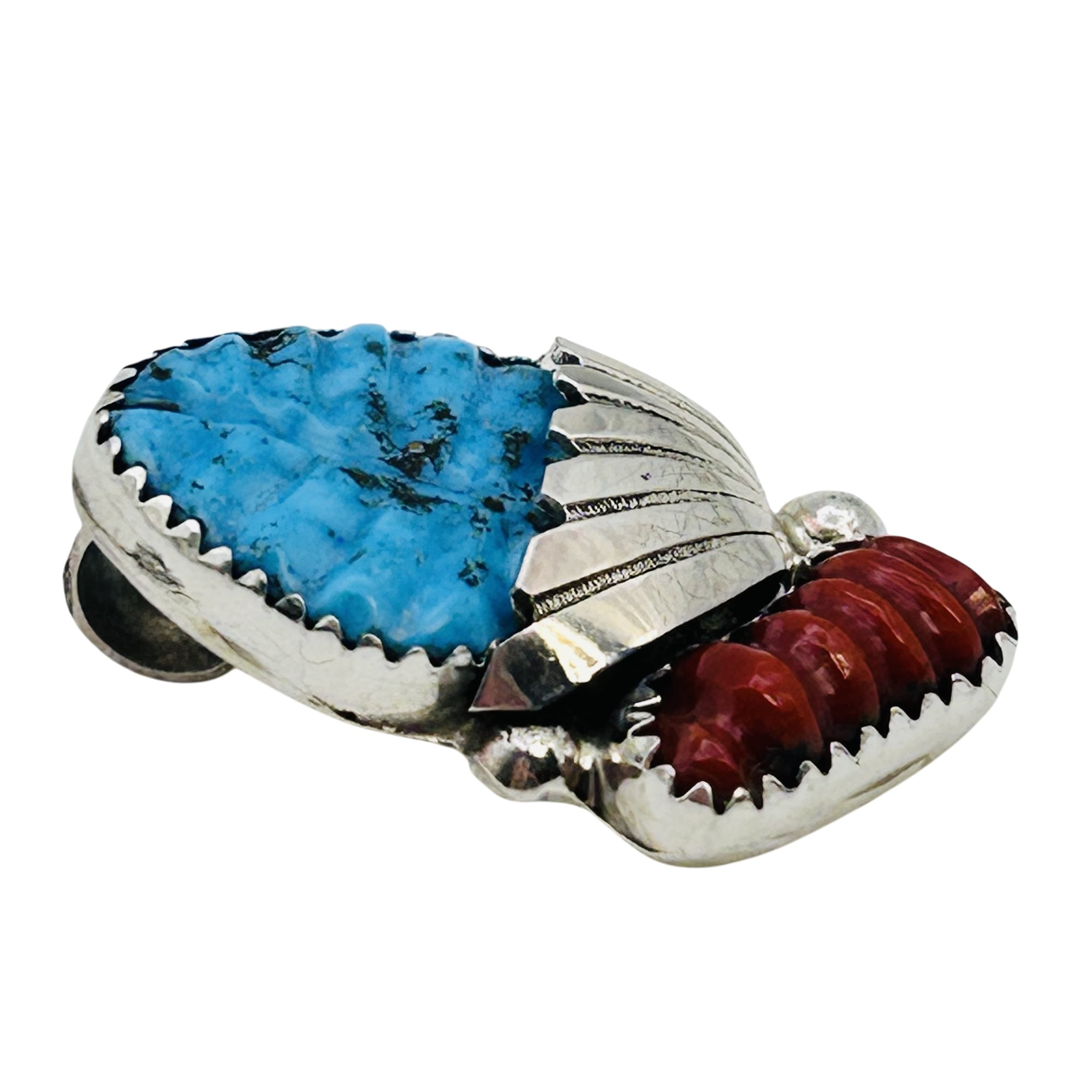 Lyolita Tsattle Native Sterling Carved Turquoise and Coral Pendant 4.43grams