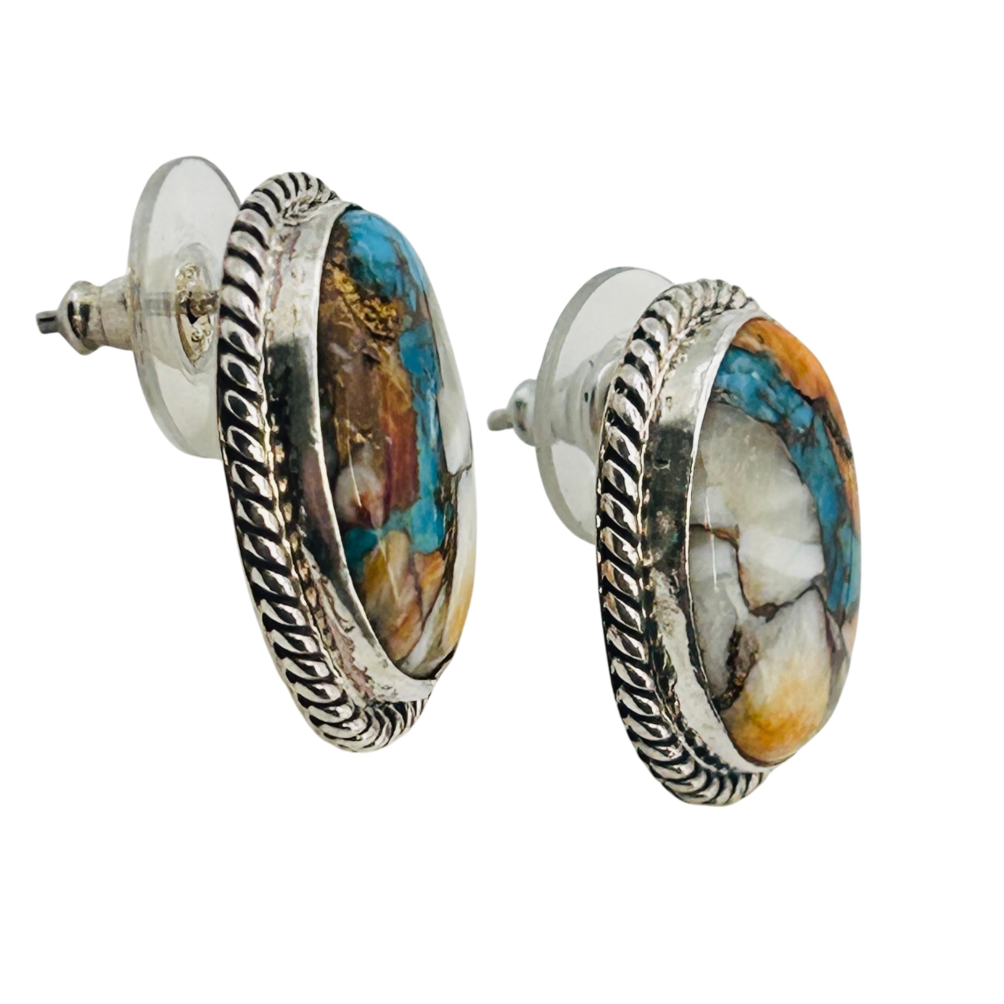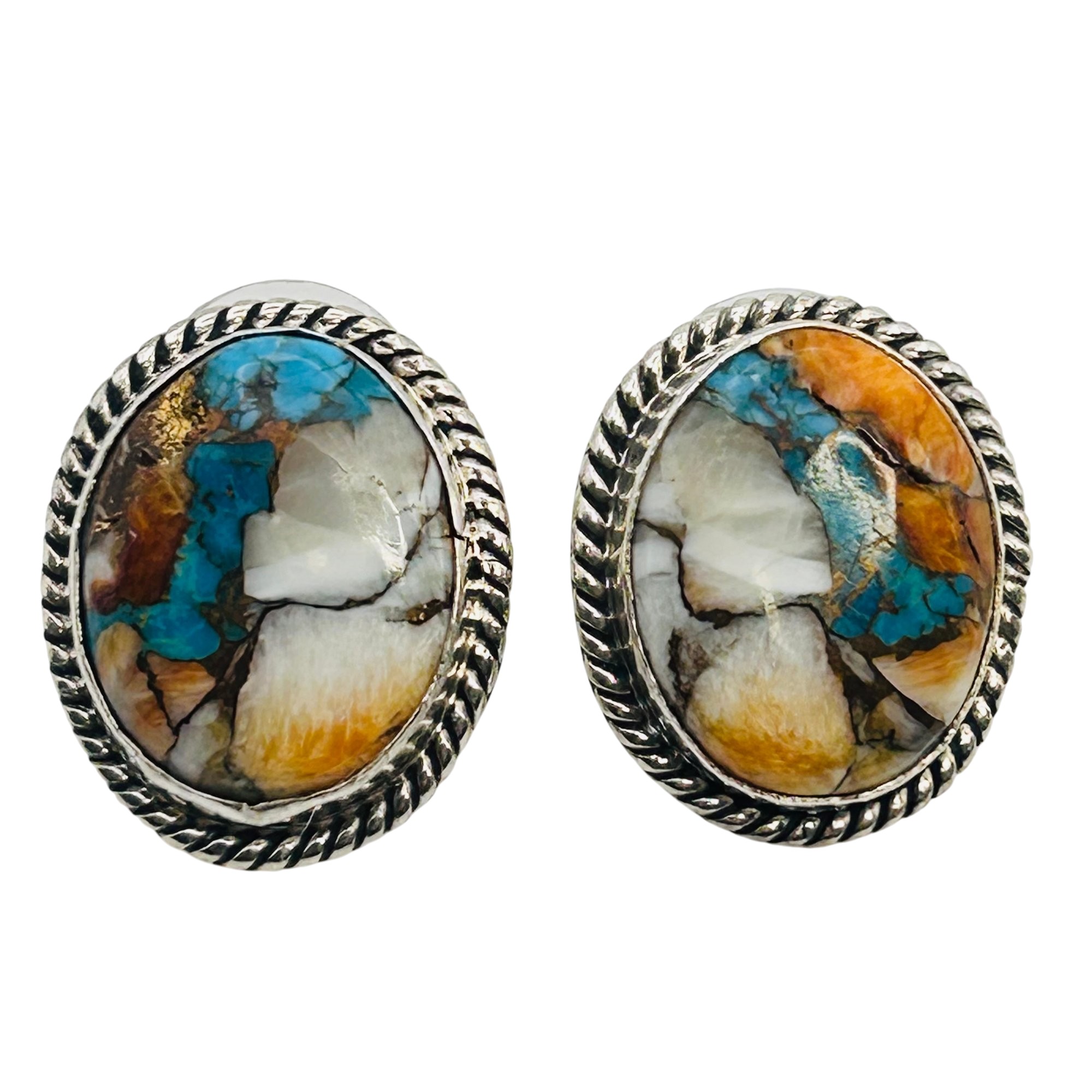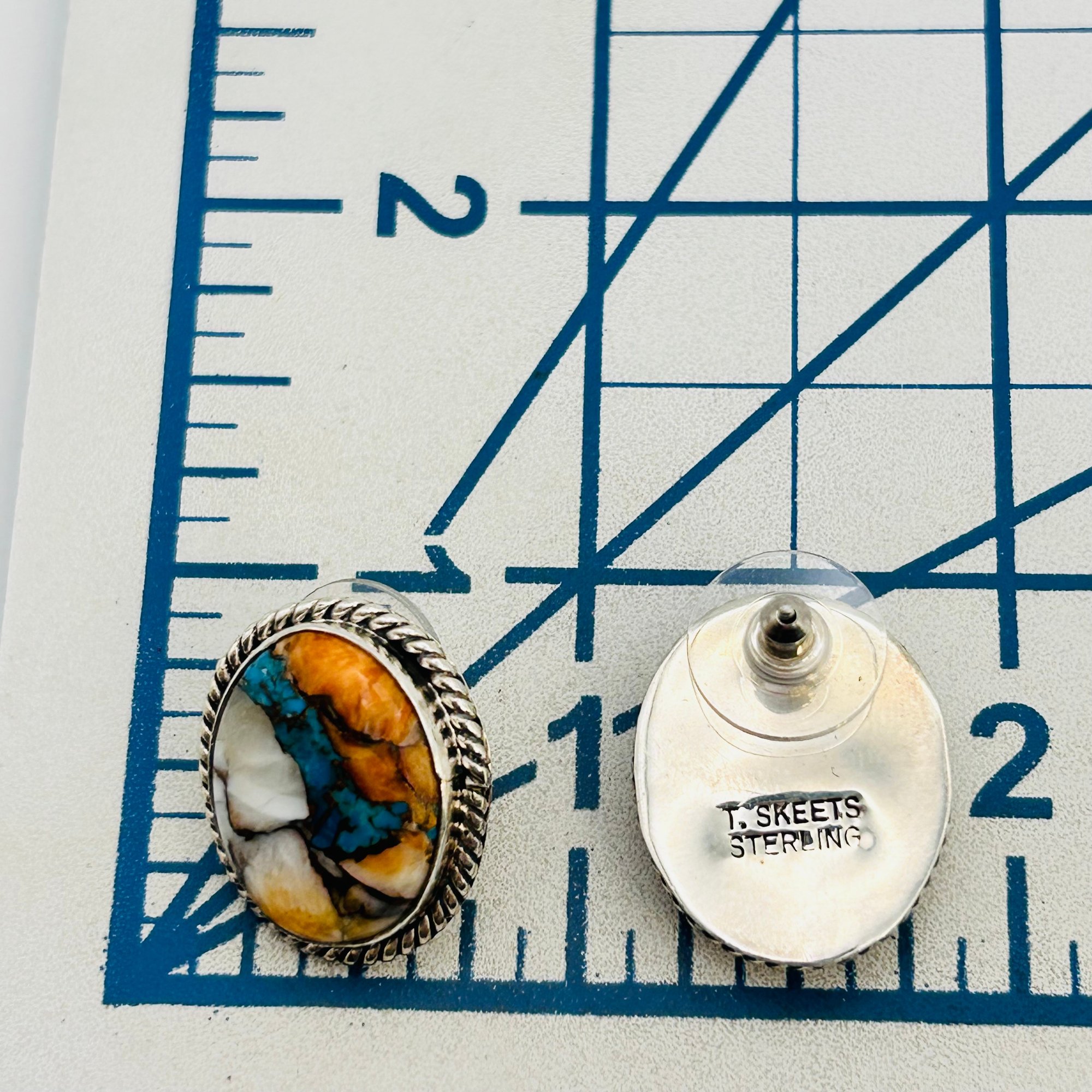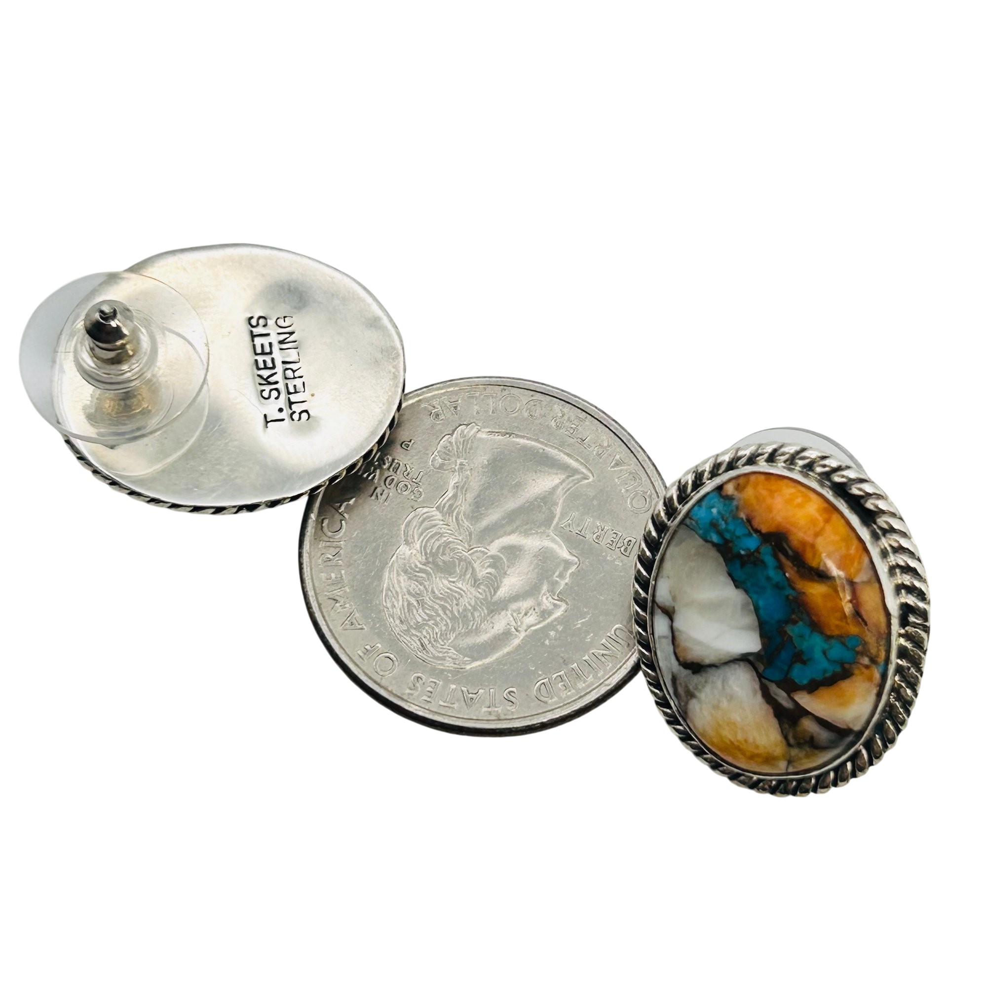 T. Skeets Native sterling Multicolor spiny oyster mother of pearl turquoise earrings 8.43 grams